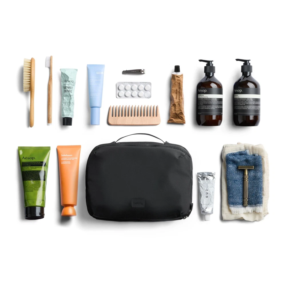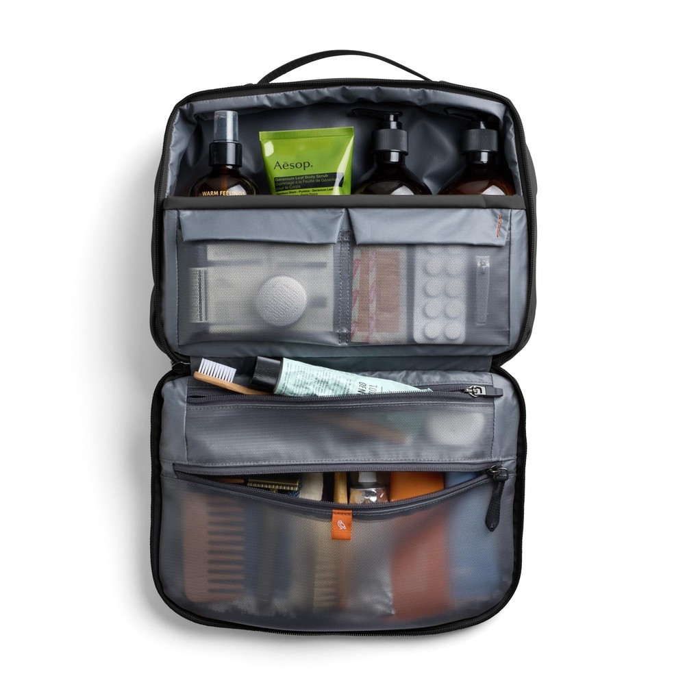 With plenty of volume, protection and organization, this Hanging Toiletry Kit Plus is an ideal dopp kit for everyday and travel. The self-centering and retractable hook fits over most doors, rails and shower screens. The kit fits easily into luggage with its soft, durable fabrication, and features a clamshell opening – happily hanging or sitting on counter tops. Organize it your way with pockets a’plenty and storage specifically designed for different types of products. This includes the upper shelf pocket, perfect for full-sized products, the slimline zipped pocket for your toothbrush, transparent duo pockets for bits and bobs, and a generously sized lower compartment. This travel hanging toiletry bag has a clamshell opening and smooth YKK zips, for easy access and packing. Store your products in the tall shelf-style pocket, transparent duo pockets, zipped toothbrush pocket and large compartment. The kit hangs happily from its aluminum hook over most doors, rails and shower screens. Measures 230 x 310 x 100 mm / 9.1 x 12.2 x 3.9 inches. This product is covered by for 3 years.