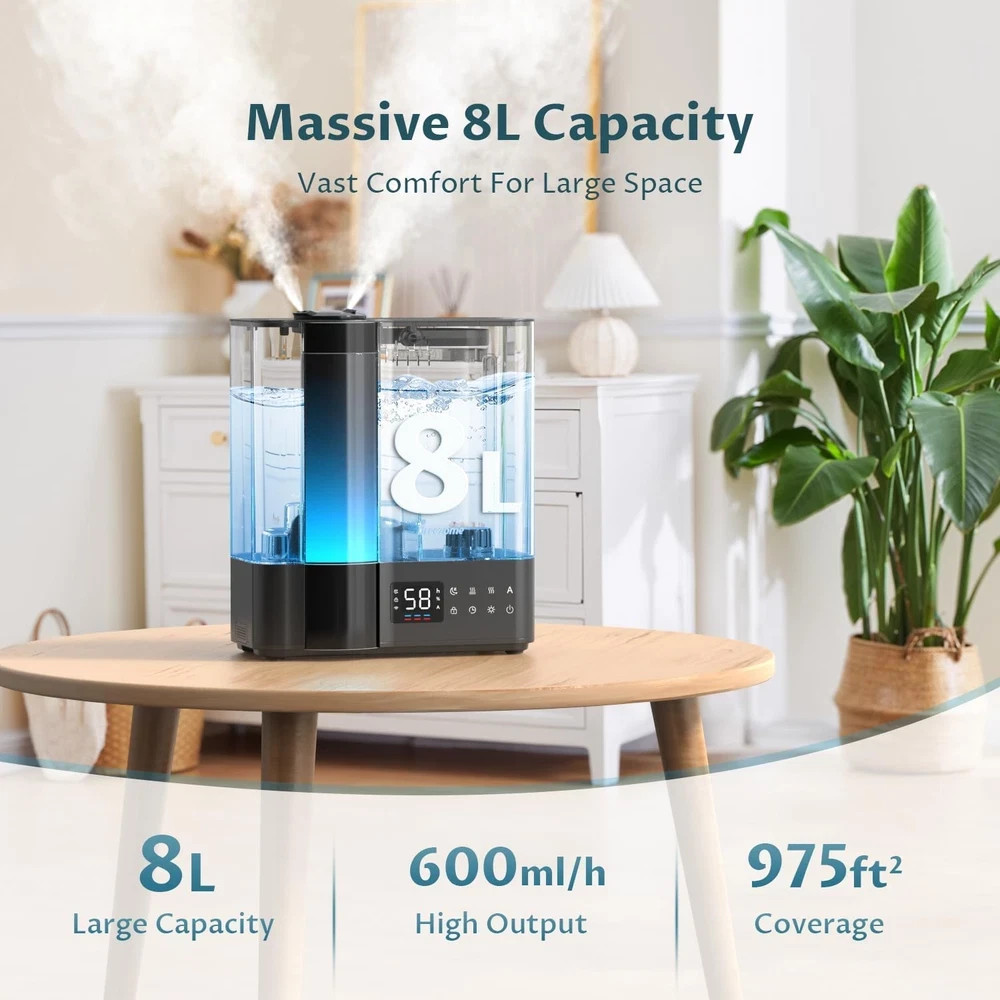 Smart Humidifiers Large Room Bedroom Home, 2.11Gal(8L) Quiet Top Fill Cool Mi...