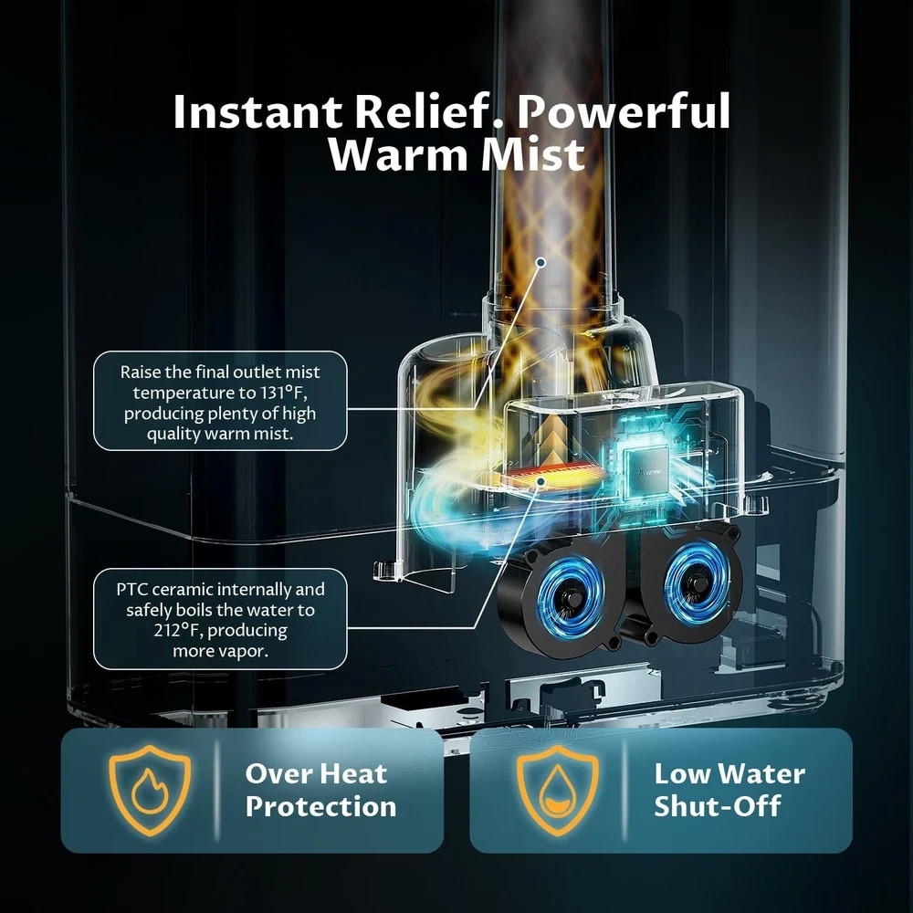 8L Humidifiers for Bedroom, Warm & Cool Mist for Large Room Home, Top Fill Ultrasonic Humidifier, Humidity Sensor, Essential Oil, 65H Runtime, Quiet for Baby, Plants, Fast Relief Description Item model number MG16JS Included Components a humidifier Room Type Bedroom Product Dimensions 6.5"D x 12.2"W x 14.54"H Floor Area 975 Square Feet Color Black Capacity 8 Liters Material Plastic Wattage 25 watts Power Source Corded Electric Control Method Touch Item Weight 5.57 pounds Batteries required No Shape Rectangular Operation Mode Ultrasonic Model Name MG16JS Special Feature Auto Shut Off, Warm & Cool Mist Voltage 120 Volts Instant Warm Mist Relief: Our humidifier for bedroom delivers a powerful 45-inch high, 131°F warm mist for rapid symptom relief in large rooms. High-efficiency PTC Ceramic heats the water to 212°F to produce pure, dense vapor, with a 600ml/h output that hydrates every corner. Protect your humidifier from scale and extend its lifespan by using distilled or purified water, especially with warm mist. Massive 8L Capacity for Long-Lasting Comfort: Engineered for uninterrupted comfort, the massive 8L tank provides up to 65 hours at lowest mist setting of continuous operation. This eliminates daily refills, ensuring lasting relief through the night and day. Self-Regulating Auto Mode for Effortless Comfort: Let the humidifier manage humidity for you. The built-in humidistat continuously detects room humidity and auto-adjusts mist output to maintain level 40%-80%. Tailor your environment with 3 mist levels and 3 heat settings for fully personalized comfort. Ultra-Quiet Operation for Undisturbed Rest: Advanced ultrasonic technology, our humidifier for bedroom operates at a near-silent 22dB in sleep mode. With all lights off and an automatic shut-off safety feature, it creates the perfect dark and quiet environment for light sleepers, babies, and home offices. 2-in-1 Diffuser & Humidifier:A dedicated tray allows you to add your favorite essential oils. The mist carries the soothing fragrance throughout the room, creating a spa-like, multi-sensory comfort experience. Convenient Top-Fill Design: Refilling and cleaning have never been simpler. Just open the lid and directly add water into the working humidifier to maintain a long lasting humidification. And the wide opening ensures easy access for a thorough cleaning. Product description ABOUT US We’re dedicated to bringing you great deals on quality products. From home décor and garden essentials to tools, hardware, and pet accessories, our store has something for everyone — all at prices you’ll love. SHIPPING We ship all orders directly from the USA for fast, reliable delivery. Most items ship within 1 business day and include free shipping to the lower 48 states. For international orders, we use eBay’s Global Shipping Program — simply continue checkout to see costs, duties, and taxes for your country. FREE RETURNS We offer a 30-Day Return Policy on items which you are not completely satisfied with. You have the option for a full-refund or an exchange of the item. CUSTOMER SATISFACTION We do everything we can to ensure every customer is 100% satisfied. If something isn’t right, just send us a message — we’ll make it right quickly!