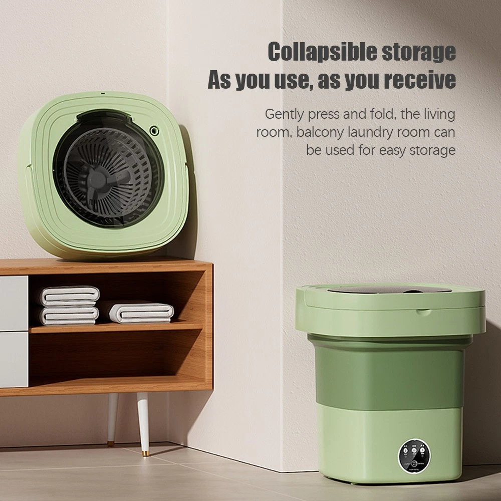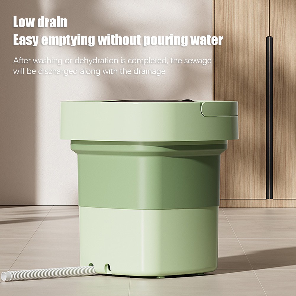 Specification: Features: 【Compact And Convenient】With folded of 30 * 30 * 15cm, this portable washing machine is perfect for small apartments, dorms, and travel. It's lightweight at only 1.5kg, making it easy to move and store. 【Powerful and Efficient】Equipped with a 360W high-power motor and 8L capacity, this washing machine can easily remove tough stains and dirt from your clothes. The 36W rated power and 50HZ frequency ensure efficient cleaning. 【Multiple Functions】This mini washing machine has a time setting of 0-10 minutes and can quickly dry clothes with a 3-minute timed spin. It has a up-position water inlet, and also has a low-position drainage outlet to ensure all dirty water is drained out. 【Health and Safety】The foldable washing machine is designed to prevent hand injuries and cross-contamination. It has a 36W pure copper motor that runs at high speed to clean clothes thoroughly. The sterilization function ensures that your clothes are hygienic and safe to wear. 【Easy to Use】The washing machine is easy to operate with just a single press. It can wash and dry various types of clothes, including underwear, socks, and towels. The folded design makes it easy to store and carry. Specifications: Rated Voltage: 110-220V Rated Power: 36W Rated Frequency: 50HZ Folded : 30 * 30 * 15cm/ 11.8 * 11.8 * 5.9in Item Weight: 1.5kg/ 52.9oz Colors: Blue/ Green(optional) Time Setting: 0-10min Capacity: 8L Charging Interface: DC Port Packing List: 1 * Washing Machine 1 * Drain Horse 1 * Drain Basket 1 * DC Charger Package List: 1 * Washing Machine 1 * Drain Horse 1 * Drain Basket 1 * DC Charger