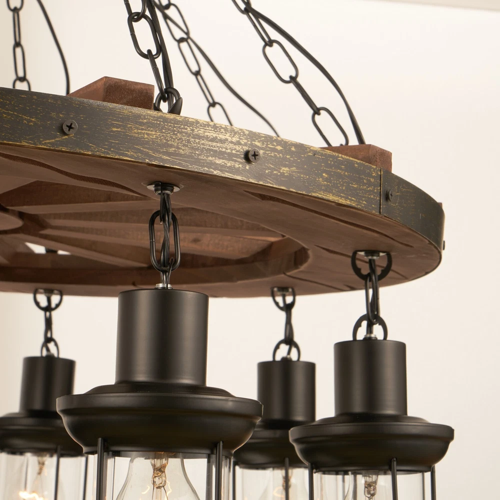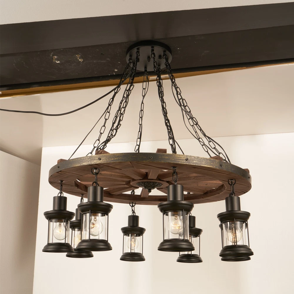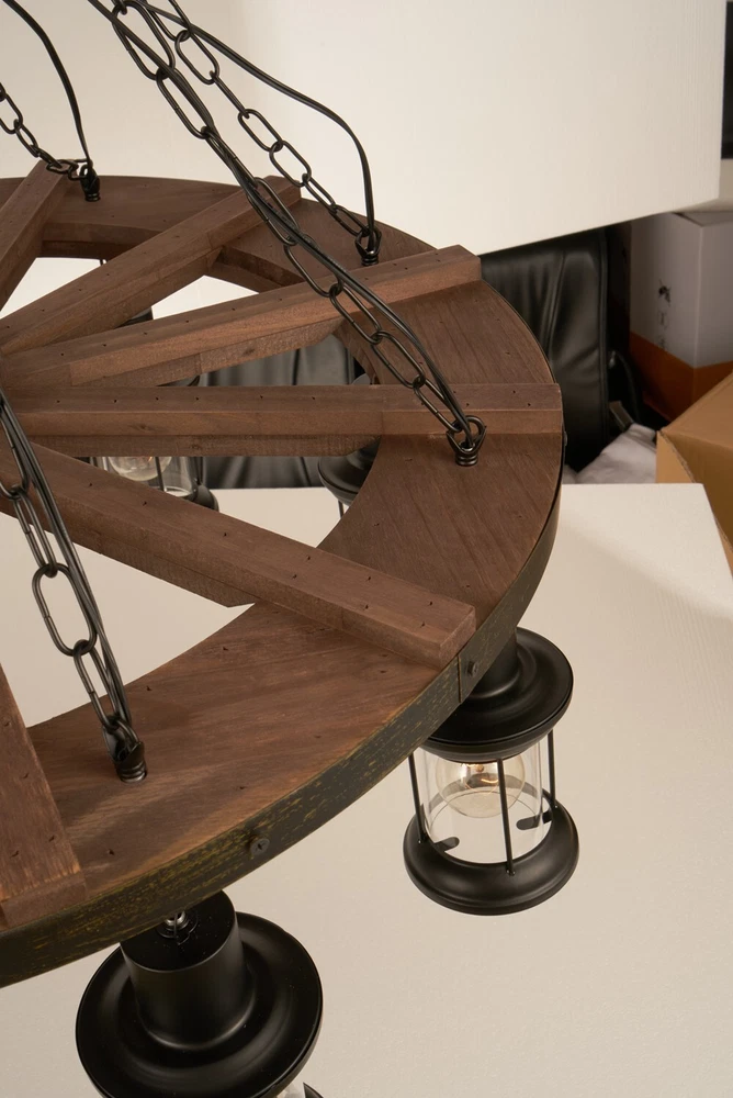 Lamp body color: Wood grain color Material: Wood lamp cap Model: E26, 8 pieces (Light bulb is not included) Lamp shade size (cm): height 21cm * width 12cm Chain size (cm): length 60cm(23.62") * 8 adjustable Installation Size(cm): Height : 110cm=43.3" Diameter : 80cm=31.49" 31.5" Rustic Steampunk Ceiling Light 8-Lights Chandelier Industrial Pendant Lamp Lamp body color: Wood grain color Material: Wood lamp cap Model: E26, 8 pieces (Light bulb is not included) Lamp shade size (cm): height 21cm * width 12cm Chain size (cm): length 60cm(23.62") * 8 adjustable Installation Size(cm): Height : 110cm=43.3" Diameter : 80cm=31.49" Payment Delivery details Terms of sales About us Contact us Payment We only accept several paymeny ways as follow: Delivery details Your goods will be shipped within our handling time after your full payment. This excludes these locations: Alaska, Hawaii and Puerto Rico.APO/FPO’s are definitely excluded. Terms of sales Return: We accept return within 30 days,but we are not responsible for human damage.The return shipping cost is the buyer's responsibilities and try to keep it in your original package. About us We are selling all kind of ceiling fan,crystal chandelier,pendant lights in high quality with best discounted price. Our goal is providing all our customers 100% satisfaction and best customer service. Contact us If you have any questions please contact us through "Ask seller a question" link. We will respond within 2 business day or less.