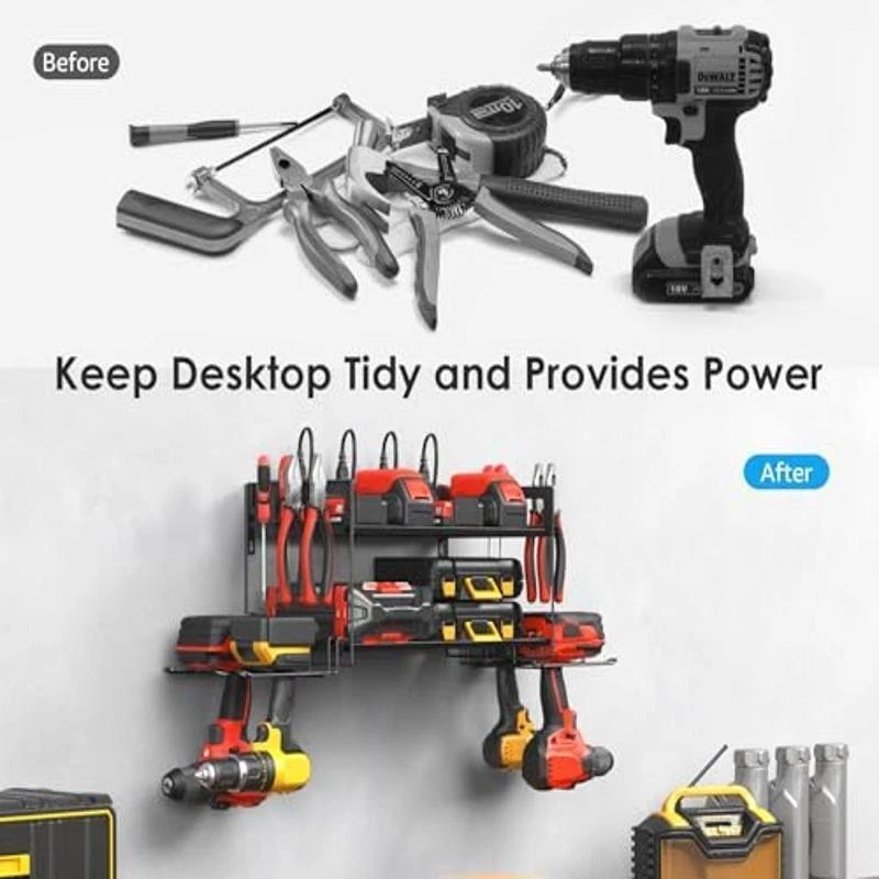 You may also like Storage Containers Rectangular Tote Plastic Stackable Durable 3 Set 50 Gallon US 102.21 USD 107.59 USD Free shipping 5% off 2QT Compact Stainless Steel Multi Cooker 6-in-1 Rice Warmer Safety Cleaning New 43.83 USD 46.14 USD Free shipping 5% off Deflector Chute Toro TIMECUTTER 42 Inch Mowers Part 137-7046 Replacement Safe US 40.74 USD 48.58 USD Free shipping 16% off Toilet Seat Riser 5.5 Inch Elevation Anti-Slip Easy Install Universal Fit New 40.85 USD 43.0 USD Free shipping 5% off Super Powerful Carpet Upholstery Stain Extractor Cleaner Multi-Surface 16oz New 16.75 USD 17.63 USD Free shipping 5% off Touchless Motion Sensor Trash Can 13 Gallon Plastic Black Soft Close Indoor New 39.44 USD 41.52 USD Free shipping 5% off Commercial Grade Metal Dining Chair Indoor Outdoor Galvanized Steel Durable Chic 91.45 USD 96.26 USD Free shipping 5% off Steel Pro Locking Grease Coupler 18in Hose Swivel Adapter 8000 PSI Durable New 29.15 USD 30.68 USD Free shipping 5% off Jumbo Roll Toilet Paper 2-Ply Absorbent Septic Safe 500ft 12 Rolls Universal Fit 33.31 USD 35.06 USD Free shipping 5% off 5-Cup Stainless Steel Coffeemaker W/ Keep Warm Feature & Brew Pause DCC-5570 New 79.13 USD 83.3 USD Free shipping 5% off 20 V Cordless 1/2-In Impact Wrench W/2.0 Ah Battery & Charger Built-In LED Light 75.09 USD 79.04 USD Free shipping 5% off 16 in Metal Tool Box Lockable Removable Tray Heavy Duty Steel Storage Portable 29.3 USD 30.84 USD Free shipping 5% off About this item Power tools and batteries organizer with charging station, and have a single place to live. It doesn't take long to find them, will improve efficiency and come with integrated 8 outlets power strip. Made entirely of metal, strong and durable. 8 plugs on the top of the tools storage shelf, and power tools and batteries can be charged there, your battery is fully charged before the next job, and can charge multiple devices at once in the same place where the tools are organized. Very convenient for charging your tool batteries, All-in-one design and the metal power strip with surge protection of 1200J, Able to protect your device to a certain extent, output: 125V/15A/1875W. Utility rack size: L:30. 9in * W:16. 9in * H:9. 37in. It will be pretty useful improvement for your garage and includes double shelves, 4 drill holder, power strip, 16 storage holes designed for different size tools. Offers black, red, and yellow as options to match your own tools. It can quickly assembled in 10-15 minutes, please follow the instructions, come with all the tools needed to put it together, please test the power supply before assembly. Wall mount design, very easy to mount on the wall. › product details Material:Metal Color:Black Product Dimensions:9. 4"D x 17"W x 9. 4"H Number of Shelves:2 Room Type:Garage You may also like Heavy Duty Nonstick Lasagna Pan Durable Aluminized Steel Oven Safe Bakeware New 22.34 USD 23.52 USD Free shipping 5% off Ceramic Nonstick Cookware Bakeware Set 20PC Toxin Free Easy Release Safe Durable 271.29 USD 285.57 USD Free shipping 5% off Flocked LED Battery Operated Garland Christmas Decor Indoor Artificial 72 In New 43.42 USD 45.71 USD Free shipping 5% off 3/8in Drive 9-Piece Durable Chrome Vanadium Hex Socket Set Tool Kit New 17.4 USD 18.32 USD Free shipping 5% off Round Wall Mirror W/ Shelf Metal Frame Glass Decor Living Space 12x4x23 In New 23.51 USD 24.75 USD Free shipping 5% off Hand Towel Rolls 800ft 1-Ply White 6ct Washrooms & Kitchens Safety Cleaner New 49.77 USD 55.58 USD Free shipping 10% off Super Powerful Carpet Upholstery Stain Extractor Cleaner Multi-Surface 16oz New 16.75 USD 17.63 USD Free shipping 5% off 24-Pocket Over-the-door Hanging Shoe Organizer Canvas Storage Solution New 17.88 USD 18.82 USD Free shipping 5% off Adjustable Natural Wood Baby Gate 31"-50" Easy Install Secure Lock Easy Clean US 38.33 USD 40.35 USD Free shipping 5% off Ironing Board 4-Leg Design W/ Cotton Cover Adjustable Height Portable Storage US 55.71 USD 58.64 USD Free shipping 5% off 4V Rechargeable Cordless Electric Screwdriver Pistol Grip Magnetic Bit Storage 29.66 USD 40.13 USD Free shipping 26% off Smart Box Spring Queen Sizes Bedding Furniture Polyester Durable Steel Frame New 127.89 USD 134.62 USD Free shipping 5% off