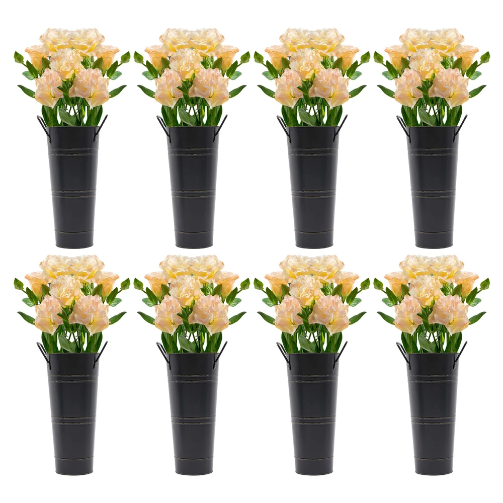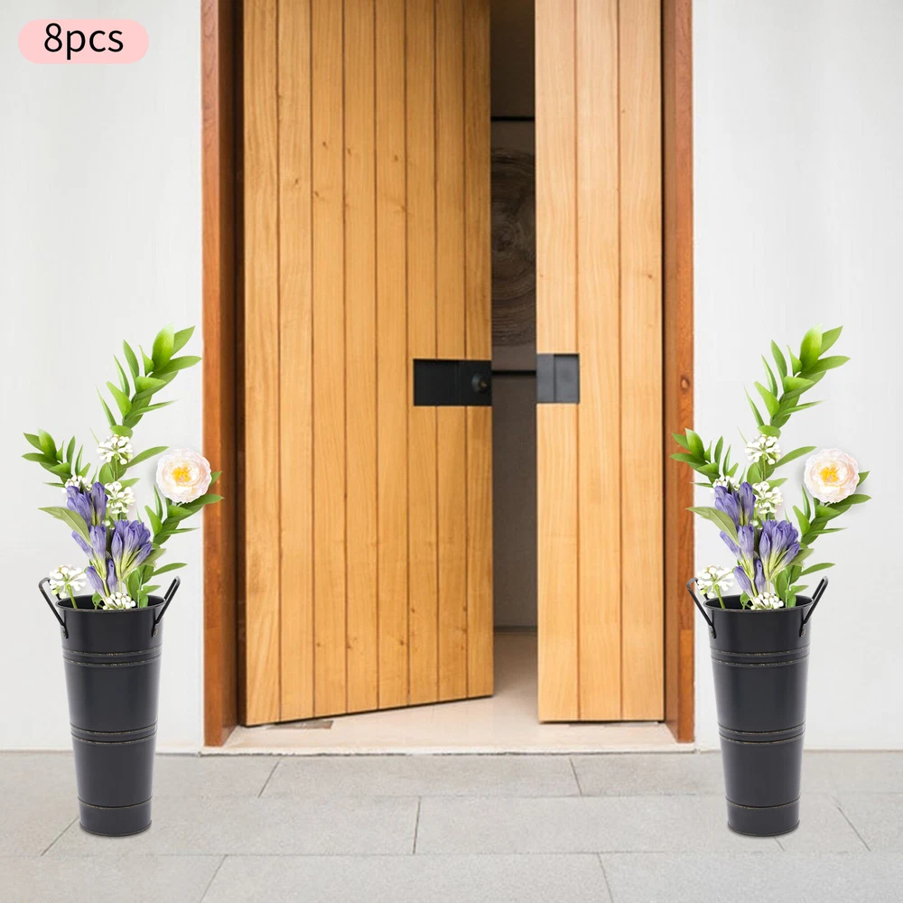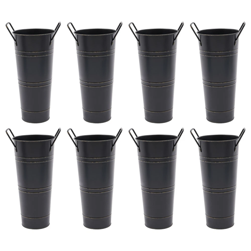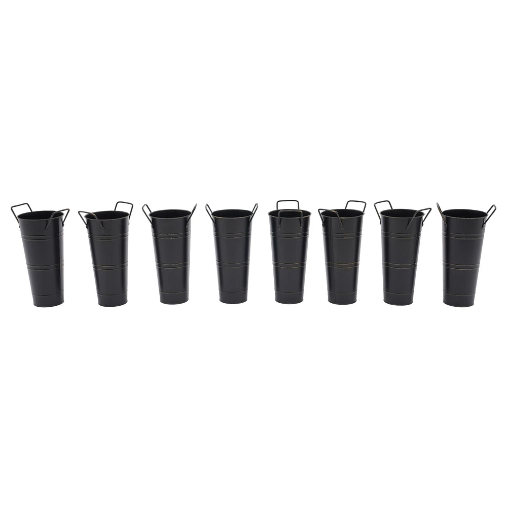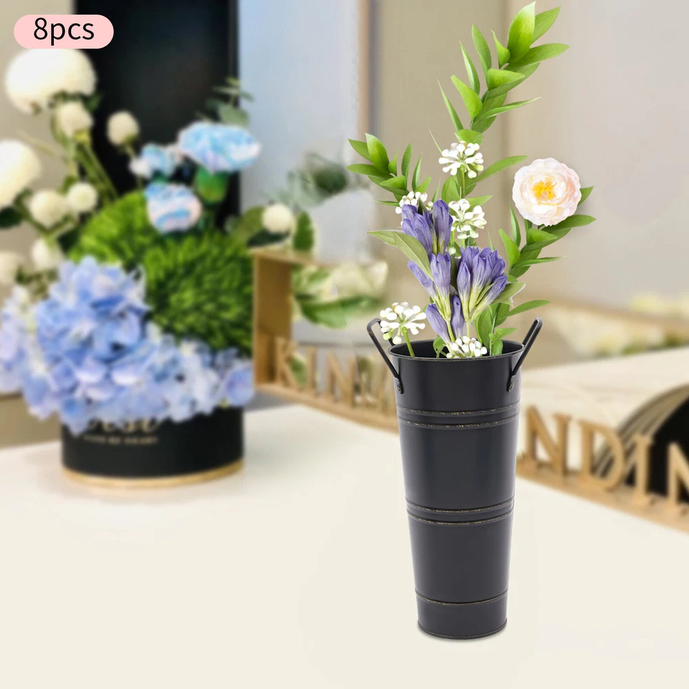 8PCS Galvanized Metal Vases Flower Bucket Vases, Black Flower Vases for Bouquet