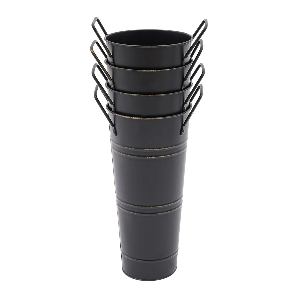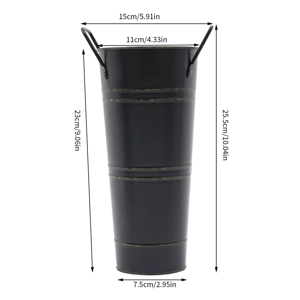 Assembly Required: No Vase Height(Handle Excluded): About 23cm/9.06in Number of Items: 8 Net Weight: 1.55kg/3.42lbs Product Overall Height: About 25.5cm/10.04in UPC: Does not apply Bottom Diameter: About 7.5cm/2.95in Thickness: 0.23mm/0.009in Brand: Unbranded Top Opening Diameter: About 11cm/4.33in Color: Black Gross Weight: 1.63kg/3.59lbs Top Width(Handle Included): About 15cm/5.9in gtin13: Does not apply Type: Flower Bucket Vases Style: Modern Mount Type: Floor Standing Package Size: 43.5*14*11.5cm/17.13*5.51*4.53in Surface Treatment: Galvanized Material: Iron Shape: Cylindrical