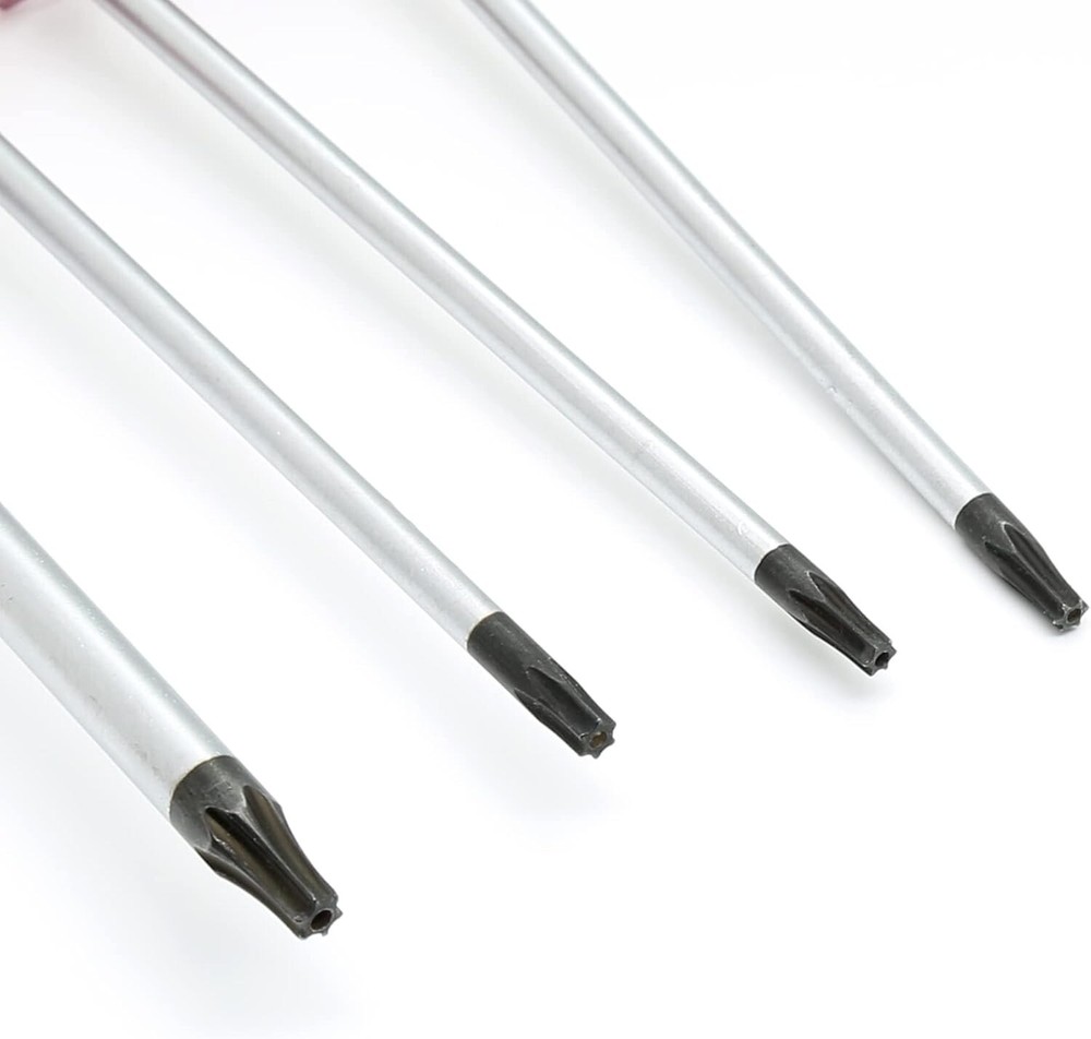 Piutouyar 8PCS Magnetic Torx Screwdrivers Set Security Screwdriver T8 T9 T15 T15 Size:T8,T9,T10,T15 Number of Items: 8 Head Style: Torx Material: Chrome Vanadium Steel Color Silver What You Will Get:T8, T9, T10, T15 Torx Head Magnetic Screwdriver(2 of each size),torx diameter :3mm/5mm;security hole:1mm/2mm Sturdy:Black finish blade with magnetic tips which could conveniently attracts screws, The hole in the center in each bit causes it to be tamper resistance, Chrome vanadium steel with heat treatment, high hardness and good toughness and resistance Wide Application:Ergonomic handle for a comfortable and non-slip grip,Widely used in electronic repair, computer hard drive or mobile phone repair Easy to Use - The handle is coded with size for easy identification. With magnetic, can be operated efficiently Return Policy: We offer a 30 day return policy from the receiving date. Please contact us for a Free Return Label. Please use our return label so it will go back to our supplier and we can do a refund or replacement afterwards. Feedback: Your satisfaction is very important to us! If you have any problem with your order, please contact us and we will do our very best to make you satisfied. As long as you are happy with your purchase, please leave a positive feedback for us. We will always leave you a positive feedback in return. If you have any problem with your purchase, please do not leave a negative feedback. Please Contact us ... and your issue will be solved quickly and positively We are a small family-owned business trying to make a living, not a huge company that does not care ... We will ALWAYS do our best for you!