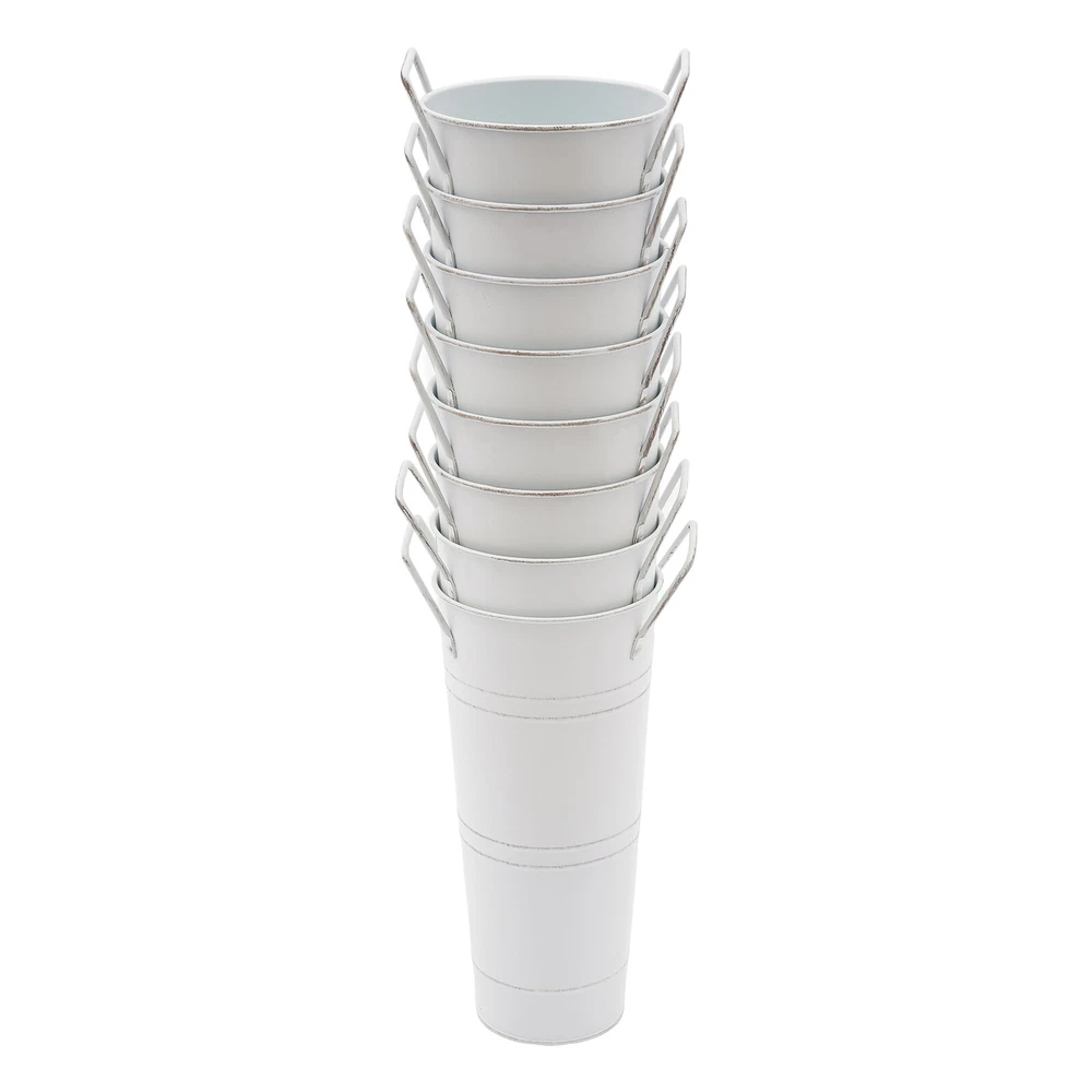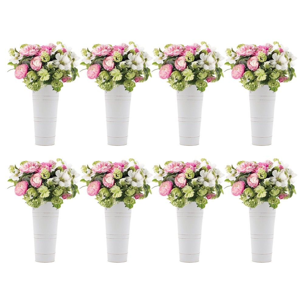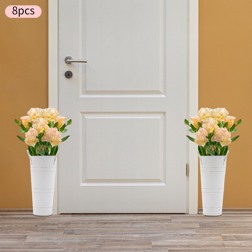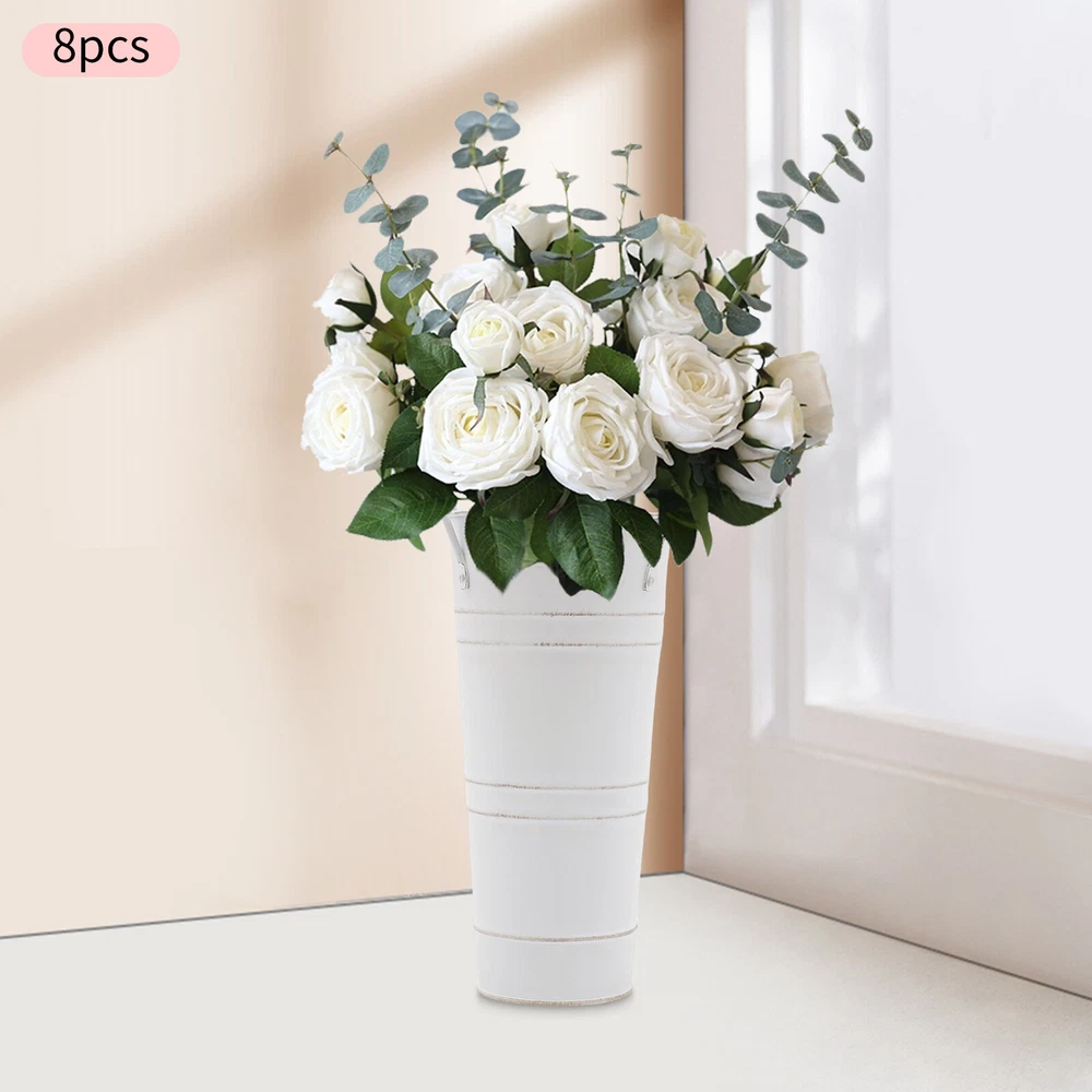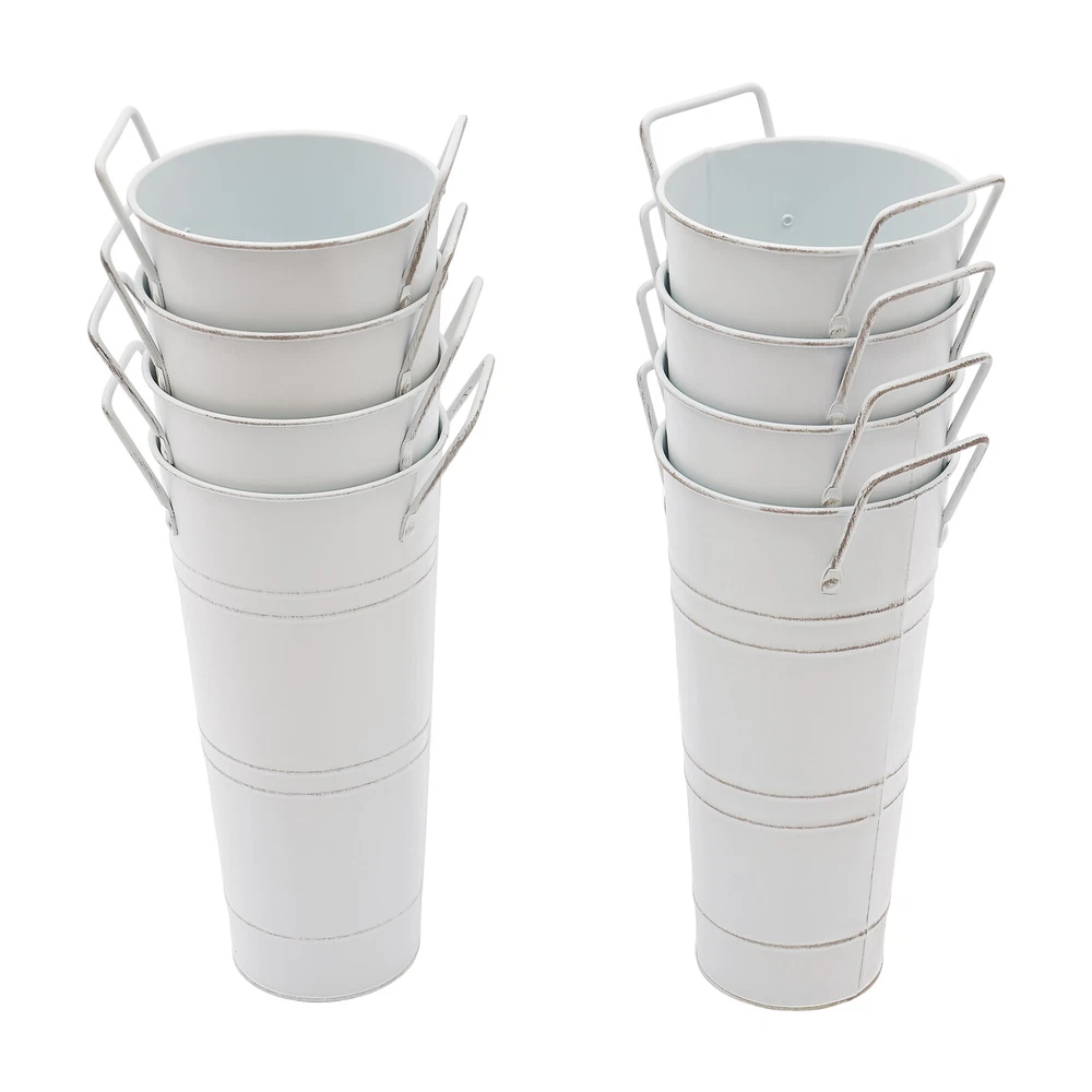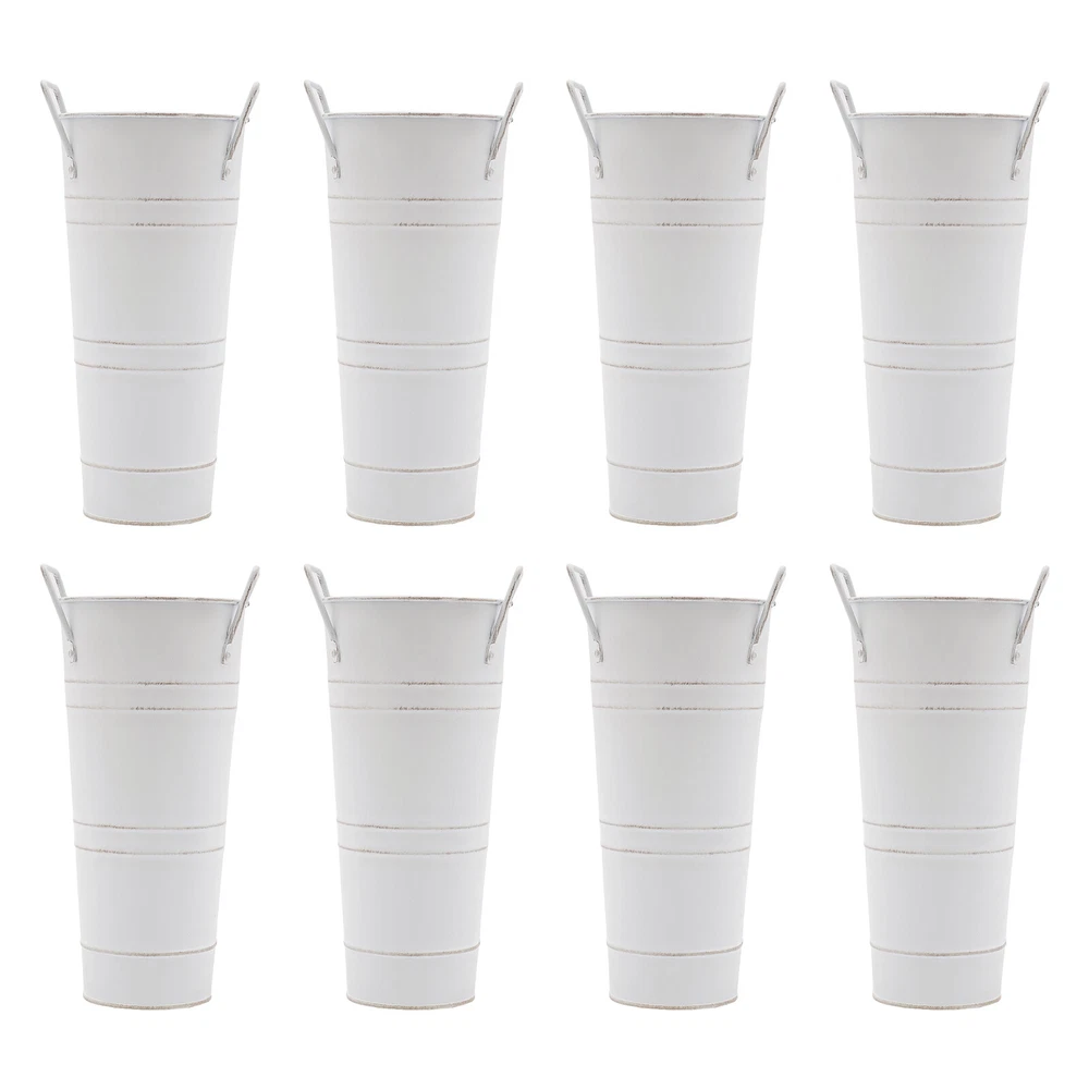 8PCS Metal Vases Flower Vases for Bouquet Flower Bucket Centerpiece Decorations Description Our metal bucket vase, with its simple cylindrical shape, can harmoniously match various flowers, from fresh wildflowers to noble and elegant roses to display different decorative styles; It can also create a picturesque scene even without flowers, showcasing a unique attitude towards life. Whether as the finishing touch of home decoration or as a gift for family and friends, it is an ideal choice, making every aspect of life full of harmonious coexistence between art and nature. Key Features Strong and Durable : The product is made of thickened iron(0.23mm) with a galvanized finish to prevent rust, deform, and break, together with the waterproof coated interior, providing excellent durability and long service life. Practical Function : The 9.06-inch depth and 4.33-inch opening diameter are not picky about the flower material, whether it is a single large branch bouquet or a complex combination of small flowers, this vase can show their beauty and flexibility to adapt to a variety of decorative needs. Elegant Decoration : The classic retro appearance of the galvanized flower vase can match any home decoration and add an elegantly pristine ambiance to your home. Paired with real, artificial flowers, or plants, it greatly elevates the look of your living space. A pack of 8 : 8 vases can meet your different space placement needs, thus making the whole space layout more reasonable. DIY Fun : With these vases, you can invite your friends and family to join the DIY project and exercise your hand ability, stimulate your imagination and creativity, and have fun in it. Installation-Free : You can use this product directly after receiving it without additional installation, which saves you time and energy. Effortless Clean : A simple structure and smooth surface make this product easy to clean. You only have to wipe it with a damp cloth. Excellent Gift : You can give this practical product to your family, friends, and flower and plant lovers on various occasions such as anniversaries, holidays, Christmas, Thanksgiving, New Year's, and weddings, and share the beauty of nature with your loved ones. Good Customer Service : We stand behind all our guests and look forward to assisting you with your purchase. It is our pleasure to answer your confusion and questions. The end of the story between us is not "we sell and you buy". Details Practical Handles : The ergonomic handles are designed to make it convenient for you to move the product. Smooth Edges : They not only enhance the aesthetics and textures of the product but also improve safety during cleaning and use. Application These vases are ideal for flower arrangements, fresh/dried flowers, or plants. They are suitable for the bedroom, dining table, living room, kitchen, balcony, garden, party, ceremony, wedding, anniversary, hotel, flower shop, and other spaces. Specifications Color: White Style: Modern Shape: Cylindrical Material: Iron Surface Treatment: Galvanized Assembly Required: No Mount Type: Floor Standing Number of Items: 8 Thickness: 0.23mm/0.009in Top Width(Handle Included): About 15cm/5.9in Top Opening Diameter: About 11cm/4.33in Product Overall Height: About 25.5cm/10.04in Vase Height(Handle Excluded): About 23cm/9.06in Bottom Diameter: About 7.5cm/2.95in Gross Weight: 1.63kg/3.59lbs Net Weight: 1.55kg/3.42lbs Package Size: 43.5*14*11.5cm/17.13*5.51*4.53in Package Included 8*Flower Bucket Vases Notes Please note that flowers are not included in this product. Due to manual aging surface treatment, there may be slight differences in color depth, which is a normal phenomenon. Rust spots are also specially designed. Please make sure you can accept this aging style before purchasing! Iron products may sometimes show signs of collision, paint peeling, etc. during transportation, but it does not affect the overall appearance. The iron sheet series flower vases cannot guarantee absolute waterproofing, and soaking in water for a long time will gradually rust. If you need hydroponic plants, you can put them in your own plastic bag or add a plastic inner pot! Please allow the slight color difference caused by the shooting light and the 1-3 cm error due to manual measurement, and make sure you do not mind before ordering. Payment Delivery details Terms of sales About us Contact us Payment We accept ebay payment 。 Fees such as import duties, taxes are not included in the item price or shipping costs. These charges are the buyer's responsibility. Delivery details Shipping: 2-9 working days to: USA Terms of sales We maintain high standards of excellence and strive for hundred percent customer satisfaction. Feedback is very important to us. We hope that you contact us immediately before you give neutral or negative feedback, so that we can address your concerns. It is impossible to address issues if we do not know about them! About us Your satis faction is our ultimate goal. We work hard to earn your trust and future business. Our certified technicians have tested each item before shipping. The unit comes with 1 year limited warranty on all manufacturing defects. a) If you receive a defective item, you may return it or ask for a discount. Please contact us within 14 days after you receive the package. b) What you returned must be intact and in its original packaging as re? u. Customer is responsible for shipping costs of the returned item. c) We will cover the cost of shipping back t with the shipping rate indicated in the registration page. We will send you a new unit or refund the full payment you paid. Thank you. Contact us Business Hour Business Hour: Monday To Friday: 8:30 AM to 5:00 PM (Beijing China time) Due to time zones, our reply to your questions may not be immediately. But within above working time, we will reply your email within 24 hours. If it's non-workdays, please kindly be patient and wait till Monday. Please contact us with ebay message. P