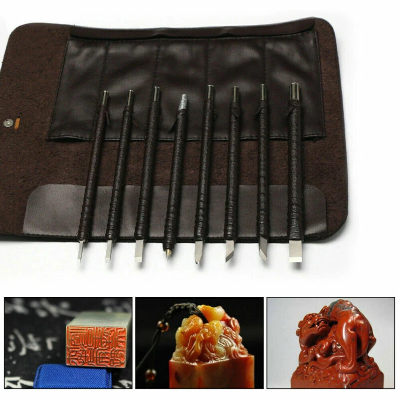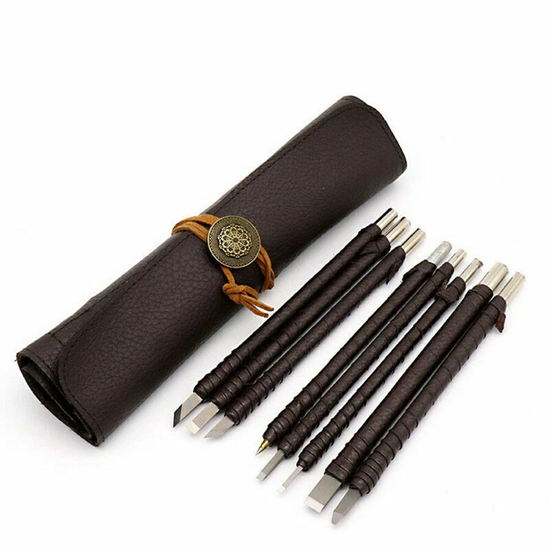 8pcs Tungsten Steel Stone Carvin g Sculpting Kit Carbide Hand Chisel Tool + A Bag Features: Durable,well made and easy to control for each have a very comfortable grip Used for carving stone stamps and small decorative crafts Tungsten steel cutter head has high hardness, wear resistance, good strength and toughness, heat resistance and corrosion resistance The storage bag is made of high-quality PU leather with retro brass buckles. Specifications: Carving Tools Material: Tungsten Steel Storage Bag Material: PU Length: 140mm Diameter: 5.8mm Package Included: 8 x Carving Tools 1 x Storage Bag