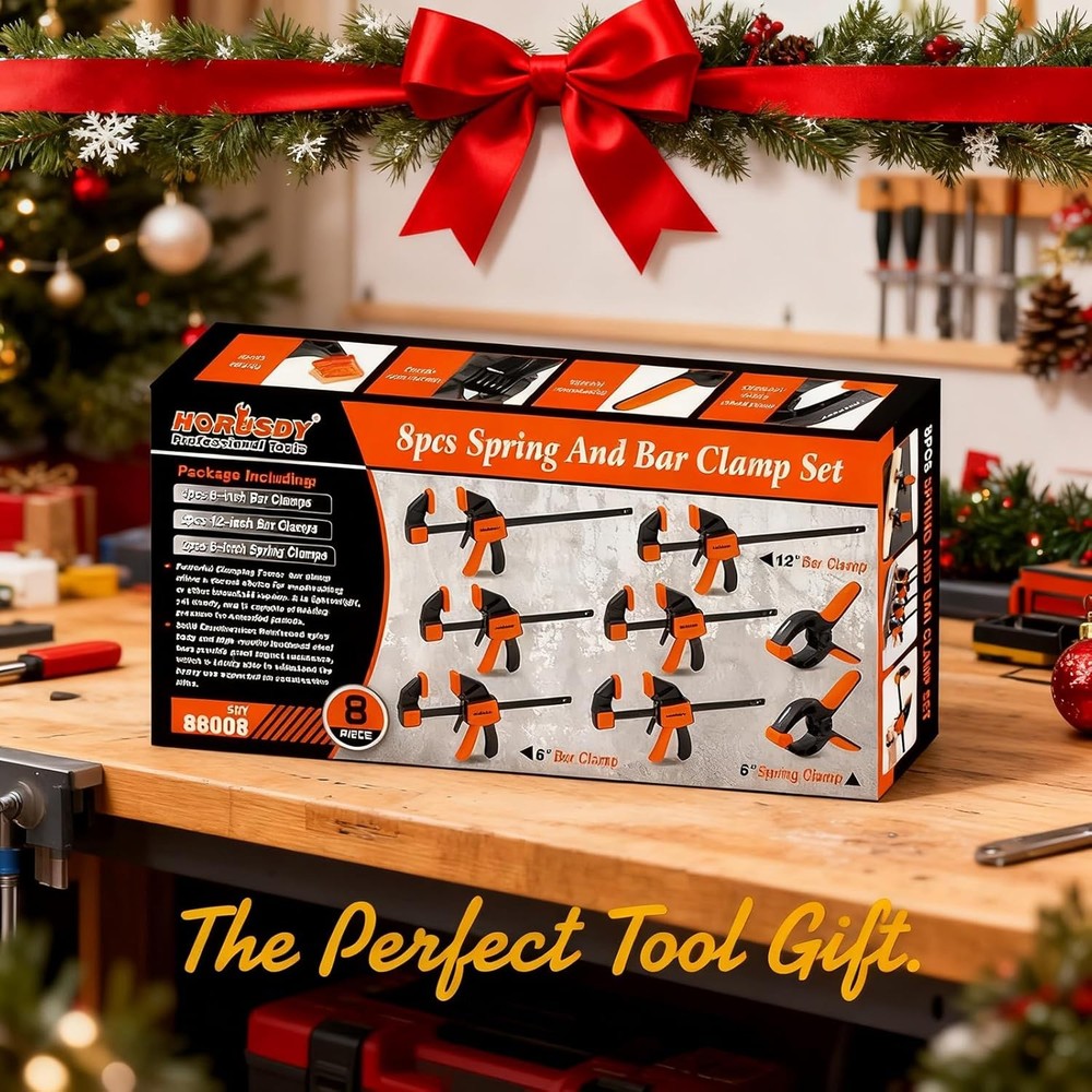 1. The complete set includes 4pcs 6" bar clamps,2pcs 12" bar clamps and 2pcs 6" spring clamps, which can meet different needs. 2. 6" clamps are suitable for spreaders up to 11-9/64" and 12" clamps are suitable for spreaders up to 17-21/64", which can provide customers with more choices. 3. Strong nylon body and high-quality hardened steel bar have good impact resistance and can fully withstand the high frequency of use at the construction site. 4. Quick-change button design allows the F-Clamp to also function as a spreader. Just push the red button,remove the jaws,then reverse it and put it back in place to get the spreader you want. 5. With up to 150 lbs of squeeze capacity and metal ratchet construction,our pole clamps are perfect for woodworking and home repairs. Lightweight yet strong and durable,it can be used for a long time. Pad features a flexible material and a non-slip texture that enhances the overall clamping force. The quick release design makes your functions easier.