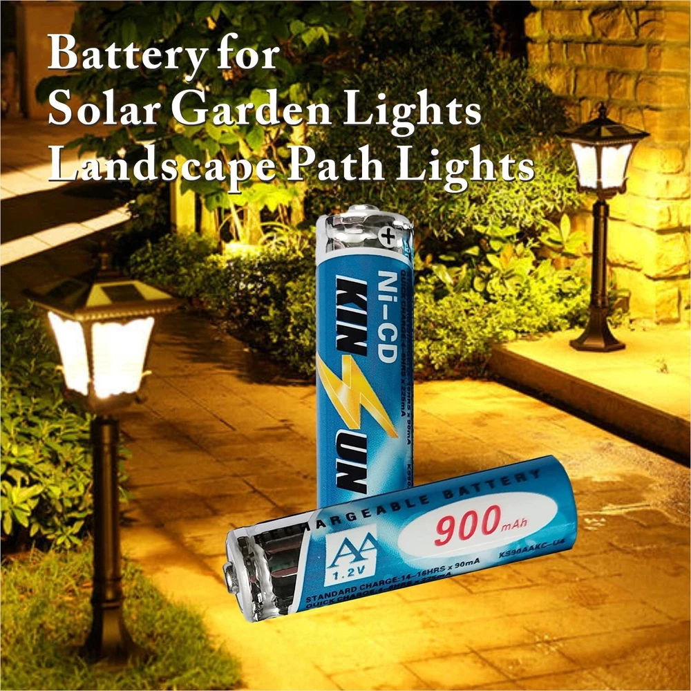 8-Pack Rechargeable Battery 1.2V Ni-Cd AA 900mAh for Outdoor Solar Garden Lig... HIGH CAPACITY AND LONG LASTING - Much longer running time than the normal AA600mAh, high power to the solar lights create bright lightening. Replaces all solar brands of Ni-Cd 1.2V AA 900mAh or less capacity solar light batteries. SUPER AFFORDABLE PRICE - 8 Batteries inside the package. Excellent quality at a great economical price, rebuilt the life and save big on your solar garden light, much cheaper than buying in your local supermarket or chain store. DESIGNED SPECIFICALLY TO POWER OUTDOOR SOLAR LIGHTS - Lawn garden lights landscape lights path lights walkway lights porch and patio lights uses the power of sunlight to recharge during the day, batteries then powers the light at night. If there is not enough sun out, you can also use the universal AA battery charger to pre-charge your batteries before putting them into your solar lights, then it can assist your solar lights in charging your batteries EASY TO REPLACING - All you have to do is to locate the solar light battery cover, remove it, take out the defective batteries and replace them with new ones. If no battery cover can be found, the solar light needs to be taken apart, usually with one or two screws. On most models you’ll find the screws on the top or bottom of the light. Once the unit is open you’ll have access to the batteries WIDE APPLICATIONS - Except ideal for garden solar lights, it also ideal for remote controls, torches, clocks and toys, use the universal AA battery charger to recharge your batteries for your household devices Shipping We offer FREE shipping on all orders! We ship within Three business days of payment, usually sooner. We use a selection of shipping services such as UPS, FedEx, USPS etc. We only ship to the lower 48 states, no APO/FPO addresses or PO Boxes allowed. Local pickups and combined shipping options are not provided at this time. Return You can return a product for up to 30 days from the date you purchased it. Any product you return must be in the same condition you received it and in the original packaging. Please keep the receipt. Payment We accept payment by any of the following methods: PayPal Please pay as soon as possible after winning an auction, as that will allow us to post your item to you sooner! Feedback Customer satisfaction is very important to us. If you have any problem with your order, please contact us and we will do our best to make you satisfied. Contact Us If you have any queries, please contact us via ebay. We usually respond within 24 hours on weekdays. Please visit our eBay store to check out other items for sale! Thank you for shopping at our store.