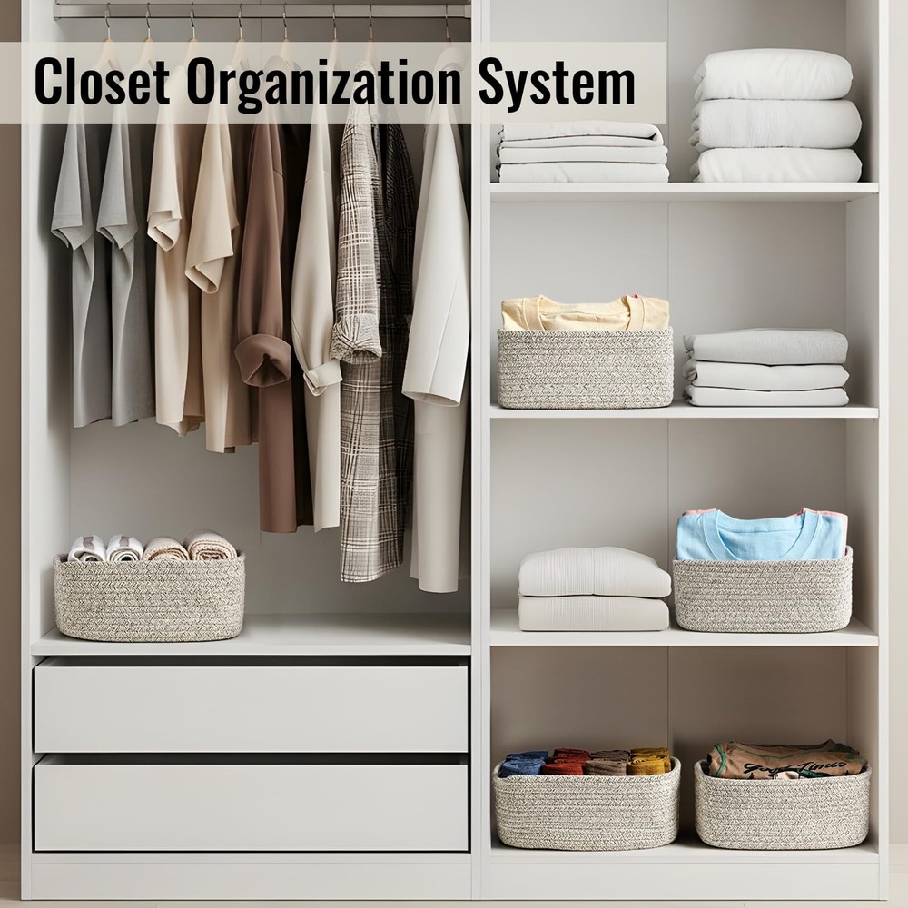 8 Packs Shelf Storage Baskets for Organizing - Small Cube Woven Rope Baskets for shelves - Closet Organizer Bins, Toy Basket, Decorative Box, 12x8x4.5", Brown Compact & Versatile Storage – Measuring 11.5"×7.5"×4.7", these small woven baskets are perfect for organizing cosmetics, jewelry, toys, towels, keys, and more. The set of 8 helps declutter desks, shelves, and closets effortlessly, Brown Soft & Baby-Safe Cotton Rope – Hand-woven with premium natural cotton, these baskets are ultra-soft, odorless, and free of sharp edges, making them safe for babies, pets, and delicate items Charming Minimalist Decor – The neutral-toned woven texture adds warmth to any space—ideal for living rooms, nurseries, or closets. Enhances modern, cozy aesthetics effortlessly Durable & Quality Crafted – Each basket undergoes strict quality checks for reinforced stitching and long-lasting use. Holds shape well even with daily use Easy to Shape & Store – Ships flat for eco-friendly packaging! For instant perfection, a 30-second steam iron treatment works wonders (trust us, it's like magic!). Of course, you can also gently stuff it with clothes—but why wait when crisp edges are just one ironing away? Flattens back down for compact storage