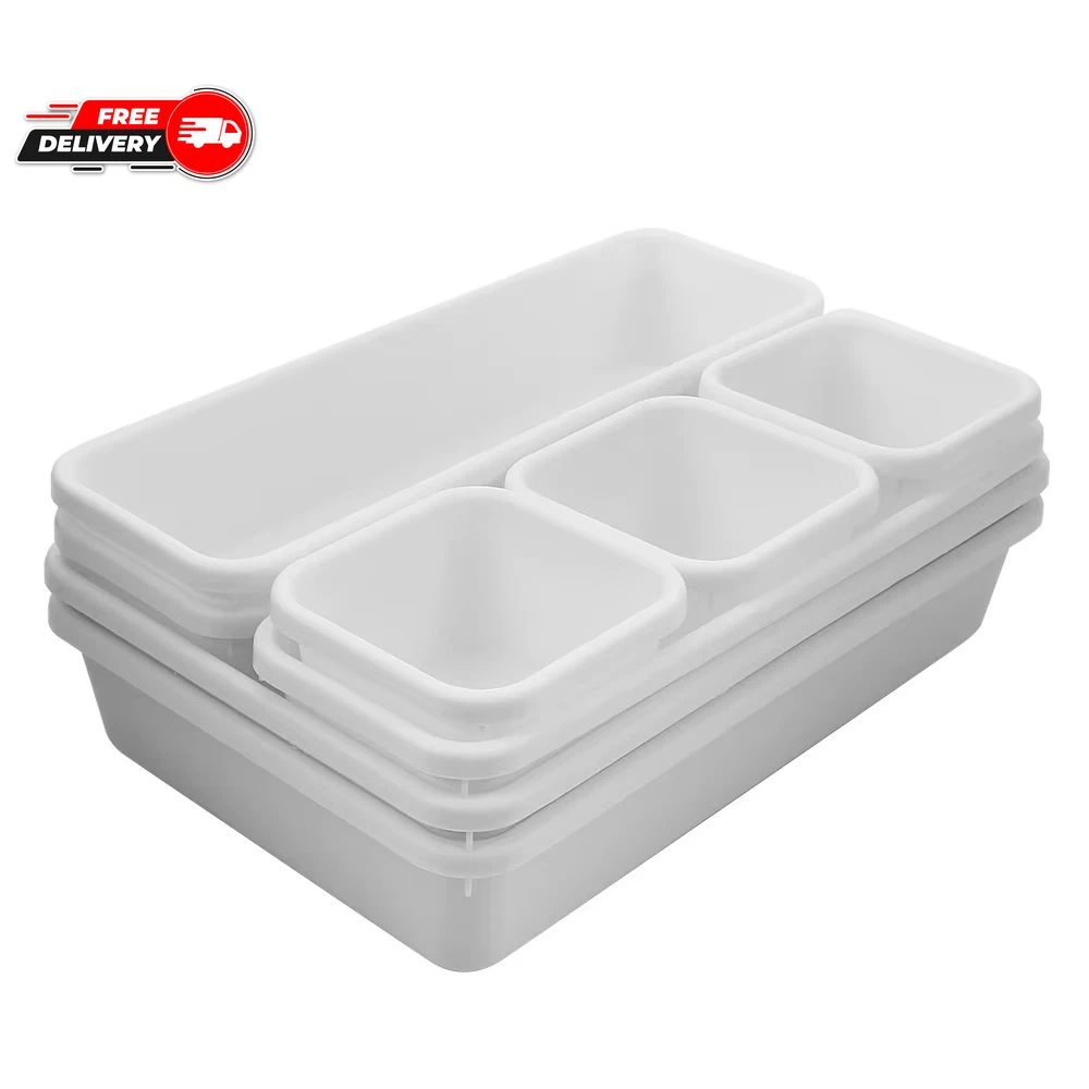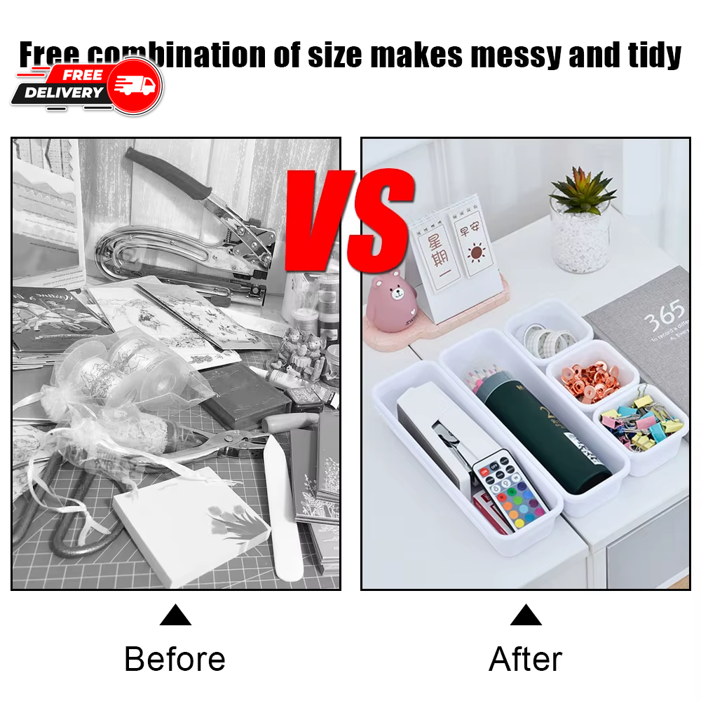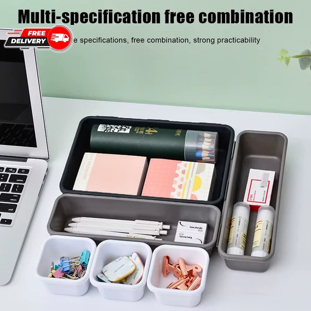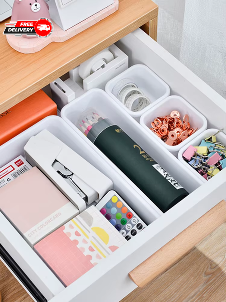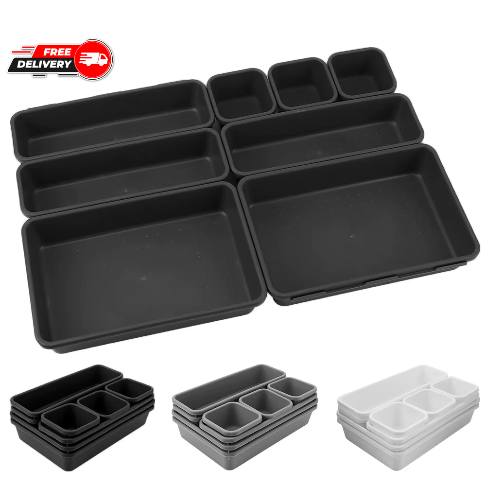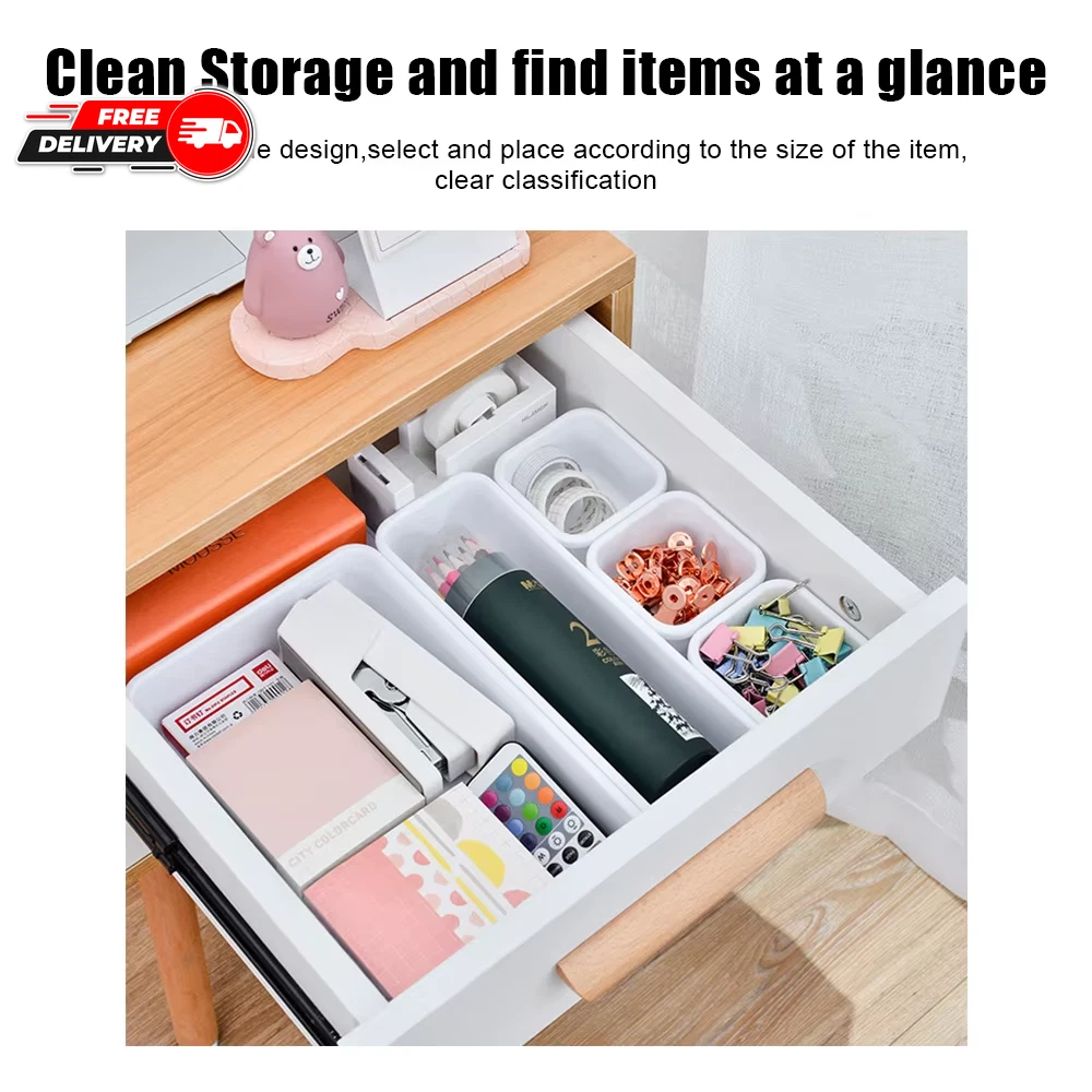 Features: 100% brand new and high quality Made of high quality material, which is safe, non-toxic and durable. Use this drawer organizer to say goodbye to messy and wasted space, a long-lasting storage solution. Use this drawer organizer to say goodbye to messy and wasted space, a durable storage solution. suitable for makeup drawer storage box, bathroom drawer storage box, office drawer storage box, is ideal for bathroom, office supplies, cosmetics or dressing table, can be used to organize hair accessories or school supplies. 8 durable desk drawer storage boxes and storage space: The set includes 2 large drawers, 3 medium drawers , 3 Small drawers. In the kitchen, bathroom, dressing table or office - this multi-functional desk drawer storage box Specifications: Material: plastic Color:Gray,Black,White Size:approx. large drawer: 23.5*16*4.5cm/ Medium drawer: 23.5*7.5*4.5cm/ Small drawer: 5*7.5*4.5cm Package included: 2 x Large drawer 3 x Medium drawer 3 x Small drawer