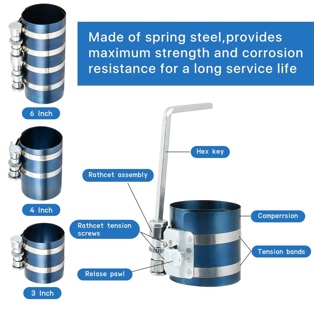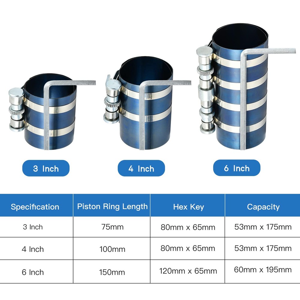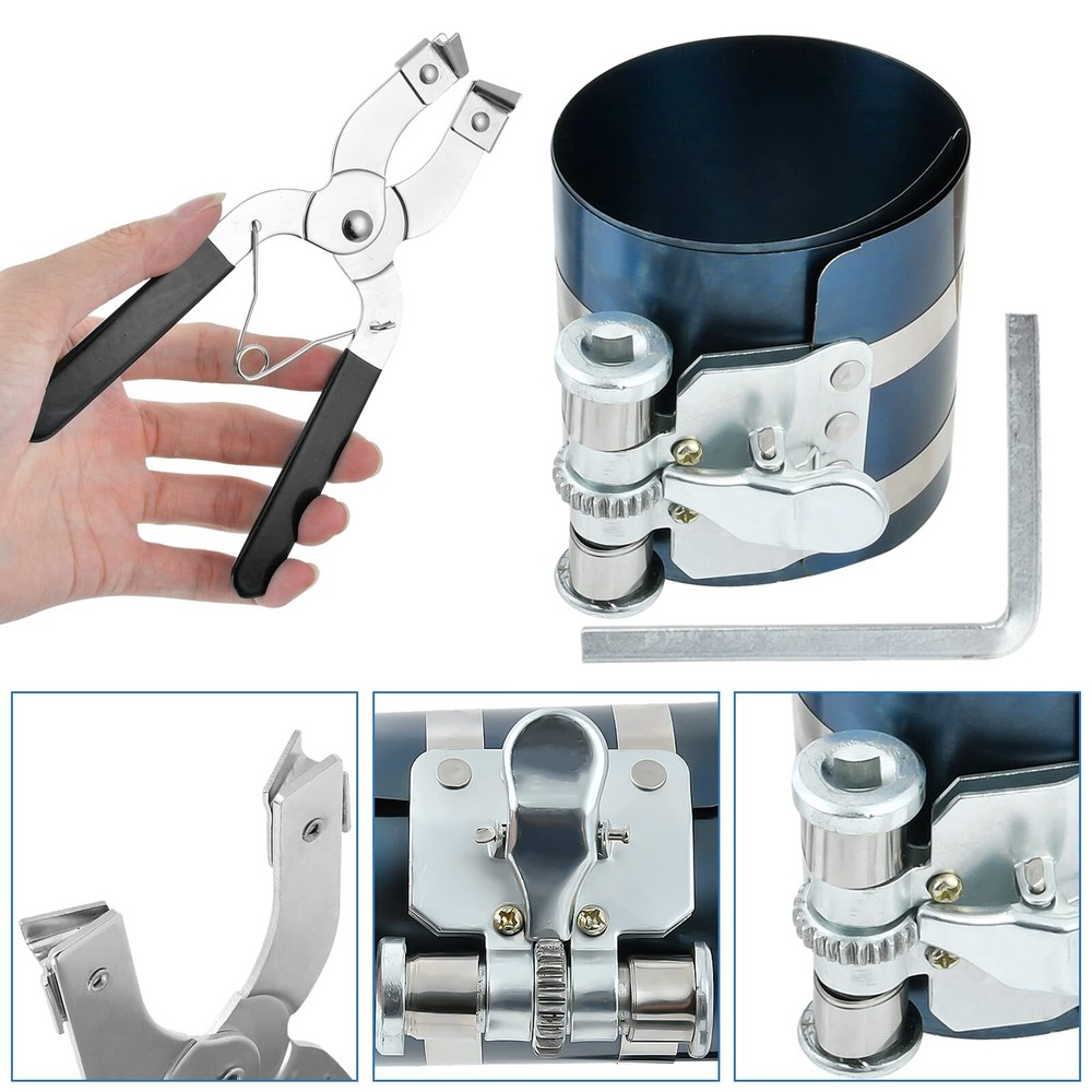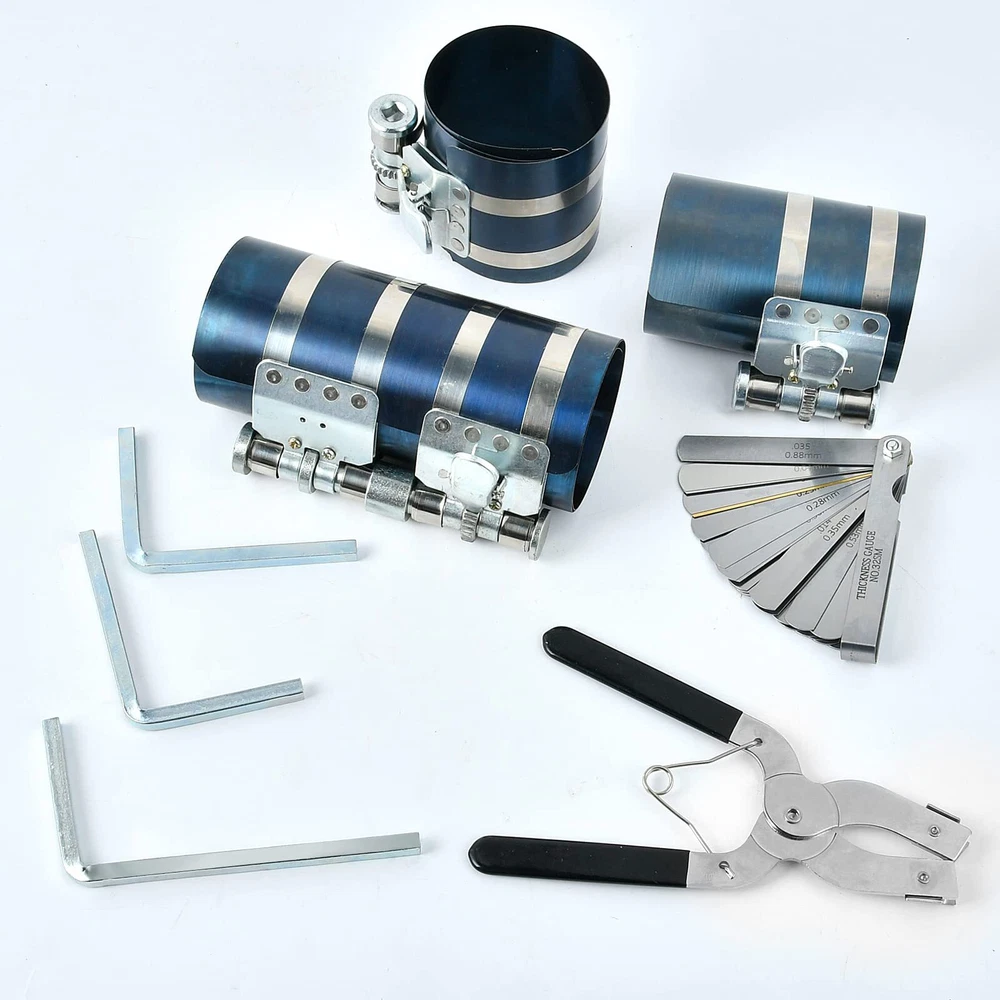 🏠 Worldity 8Pcs 3" 4" 6" Piston Ring Compressor, Car Engine Piston Ring Compressor Tool with Pliers, Hex key and Stainless Steel Feeler Gauge, Piston Ring Installation Tool for Car Engine " alt="Worldity 8Pcs 3" 4" 6" Piston Ring Compressor, Car Engine Piston Ring Compressor Tool with Pliers, Hex key and Stainless Steel Feeler Gauge, Piston Ring Installation Tool for Car Engine" style="max-width: 100%; height: auto; border-radius: 8px; border: 1px solid #ccc;" /> πŸ“„ Product Description 8 Pcs 3" 4" 6" Piston Ring Compressor and Adjustable Piston Installation Tool/b> Package: 1 pcs 3" piston ring compressor 1 pcs 4" piston ring compressor 1 pcs 6" piston ring compressor 1 pcs piston ring pliers 1 pcs feeler gauge 3 pcs hex keys Specifications: Material: spring steel Size: as picture shows IMPORTANT: 1. When you receive the item, please kindly unpack to check if it was not damaged in transition. 2. Our all items are come with 360 days after-sale service, if you do have any questions, please don’t worry and contact us immediately, we are happy to serve you for a long time βš™οΈ Features Value Package: There are 1 pcs 3" piston ring compressor, 1 pcs 4" piston ring compressor, 1 pcs 6" piston ring compressor, 1pcs piston ring pliers, 1 pcs feeler gauge and 3 pcs hex keys, total 8 pieces. 3 sizes for mechanic's daily engine rebuild Adjustable Diameter: 3" 4" 6" piston ring compressor can be freely adjusted to expand the piston ring during disassembly, 3" piston ring compressor adjustable diameter range: 53 mm - 175 mm; 4" piston ring compressor Adjustable diameter range: 53 mm - 175 mm; 6" piston ring compressor adjustment diameter range: 60 mm - 195 mm Easy To Use: Compared to previous slip rings by hand, we have provided piston ring pliers to make the job easier. Be sure the coiled metal is square to the top of the block before starting and keep downward pressure on it as you push the piston through Multipurpose: Suitable for car engine, walk mower engine, diesel engine and tractor engine rebuild. Easily compressed the rings and the piston fit right into the cylinder by lubricating it with oil before use. Also hobbyists inexperienced with small engine rebuilds can slip in the pistons with ease Premium Material: Made of spring steel, provides maximum strength and corrosion resistance for a long service life. The professionally recommended piston compressor tool can help you properly install the piston ring in the cylinder without worrying about twisting or damaging parts πŸ“¦ What's in the Box? 8 Pcs 3" 4" 6" Piston Ring Compressor and Adjustable Piston Installation Tool/b> Package: 1 pcs 3" piston ring compressor 1 pcs 4" piston ring compressor 1 pcs 6" piston ring compressor 1 pcs piston ring pliers 1 pcs feeler gauge 3 pcs hex keys Specifications: Material: spring steel Size: as picture shows IMPORTANT: 1. When you receive the item, please kindly unpack to check if it was not damaged in transition. 2. Our all items are come with 360 days after-sale service, if you do have any questions, please don’t worry and contact us immediately, we are happy to serve you for a long time πŸ“ Dimensions 🚚 Shipping & Delivery βœ”οΈ Fast & Free US Shipping βœ”οΈ Orders processed within 1–2 business days βœ”οΈ Tracking number provided πŸ’¬ Customer Satisfaction Guaranteed: We stand by the quality of our products. If you have any questions or concerns, feel free to contact us β€” we're here to help!