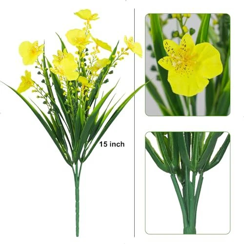 Return Policy Fast Delivery Trusted seller 8Pcs Artificial Flowers UV Resistant Outdoor No Fade Plants Outsides Plastic Greenery Shrubs Fake Silk Flowers Hanging Planter Kitchen Home Wedding Office Garden Decor (Yellow) Product Description Elevate Your Outdoor Space: Bring timeless elegance to your home with our lifelike artificial flowers. Whether adorning front porches or balconies, these vibrant blooms effortlessly enhance any setting, sans the need for sunlight, watering, or pruning. Handcrafted Perfection: Each flower is meticulously handcrafted without the use of glue, ensuring a natural appearance and vivid colors that won't disappoint. Free from any pungent smells, our flowers promise lasting beauty without the hassle of maintenance. Fade-Resistant Assurance: Crafted from premium PE material, our artificial flowers boast UV resistance, ensuring they never lose their vibrant hues, even amidst the busiest of schedules. With regular cleaning, their colorful charm remains intact year-round. Lifelike Quality: Made from high-quality plastic, our flowers offer a remarkably realistic look and feel. Available in an array of vibrant colors, they inject a burst of natural beauty into any space, indoors or outdoors. Hassle-Free Décor: Embrace the beauty of nature without the hassle. Perfect for weddings, gardens, offices, and beyond, our artificial oncidium plants effortlessly mimic the splendor of real blooms, providing unparalleled value and beauty wver they're placed. Shipping Returns Payment Shipping Shipping is FREE to all addresses other than APO/PO boxes in the lower 48 states. All our stock ships from US-based warehouses. Shipped via USPS or UPS (depending on location and package weight) Unless stated otherwise, all orders will ship within 24-72 hours of your payment being processed. Check our feedback to see the great reviews of FAST shipping we offer. Returns Seller does not accept returns Payment We currently accept payment via eBay managed payments only. Once payment is cleared, we will dispatch your shipment within 1-3 business days. Please refer to the "Shipping" tab for more information regarding shipping speed to your destination.