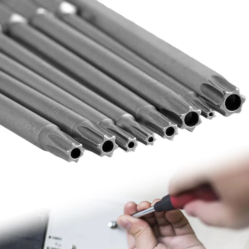 8PCS Torx S crewdriver Bits S et H ex S afety M agnetic H ead 100mm Product Characteristics High Q uality I ndustrial G rade M aterials: The Torx screwdriver bit set is made of high-quality S2 alloy steel with a special heat treatment process to increase the torque and full hardness of the bit, and it has good wear resistance and is more durable than regular Torx screwdriver bits. High P recision M achining T echnology: The product adopts CNC precision machining technology to ensure the accuracy of the product, so that the drill can withstand the instantaneous impact of large torque pneumatic tools, which greatly improves the service life of the product itself. Magnetic: The magnetic Torx screwdriver drill set can quickly and easily adsorb screws, greatly improving your work efficiency. Repeated use does not diminish the magnetic force. Suitable F or A V ariety O f P ower T ools: The 1/4" hexagon handle allows it to accommodate a wide range of power tools, allowing you to quickly change chucks. Suitable for electric drill, air drill, electric screwdriver, manual screwdriver and so on. A W ide R ange O f U se S cenarios: It can be widely used in automobile, home, industrial and other maintenance, and can also be used in other screw drives. Mechanical P rinciple D esign: Strong torque, high torque, after contact with the screw head, the impact reaction force generated by the impact screwdriver is absorbed by the torque part, effectively preventing the damage of the tool head. Straight and concentric, tight bite. Product Specification Status: 100% Brand New Material: S2 A lloy S teel Shank type: 6.35mm/ 1/4" hex shank Drill L ength: 100mm Torx Screwdriver B it s : T8, T10, T15, T20, T25, T27, T30, T40 Package Included 8 × 100mm Torx Screwdriver B it Attention P lease 1. Please allow manual measurement error of 1-5mm. Make sure you don't mind before you buy. 2. Due to lighting effects, brightness contrast Settings of the display, etc., there may be some slight differences in the hue of the picture and the actual item, please make sure you don't mind. 3. Due to the aperture of the drill bit with hole and the structure of the product itself, the speed of the T8 drill bit is recommended to be controlled at 180r/min during use to avoid the wear of the drill bit caused by too fast speed.
