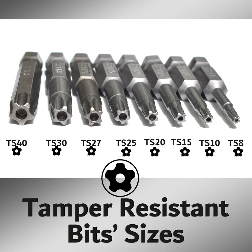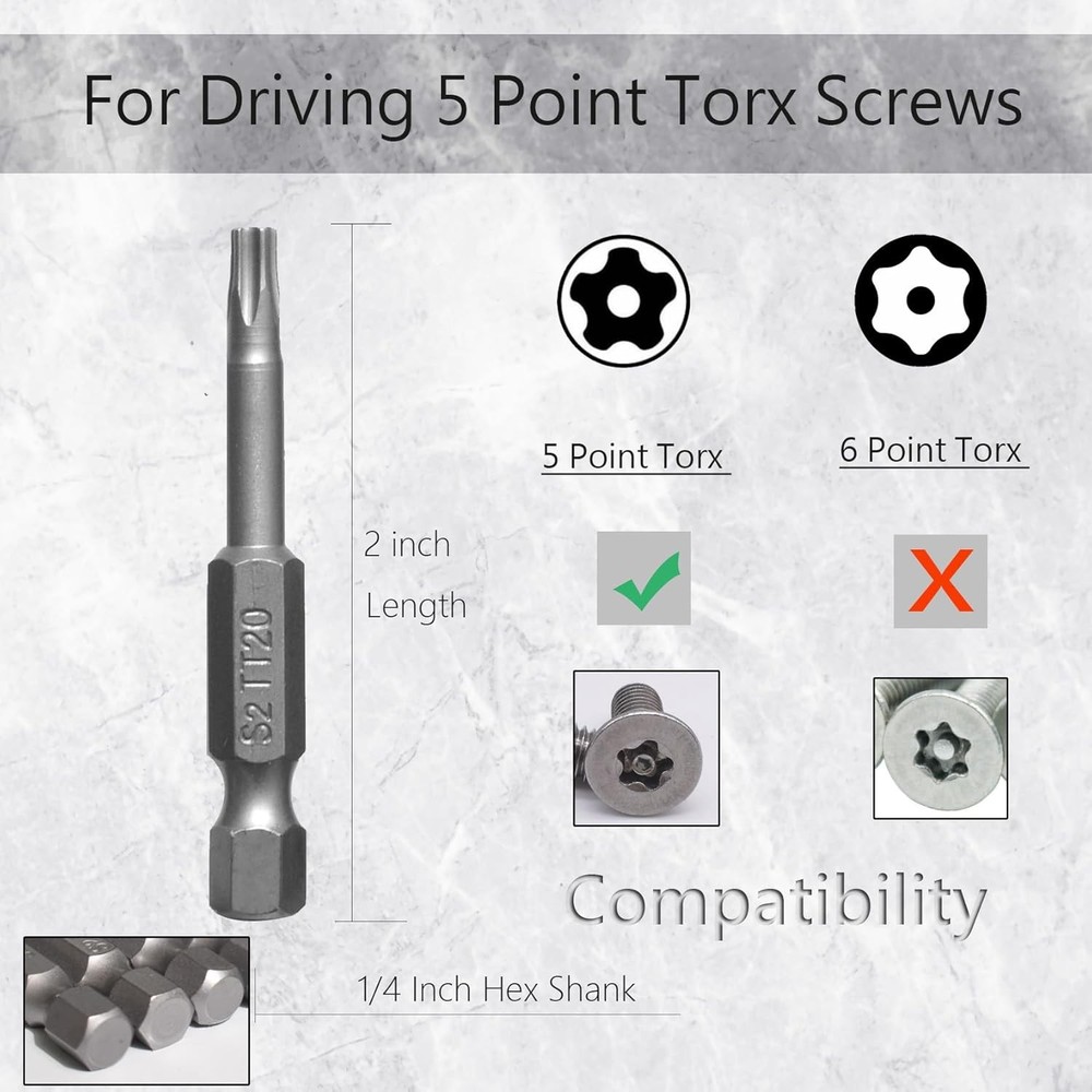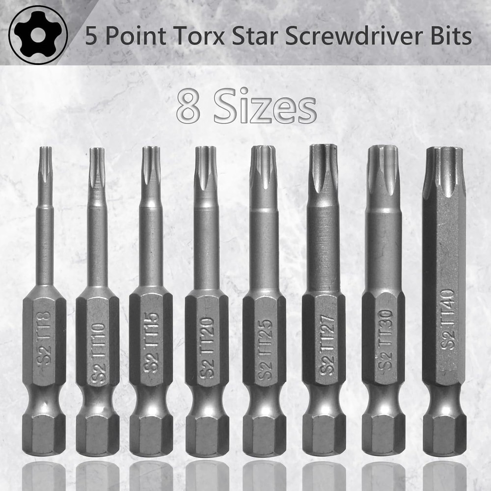 8Pcs 5 Point Torx Star Security Screwdriver Bits Set Magnetic Tamper Proof T8-T40 1/4" Hex Shank 8Pcs 5 Point Torx Star Security Screwdriver Bits Set Magnetic Tamper Proof T8-T40 1/4" Hex Shank FREE AND FAST SHIPPING! About this item What’s in package: 5 Point Torx TT8 TT10 TT15 TT20 TT25 TT27 TT30 TT40 Screwdriver Bits. Screwdriver Bits Length: 2 inch. 5 Point Star Security Screwdriver Bits are made from shock-resisting S2 steel for maximum durability. These Screwdriver Bits are designed to drive 5 Point Star head screws. Strong Magnetic tip can attract screws easily, and make it easy to take the screw out after unraveling. Can be widely used in electric drills, electric screwdrivers, hand screwdrivers, and air drills., etc. Product We offer a 30-Day Return Policy on items which you are not completely satisfied with. You have the option for a full-refund or an exchange of the item. No returns are available on items shipped outside of the US . Shipping We offer Free Shipping to the US and ship within 2 business days of payment, usually sooner. We use UPS express shipping. That's why your products are usually delivered within 3 days . Contact We try our very best to make sure every customer is completely satisfied. If there's a problem , message us! We're happy to help. 24/7 live chat available.