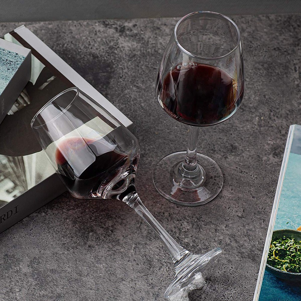 A new angle in stemware creates an edgy silhouette with exquisite brilliance and clarity. Made of break-, chip- and scratch-resistant glass, each wine glass exhibits the exquisite brilliance. The wine glass cleans up easily in the dishwasher after dinner. 8-Pack, while this wine glass has the capacity to contain 12 ounces of red wine when filled to the brim, it is common to pour only about 8 ounces for a normal serving.The glassware are perfect for a relaxed yet chic gathering. The artfully angled wine glasses are dishwasher safe and break-, chip- and scratch-resistant. Unleaded and classic. The safe and durable wine glasses set is a good gift ideal. The white/ red wine glasses have good shape and beautiful glass. Lightweight yet durable. If you’re not completely satisfied, please do not hesitate to CONTACT US.