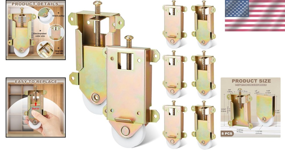 8-Piece 2-1/2" Sliding Mirror Closet Door Roller Wheels Set ‹ › ‹ › ‹ › ‹ › ‹ › ‹ › ‹ › ‹ › ‹ › 8-Piece 2-1/2" Sliding Mirror Closet Door Roller Wheels Set Transform your sliding mirror closet door with our 8-Piece Sliding Mirror Closet Door Roller Wheels Set. Each set includes 8 precision-engineered rollers, ensuring you have enough to address your needs or even share with family and friends. What You Get: 8 high-quality sliding glass door rollers (bolts not included). Perfect for daily use or as spares to keep handy. Size Information: 2-1/2 inch mounting hole center. Main body width: 1-7/8 inches. Ball bearing diameter: 1-1/2 inches. Single plug-in metal bracket: 1-5/8 inches wide and 1/2 inch thick. For detailed dimensions, please refer to the included sizing diagram. Quality Material: Constructed from durable stamped steel, galvanized with yellow zinc for added resilience. Equipped with a strong plastic wheel designed for smooth, quiet, and enduring operation. Narrow concave edges provide optimal rolling performance. Easy to Replace: Effortless installation at the bottom of your sliding mirror wardrobe door. Height adjustments can be easily made post-installation with a central screw. Top adjusting screw allows quick tweaks using a crosshead screwdriver, secured by a fixing nut. Slotted metal bracket is conveniently removable from the shell. Widely Applied: If your sliding wardrobe door is experiencing sticking or instability, it's time for a replacement. Suitable for both wooden and metal sliding mirror doors, this roller set can accommodate various contractors' mirror doors. Why Choose Our Sliding Mirror Closet Door Roller Wheels? Reclaim the smooth functionality of your sliding closet doors with these expertly designed rollers. Their solid construction, thoughtful design, and ease of use set them apart, making them an essential upgrade for any homeowner. Don't let a stuck-door ruin your style – order your 8-Piece Sliding Mirror Closet Door Roller Wheels Set today and experience an effortless glide every time. Shipping Free & Fast Shipping - We offer free shipping to most of the USA with a normal delivery time of 3-10 business days. However, due to various situations, additional delivery time (up to 3 weeks) may be required for some items. Alternative Carriers - We may use alternative carriers (e.g. USPS, FedEx, UPS, etc.) to ensure your package arrives safely and on time. Due to the use of multiple carriers, we are unable to provide a tracking number automatically. Handling Time - Orders are processed and shipped within 1-5 business days of receiving cleared payment. Shipping Restrictions - Shipping to Alaska, Hawaii, Puerto Rico, Guam, and other US territories may incur shipping charges or delivery restrictions. Please contact us before ordering, or your order can be refunded/cancelled. State Restrictions - There may be restrictions based on your state of purchase. For example, certain items may not be shipped to California due to state regulations. Contact for Tracking Updates - If you require tracking updates or have any concerns about the delivery of your order, please feel free to contact us, and we will be happy to assist you. Return 30-Day Hassle-Free Returns - We want you to be completely satisfied with your purchase. If you are not, you can return the item within 30 days of receiving it for a full refund or exchange. Easy Return Process - To start a return, simply contact us and we will provide you with a prepaid return shipping label and detailed instructions. Restocking Fee - There are no restocking fees for returns. However, the buyer is responsible for return shipping costs if the return is not due to a seller's error. Refund Processing Time - Refunds will be processed within 5 business days of receiving the returned item in its condition. Payment We accept all major credit cards, PayPal, and Apple Pay for your convenience. Your payment information is secure and encrypted to ensure a safe and seamless transaction. Please complete your payment within 3 days of purchase to avoid any delays in shipping. Feedback Your feedback is extremely important to us. We strive to provide the best products and customer service possible. If you are satisfied with your purchase, please take a moment to leave us a positive review. If you have any concerns or issues with your order, please contact us before leaving negative feedback. We are committed to resolving any problems and ensuring your satisfaction. Contact Us If you have any questions or concerns, please feel free to out to our customer support team. You can contact us through the eBay messaging system. We are available Monday to Friday, 9:00 am to 5:00 pm EST, and we will do our best to respond to your inquiry within 24 hours. Buy it now and enjoy a pleasant shopping experience! Unit Quantity: 2.55 pounds Suitable For: Sliding Door,Sliding Mirror Door,Closet Door,Sliding Glass Door Material: Plastic,Steel Features: Easy to Replace,Smooth Rolling,Durable,Adjustable Height,Concave Edges Type: Sliding Door Roller Color: As shown in the pictures Item Diameter: 2.5 in Number in Pack: 8 Item Weight: 2.55 pounds