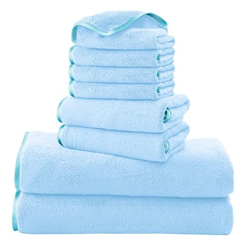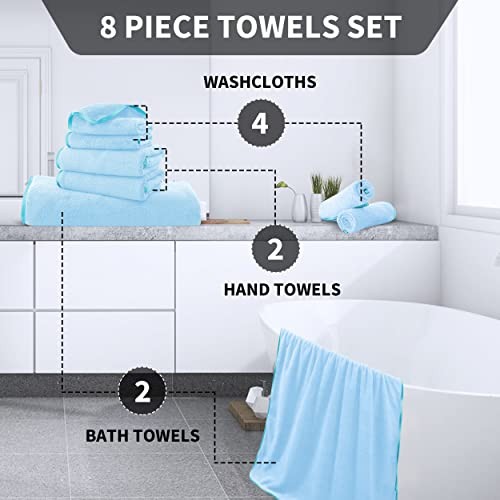8-Piece Aquamarine Microfiber Bath Towel Set with 2 Large Towels