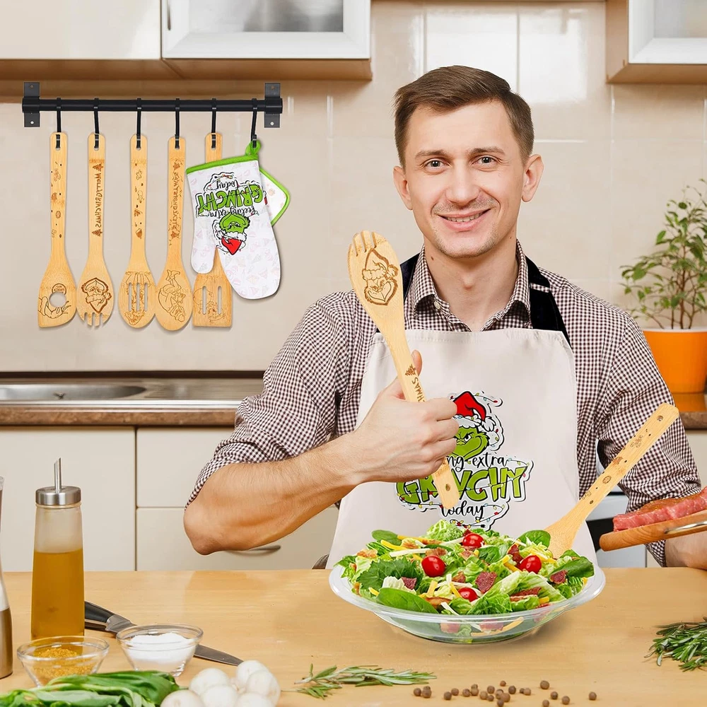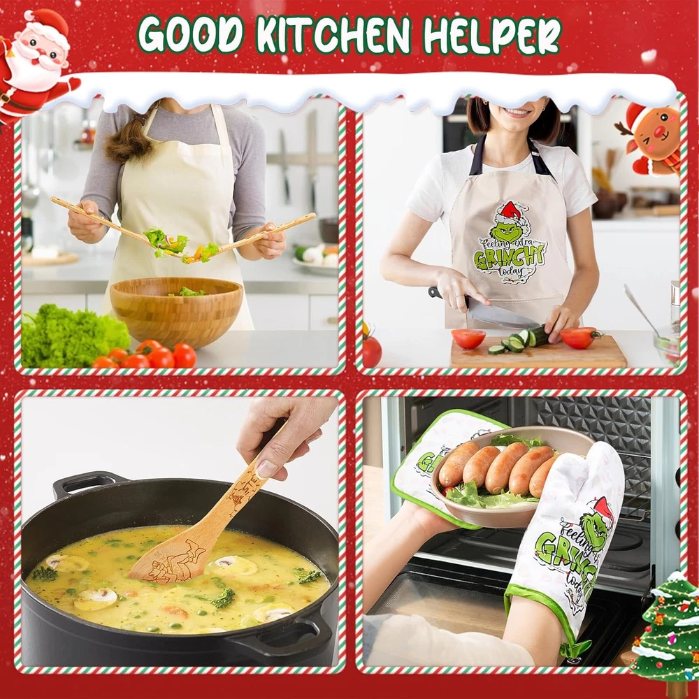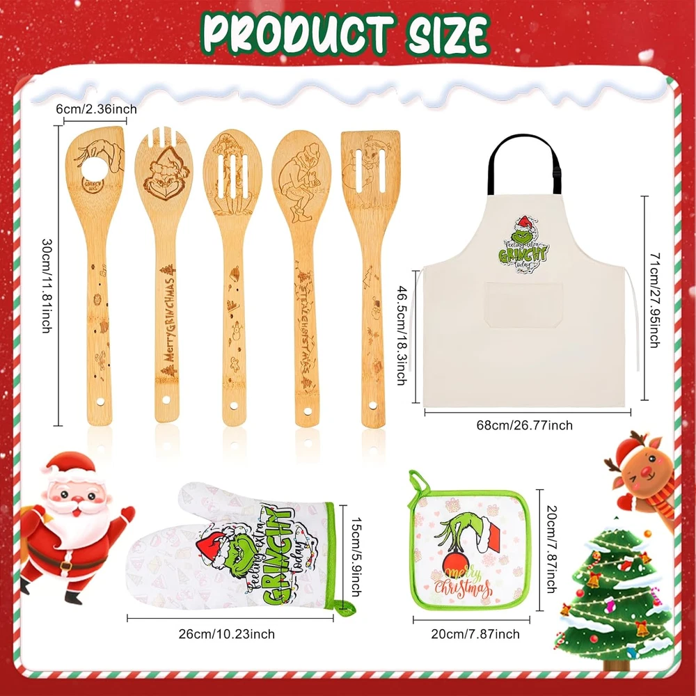 Store New Arrivals Add to Favorite View Feedback Contact 8-Piece Bamboo Christmas Kitchen Utensil Set - Green Monster Design Cooking Spoons, Apron, Oven Mitt & Pot Holder - Christmas Gift for Women, Wife, Mom, and Grandma Description Item model number Kitchen Gift Set Color Natural color of materials Material Bamboo Is Dishwasher Safe Yes Item Weight 13.7 ounces Handle Material Bamboo Size 6.7in x 10.6in Product Dimensions 10.6"L x 7"W Product Details High-Quality Bamboo 8pcs Kitchen Set:This 8pcs kitchen set includes 5 bamboo spoons, 1 pcs 26.7x27.9-inch Christmas apron, 1 pcs 5.9x10.2-inch oven mitt, and 1 pcs 7.8x7.8-inch pot holder. All bamboo utensils are made from organic bamboo, which is durable and won’t absorb food flavors or scratch your cooking surfaces. The variety of utensils meets your daily cooking needs, making it a great Christmas gift to add festive spirit to your kitchen. Perfect Christmas Kitchen Gift Set:This Christmas-themed kitchen set features 5 bamboo spoons engraved with Green Monster designs, and includes 1 Green Monster apron, 1 oven mitt, and 1 pot holder. These festive Green Monster-themed designs, featuring Christmas trees, bells, and more, bring extra holiday spirit to your kitchen. It’s the ideal gift for Christmas parties or a special holiday present for loved ones Essential Cooking Utensils for Daily Use:This bamboo kitchen utensil set is lightweight, durable, and practical, perfect for stirring soups, cooking pasta, or sautéing vegetables. The Green Monster designs add a fun and festive touch, making them perfect for both daily use and holiday cooking. Each time you use them, you'll feel the joy of the season, bringing more fun into your cooking routine. Ideal Gift for Wife, Mom, or Grandma:Looking for a thoughtful gift? This kitchen utensil set is the perfect present for your wife, mom, grandma, or any cooking enthusiast. Great for Christmas, Thanksgiving, Mother’s Day, or birthdays, each bamboo utensil has a convenient hanging hole for easy storage. Lightweight and portable, it's also perfect for outdoor cooking. Give this unique gift to bring warmth and festive cheer to your loved ones’ kitchens Comfortable Design & Easy to Clean:The bamboo utensil handles are ergonomically designed for comfort, making them easy to use for any chef, whether preparing Christmas feasts, Thanksgiving dinners, or everyday meals. The Green Monster apron and utensils are not only functional but also festive. Cleaning is simple—just wipe them down, no need to worry about damage. ABOUT US Explore our handpicked range of top-quality items at fantastic prices. Our goal is to make your shopping experience as smooth and enjoyable as possible. Thanks for visiting! Warm regards, The FerroWarehouse Team SHIPPING We are always working hard to ensure your package arrives as soon as possible. Please understand that some factors like weather, high postal traffic, and the performance of shipping companies are outside of our control. We offer free shipping to the lower 48 states and Canada, with orders processed within 2 business days of payment—often sooner. Please provide a physical address; we do not ship to P.O. Boxes. For shipping outside the U.S. and Canada, delivery time, cost, and processing may vary. International customers are responsible for all duties and taxes. To estimate shipping costs, please proceed to checkout. Thank you for shopping with us! RETURNS We want you to be completely satisfied with your purchase. If you need to return an item We accept returns within 30 days of receipt. Items must be unused and in original packaging. Please contact us first if you have any problems/questions/concerns to initiate a return and get instructions.. We will be happy to resolve any issues you may have in a cordial and friendly manner. We appreciate your Postive Feedback, and will do the same in return. PAYMENT We accept PayPal. CONTACT US This page content is yet to come Please ad us to your favorite seller and visit again later Thank You CUSTOMER SATISFACTION We try our very best to make sure every customer is completely satisfied. If there's a problem, message us! We're happy to help.