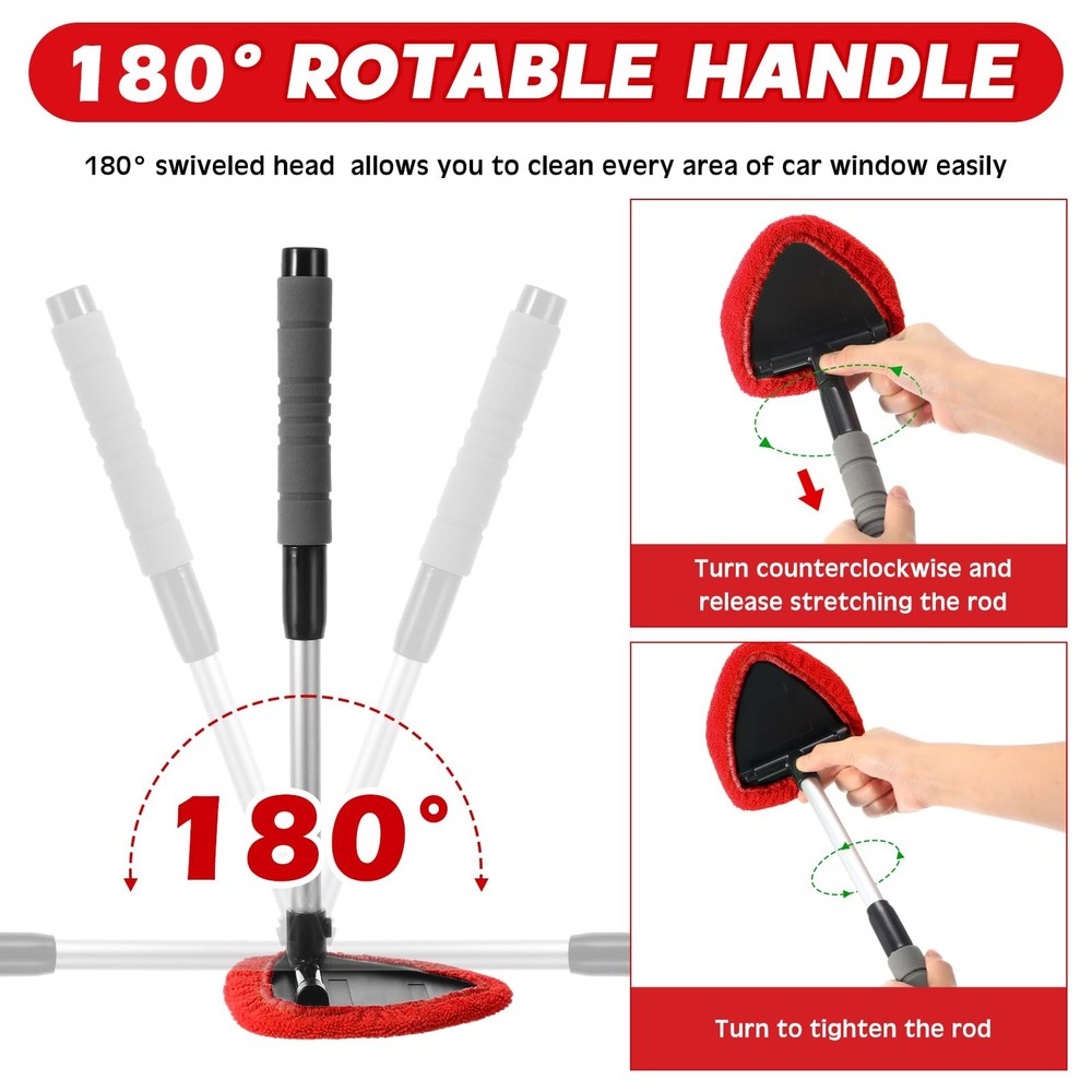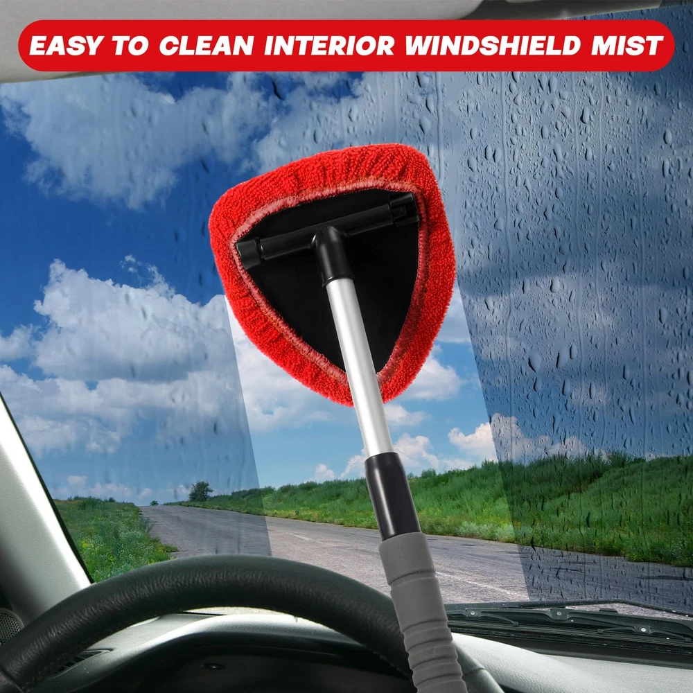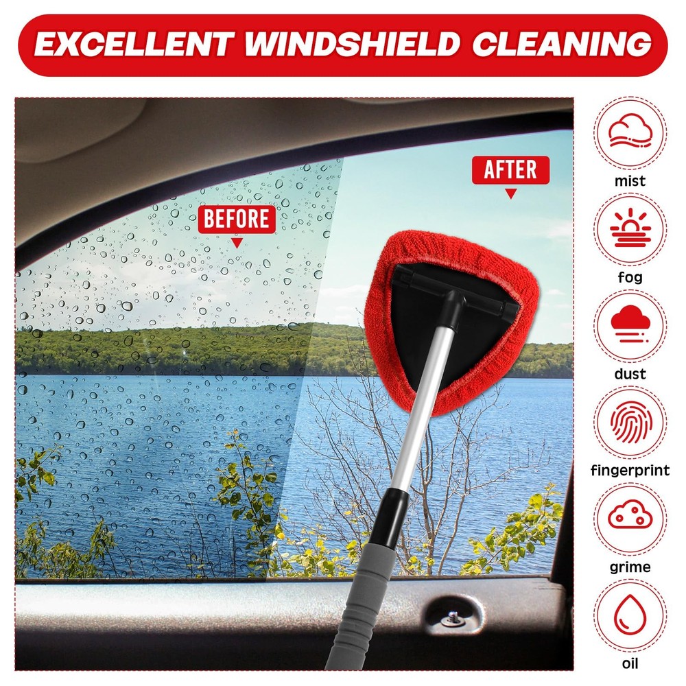 8-Piece Car Window Cleaner Kit with Extendable Handle & Microfiber Bonnets