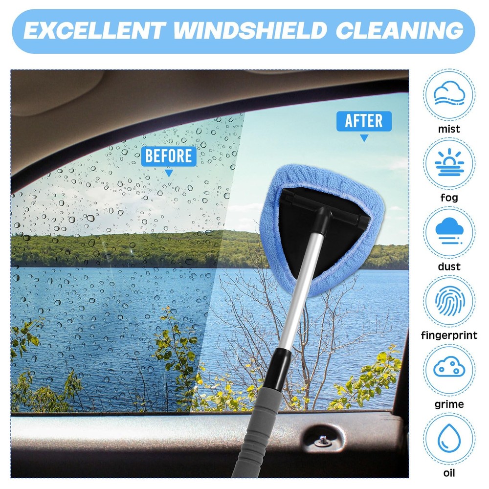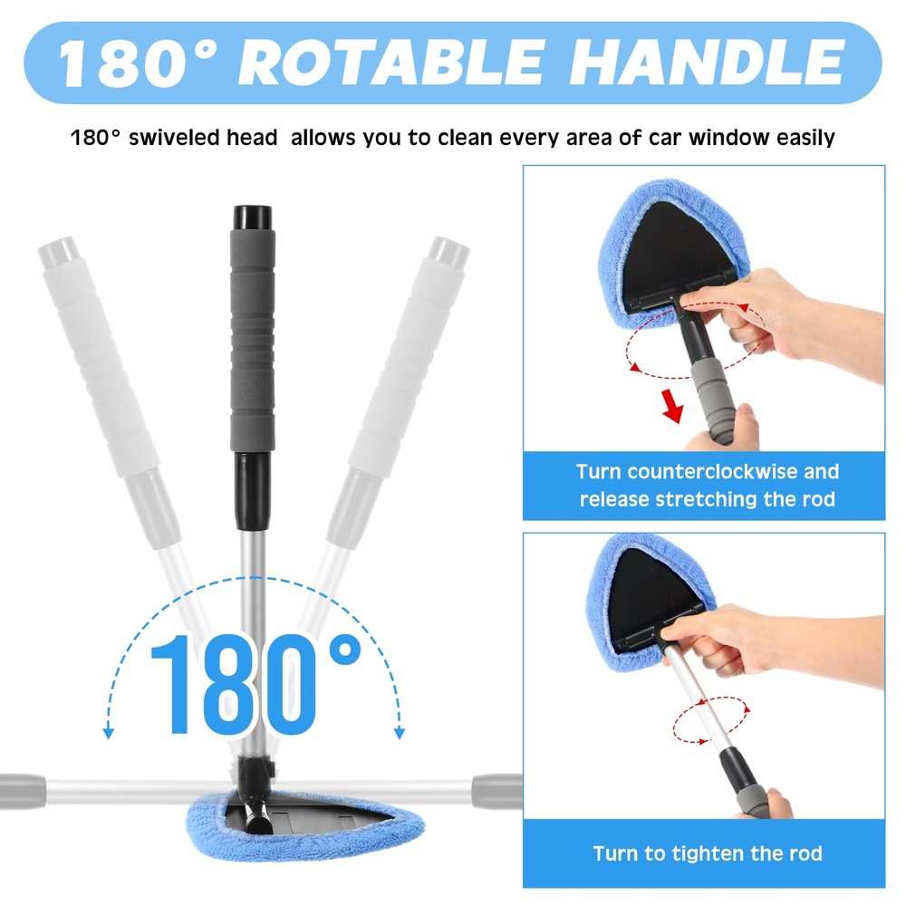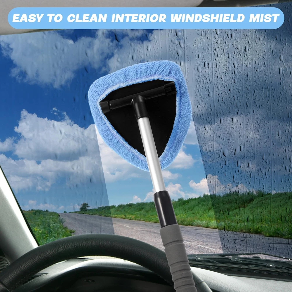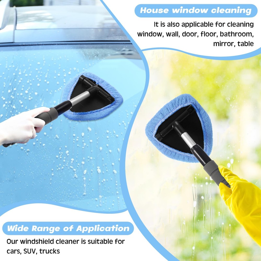 Extendable Windshield Cleaner Tool with Adjustable Triangular Head for Streak-Free Windows