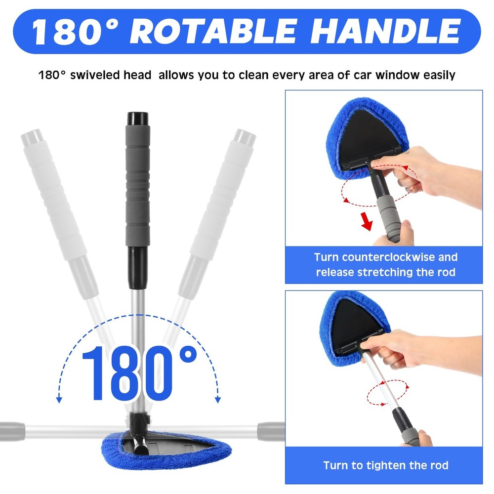 Car Window Cleaner Kit with 4 Microfiber Pads & Extendable Handle