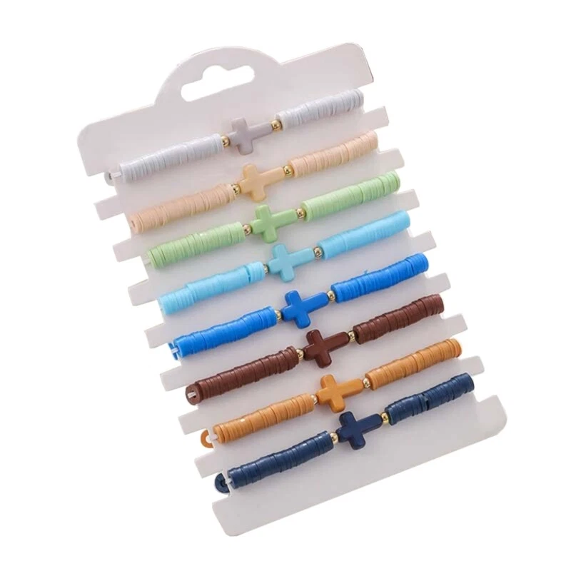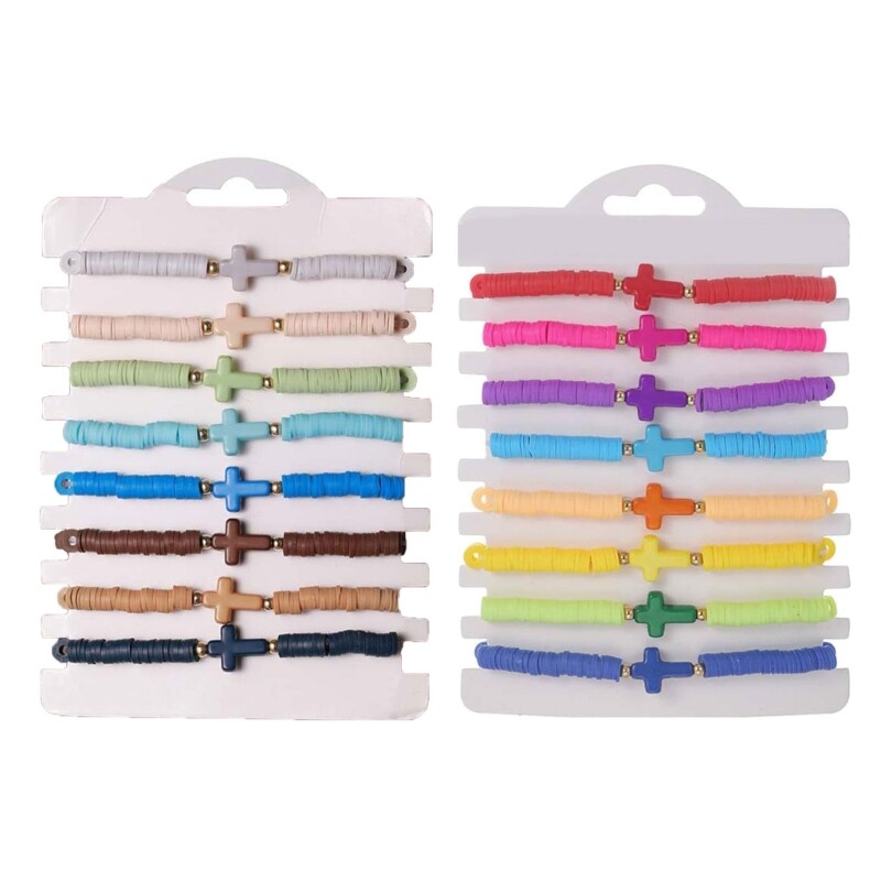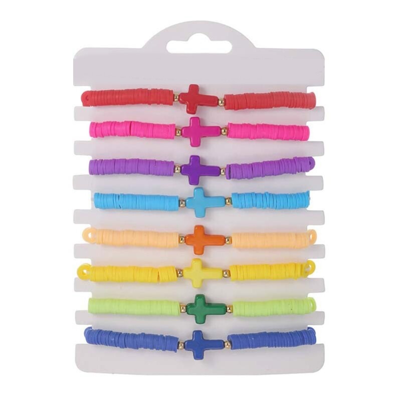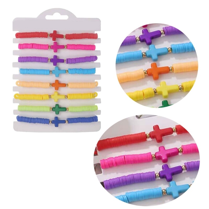 Features: This cross set features adjustable elastic cords, making it suitable for daily wear and various occasions. Made from clay and resin, these bracelets are durable and comfortable to wear. for individuals who appreciate unique and styles, these cross bracelets are for those who want to showcase their beliefs and aesthetic taste. Whether it is a birthday, holiday, party, or wedding, these bracelets can be worn to add a touch of elegance and spirituality to any special occasion. These beautiful cross bracelets make a wonderful yourself, and family, symbolizing love, protections, and Specifications: Clay, Resin Size: Detail Sizes in the Pictures Package Includes: 8x Elastic Bracelets note: Please allow 1-2cm errors due to manual measurement. Due to the difference between different monitors, the picture may not reflect the actual color of the item.