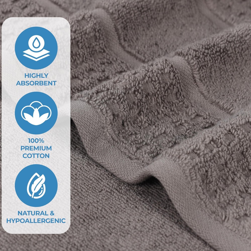 8-Piece Zero Twist Cotton Towel Set with Ribbed Geometric Design – Bathroom Essentials