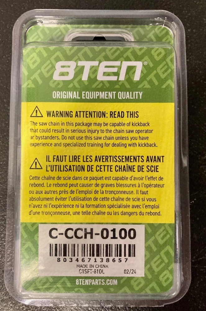 Chain Pitch: 3/8" / 0.375 Inch UPC: 803467138657 Manufacturer Warranty: 810 Days Type: Chain Voltage: N/A Model: 8TEN 810-CCC2322H Country/Region of Manufacture: China Chain Type: Full Chisel Material: N/A Chain Gauge: .050 Inch Chain Length: 24 Inch Item Width: 4.1 Color: Gray Compatible Model: For 600XS Item Length: 6.8 Item Weight: 0.9 MPN: 810-CCC2322H Compatible Brand: For Craftsman, For Poulan, For Jonsered, For Oregon, For McCulloch, For Homelite Custom Bundle: No Chain Drive Links: 81 Assembly Required: No gtin13: 803467138657 Brand: 8Ten Guide Bar Length: 24 in Power Source: Gas Item Height: 1.2 Number in Pack: 1 Compatible Product: Chainsaw