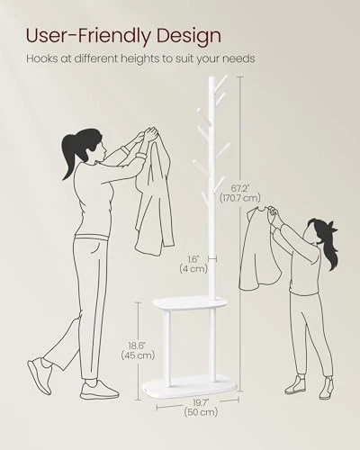 Return Policy Fast Delivery Trusted seller Coat Rack, Free Standing Coat Stand, Hall Coat Tree with 8 Hooks and Storage Shelf, 67.2 Inch Tall, for Coats, Hats, Bags, for Entryway, Hallway, Bedroom, Cloud White URCR040W01 Product Description 【MULTIFUNCTIONAL COAT RACK】With 8 hooks for your coats, hats, and bags, and a handy shelf for sunglasses, wallets, and keys, this coat rack keeps your essentials in one convenient spot, simplifying your daily routine 【SAFE, STABLE, AND STURDY】Rounded hooks protect your clothes from scratches. A large base provides stable and reliable support. Each hook holds up to 8.8 lb, and the shelf holds up to 22 lb, giving you peace of mind that your belongings are secure 【PERFECT HEIGHT, EASY ACCESS】At 67.2" tall, this coat stand makes it simple to reach items on the top hook. The open shelf, just 18.6" from the ground, lets you grab and store your belongings with ease 【ADAPTABLE USE】Blending practical use with aesthetic charm, this freestanding coat rack is the perfect addition to tidy up and beautify your entryway, hallway, bedroom, walk-in closet, or office 【HASSLE-FREE ASSEMBLY】No need to be botd about the assembly. The marked parts and easy-to-follow instructions will help you to set up this hall tree in jig time Shipping Returns Payment Shipping Shipping is FREE to all addresses other than APO/PO boxes in the lower 48 states. All our stock ships from US-based warehouses. Shipped via USPS or UPS (depending on location and package weight) Unless stated otherwise, all orders will ship within 24-72 hours of your payment being processed. Check our feedback to see the great reviews of FAST shipping we offer. Returns Seller does not accept returns Payment We currently accept payment via eBay managed payments only. Once payment is cleared, we will dispatch your shipment within 1-3 business days. Please refer to the "Shipping" tab for more information regarding shipping speed to your destination.