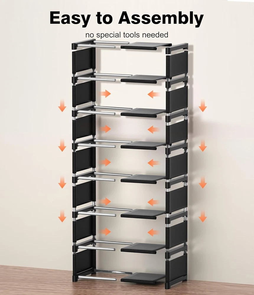 Space Saving Shoe Rack: This narrow shoe rack can maximize vertical space utilization and save floor space.The minimalist frame design makes it easy to move and position in small spaces, fully utilizing compact storage space Flexible Combination: According to the space requirements, it can be vertically stacked into two 4-layer shoe racks, or stacked into one 8-layer shoe rack. You can remove the middle layer to adjust the height, so it can accommodate high boots. You can also DIY a vertical shoe rack according to your own needs Sturdy Material & Dustproof : The tall shoe rack is made of durable non-woven fabric layers, reinforced plastic connectors, and thickened metal tube, with good stability and rust resistance. The Shoe Shelf is easy to clean, w... Happylistings 8-Tier Vertical Shoe Rack Narrow Space Saving Corner Organizer Metal Free Standing Storage Non-Woven Fabric Shelf For Closet Entryway Bedroom Garage-Black Space Saving Shoe Rack: This narrow shoe rack can maximize vertical space utilization and save floor space.The minimalist frame design makes it easy to move and position in small spaces, fully utilizing compact storage space Flexible Combination: According to the space requirements, it can be vertically stacked into two 4-layer shoe racks, or stacked into one 8-layer shoe rack. You can remove the middle layer to adjust the height, so it can accommodate high boots. You can also DIY a vertical shoe rack according to your own needs Sturdy Material & Dustproof : The tall shoe rack is made of durable non-woven fabric layers, reinforced plastic connectors, and thickened metal tube, with good stability and rust resistance. The Shoe Shelf is easy to clean, without letting clutter fall on the shelf below, keeping each shoe clean Multifunctional Shoe Rack: This shoe holder is not only suitable for storing shoes, but can also be used to store handbags, clutter, books, and plants.The compact shoe organizer is perfect for small living spaces such as garages,dormitories,walk-in closets, apartments,balcony,doorway, and living rooms.It simplifies organization, maximizes space, and maintains a tidy environment Easy to Assemble: No tools are required to assemble this shoe rack, just use the provided parts to assemble it by hand. Simply thread the tubes through the non-woven fabric layers, and then insert them into the plastic connectors. Once you assemble these components vertically, you are done Item Specifics Brand Unbranded Type Free Standing Shoe Racks Color Shoerack-black Room Type Entryway, Bedroom, Living Room Number of Shelves 8 Special Feature Sturdy, Durable, Easy Assembly Product Dimensions 9.84"D x 18"W x 33.46"H Style Modern Finish Type Stainless Steel Size 8-Tier Assembly Required Yes Recommended Uses For Product Shoes Item Weight 1.78 Pounds Furniture Finish Metal Tube, Plastic Connector Installation Type Freestanding Item Weight 1.78 pounds #414,948 in Home & Kitchen (See Top 100 in Home & Kitchen) #414,948 in Contact Us 1.Dear customers, we appreciate your business, our aim is to provide Top Level Customer Service,if you are satisfied with our service, please leave us a 5 star positive feedback . 2.If you have any question or concern about your eBay order, please feel free to let us know. We will try our best to reply all questions within 24 hours. However, no answer will be replied during weekends or holidays. Please allow up to 48 hours delay in receiving our response after long weekends or holidays. 3.Please via eBay Message for a solution for resolutions before leaving negative feedback, we strive to providing the greatest service and bringing the highest satisfaction to all of our customers. Shipping 1.We usually ship within 3-5 business days of receiving cleared payment., and we provide Free Shipping for most items. 2.Fast shipping is very important for us. We use multiple fulfilment warehouse around the United States. We only ship to the lower 48 States and do not ship to PO Boxes. 3.Please make sure the correct Ship-To address is entered before checking out. Once the payment is completed, you may not be able to change the shipping address. We shall not be held responsible for any wrong or undeliverable addresses. Returns 1.We provide 14 days return upon the buyer received the item. It must be in good condition and you will undertake the returned shipping cost. 2.We will offer replacement or refund for all DEFECTIVE items (not including damage resulting from accidents / abuse / misuse / improper care), but a photo is needed for our reference beforehand and should be reported to us within 7 days from purchase date. 3.All items are brand new and have been passed the quality check. All are packed in a good condition before item dispatch. Payment We accept PayPal payment,PayPal Credit,Credit card or debit card and so on. Payment should be completed within 4 (Four) days of auction closing. Or unpaid dispute will be filed for closing auction. We will leave a positive feedback immediately after payment is received. We appreciate a positive feedback as much as you do. If for some reason there is any issue with the purchase, please contact us prior to leaving feedback, we will be glad to work together and provide a satisfying solution. Happylistings DESCRIPTION PAYMENT SHIPPING RETURN POLICY CONTACT US Help & Info Payment Policy Shipping Policy Return Policy FAQ About Us 8-Tier Vertical Shoe Rack Narrow Space Saving Corner Organizer Metal Free Standing Storage Non-Woven Fabric Shelf For Closet Entryway Bedroom Garage-Black Space Saving Shoe Rack: This narrow shoe rack can maximize vertical space utilization and save floor space.The minimalist frame design makes it easy to move and position in small spaces, fully utilizing compact storage space Flexible Combination: According to the space requirements, it can be vertically stacked into two 4-layer shoe racks, or stacked into one 8-layer shoe rack. You can remove the middle layer to adjust the height, so it can accommodate high