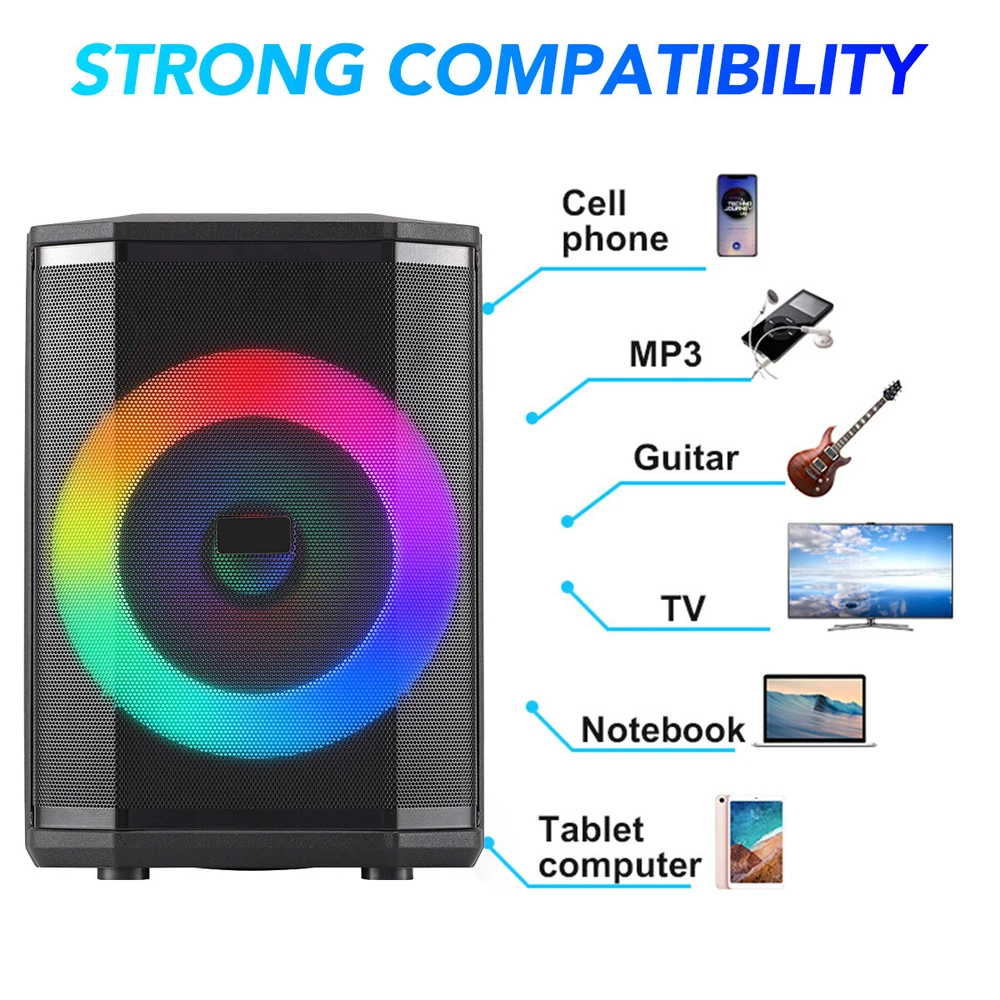 8"Woofer Portable Bluetooth Party Speaker Heavy Bass Sound 3 Mic TWS FM Tiltable Features: 【TILTABLE Design】: Its innovative tilt function delivers optimized sound,easily adjust the angle of the speaker for improved acoustics and a personalized listening experience. 【PARTY Mode】 :Get the party started with a sound-activated LED ring light, feel the thump of the 8" woofer and the sparkle of the piezoelectric tweeter, ensuring your parties never miss a beat,adding an exciting visual element to your audio experience. 【WAVESYNC Technology】: WaveSync Technology ensures seamless audio connectivity,boost your audio experience by pairing two(E-B8 ) speakers for an even more powerful, high-quality sound output. 【CUSTOMIZE Audio Settings】: With volume, treble, and bass controls, dual channel sound board, and various input options including Bluetooth, USB, TF, FM, auxiliary, and a microphone jack with volume and echo controls. You have the ability to fine-tune your audio to your exact preferences. 【Powerful Performance 】 Experience a massive 9500W Peak music output with the E-B8 , all powered by a robust built-in 3000mAh battery to keep the party going without missing a beat.Includes 1 Wireless + 2 Wired Microphones Specification: Product Size: 35cm*28cm*25cm Material: ABS Color: Black Speaker: 8 inch *1 Bluetooth Name: E-B8 Connection distance: <10m Power: 9500W EQ mode: jazz, rock, pop, classical, vocals Input voltage: AC100V-240V Output: DC9V 1.5A Red light when charging, off when fully charged Fully charged about 6-8 hours, maximum volume range about 1.5h Functions: BT connection, TF card, FM, U disk, AUX mode, TWS dual-station pair connection Package Included: 8” Speaker with Tiltable QFX (E-B8)*1 Remote Control*1 Wireless Microphone*1 Wired Microphone*2 Wired Microphone Cable*2 AC Adaptor*1 English manual *1 Shipping Payment Return & Refund policy Feedback Customer Support - Contact Shipping FREE SAME BUSINESS DAY MONDAY- FRIDAY SHIPPING FROM USA. All orders and payments received before 4PM EST (1PM PST) will be shipped the same business day. All other orders within 1 business day. No shipping on Weekends or US Public Holidays. No responsibility for any custom duty Shipping information will be updated when available. Payment We accept payment via PayPal. Use PayPal at checkout to pay with credit or debit. Immediate payment is required. Shipping will be arranged within 1 business day once payment is cleared. Return & Refund policy 1.We stand behind our items and offer 60 days warranty. All items are in new and working condition unless specified otherwise elsewhere in the description. 2.All Returns - defective or otherwise - MUST BE PREAUTHORIZED to guarantee refund or exchange. Please contact us to get an authorization and return address. 3.Buyer agrees to pay for the cost of re-shipment for undeliverable or wrong addresses. 4.Buyer is responsible for Return Postage as well as a 20% restocking fee if return/replacement is not a result of our mistake such as wrong item. 5.Replacement or Refund will be made upon receipt of the returned item. Please include tracking number so we can process ASAP. If you do not wish to wait for a replacement, please repurchase the item. 6.ALL REFUNDS will be processed via PayPal. Please double check via PayPal history and transaction for confirmation. PayPal will send it back to whatever you used to pay within 3-5 days. Feedback We strive to provide the best products and services. If anything about your transaction did not meet expectations, please CONTACT US and give us the opportunity to make things right. We are always here to help. Customer Support - Contact Please do not hesitate to CONTACT US. You can message 24/7 on eBay for all questions and inquiries. We will get back to you within 1-2 business days at the latest.