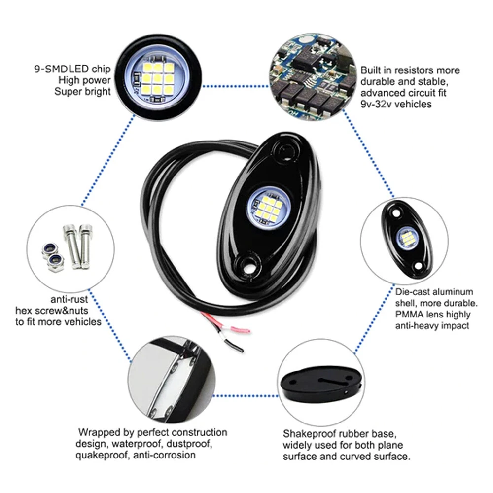 Specification: Suitable models: Universal, including cars, SUVs, JEEP, truck, etc Connection mode: red wire to the positive pole, black wire to the negative pole Placement on vehicle:Under,Fender,Wheel eyebrow, grill,wheel arch etc. LED Quantity: 9 LED Per Light Voltage: DC 10V-14V Material: Diecast Aluminum Housing Color: White Service life: 50000+ hours Waterproof:IP68 Housing color:Black Features: *Brilliant brightless: High intensity chip to light up the entire under car. *Wateproof design: High waterproof rating (IP68)with long service life. 8X White LED Rock Lights Underbody Trail Rig Glow Lamp Offroad SUV Pickup Truck Specification: Suitable models: Universal, including cars, SUVs, JEEP, truck, etc Connection mode: red wire to the positive pole, black wire to the negative pole Placement on vehicle:Under,Fender,Wheel eyebrow, grill,wheel arch etc. LED Quantity: 9 LED Per Light Voltage: DC 10V-14V Material: Diecast Aluminum Housing Color: White Service life: 50000+ hours Waterproof:IP68 Housing color:Black Features: *Brilliant brightless: High intensity chip to light up the entire under car. *Wateproof design: High waterproof rating (IP68)with long service life. *Universal Application: This LED rock lights widely fit for JEEP, Rock crawlers, rock bouncers, off-road, truck, UTV, ATV, SUV, RV, boat, golf cart, tow vehicles, Camp trailer trailers, trikes, street rods, drifters, low riders, racers, etc *DIY Style: Mini design makes the rock lights easy to mount anywhere you want. Perfect for car lights, off-road lights, truck bed lights, van lights, camp trailer lights, tow vehicles lights, boat lights, etc. Packaging included: 8 PCS LED Rock Lights 1 SET Installation Kit Item Specifics Features CANbus Compatible Bulb Fitment Code C5W Manufacturer Warranty One Year Warranty Application 2 for trikes, street rods, drifters, low riders, racers, etc. MPN Does Not Apply Lifetime 50,000 Hours OE/OEM Part Number AUXITOLED Voltage DC 10V~14V Fitment Type Performance/Custom Performance Part Yes Lighting Technology LED Suitable For Accessory Light Underbody Light Size 2 Inch Lumens 6000 lm Display title in Boldface off Material Diecast Aluminum Housing To Fit underbody underglow wheel well decoration lights Interchange Part Number Widely used under vehicles, interior light, Grill lights, card li Color Temperature 6500K Light Color White Number of Bulbs 8 Placement on Vehicle Under, Fender, Wheel Eyebrow, Grill, Wheel Arch, Mudgua, Front, R Wattage 9W Housing Color Black Application for JEEP, Rock crawlers, rock bouncers, off-road, truck,UTV, ATV Waterproof Rate IP67 Application 1 for SUV, RV, boat, golf cart, tow vehicles, Camp trailer trailers Brand AUXITO Bulb Life Hours Up to 30,000 Hours Type Rock Light Bulb Life Hours Up to 30,000 Hours Payment 1. We can only accept payment from PayPal. 2. Please keep the consistency of Paypal address and ebay address. Shipping 1. All items will be shipped in 12 hours after receiving your payment . 2. We ship this item to US only via USPS first class mail. It usually takes 3-5 working days to deliver. Returns 1. We offer 30 days return policy. 2. Please contact us within 30 days from the date you receive your package if you have any questions with the products . 3. Refund will be sent after we got your returned package. 4. All returned items should be in the original packaging with tracking number. Contact Us We work from Monday - Saturday 9:00AM - 6:00PM, but we will reply once we get your message. There will be delay on response if you send message or E-Mail on Sunday. DESCRIPTION PAYMENT SHIPPING RETURN POLICY CONTACT US Shop Category Store Home Other Hot Item Rear Left or Right Outside Door Handle for 2010-2016 Toyota 4Runner Lexus GX460 USD 14.24 Set of Delco 4 AC Oxygen O2 for Sensor 2003-2005 Cadillac Chevrolet GMC V8 5.3L USD 50.99 Door Latch Cables LH+RH Front For 2007-2013 Chevy Silverado 1500 2500 HD 3500 HD USD 17.99 Universal Car Windshield Wiper Squirter Washer Nozzle Spray Jet Kit Fluid Hose T USD 9.99 For 2002-2008 Dodge Chrysler Stereo Car Radio Wiring Harness Adapter USD 11.59 New List Item For 2014 2015 Chevy Silverado 1500 Left Right Black Headlights W/ Projector EPU USD 205.19 Steering Wheel For Trim Cover Dodge Challenger Durango/GrandCherokee Charger 14+ USD 12.34 Car Stereo Radio Wiring Harness Adapter for Buick Cadillac Chevrolet GMC Pontiac USD 10.44 Valve Cover set For HONDA Gasket CIVIC VX EX Si DEL SOL 1992-1995 1.6L SOHC L4 USD 12.34 3x Milliwave Radar Mounting Alignment Clip For Civic CR-V Accord 36806-TLA-A01 USD 9.49 Excellent Delivery 8X White LED Rock Lights Underbody Trail Rig Glow Lamp Offroad SUV Pickup Truck Specification: Suitable models: Universal, including cars, SUVs, JEEP, truck, etc Connection mode: red wire to the positive pole, black wire to the negative pole Placement on vehicle:Under,Fender,Wheel eyebrow, grill,wheel arch etc. LED Quantity: 9 LED Per Light Voltage: DC 10V-14V Material: Diecast Aluminum Housing Color: White Service life: 50000+ hours Waterproof:IP68 Housing color:Black Features: *Brilliant brightless: High intensity chip to light up the entire under car. *Wateproof design: High waterproof rating (IP68)with long service life. *Universal Application: This LED rock lights widely fit for JEEP, Rock crawlers, rock bouncers, off-road, truck, UTV, ATV, SUV, RV, boat, golf cart, tow vehicles, Camp trailer trailers, trikes, street rods, drifters, low riders, racers, etc *DIY Style: Mini design makes the rock lights easy to mount anywhere you want. Perfect for car lights, off-road lights, truck bed lights, van lights, camp trailer lights, tow vehicles lights, boat lights, etc. Packaging included: 8 PCS LED Rock Lights 1 SET Installation Kit Payment Shipping Returns Contact Us 1. We can only accept payment from PayPal. 2. Please keep the consistency of Paypal address and ebay address. 1. All items will be shipped in 12 hours after receiving your payment . 2. We ship this item to US only via USPS first cla