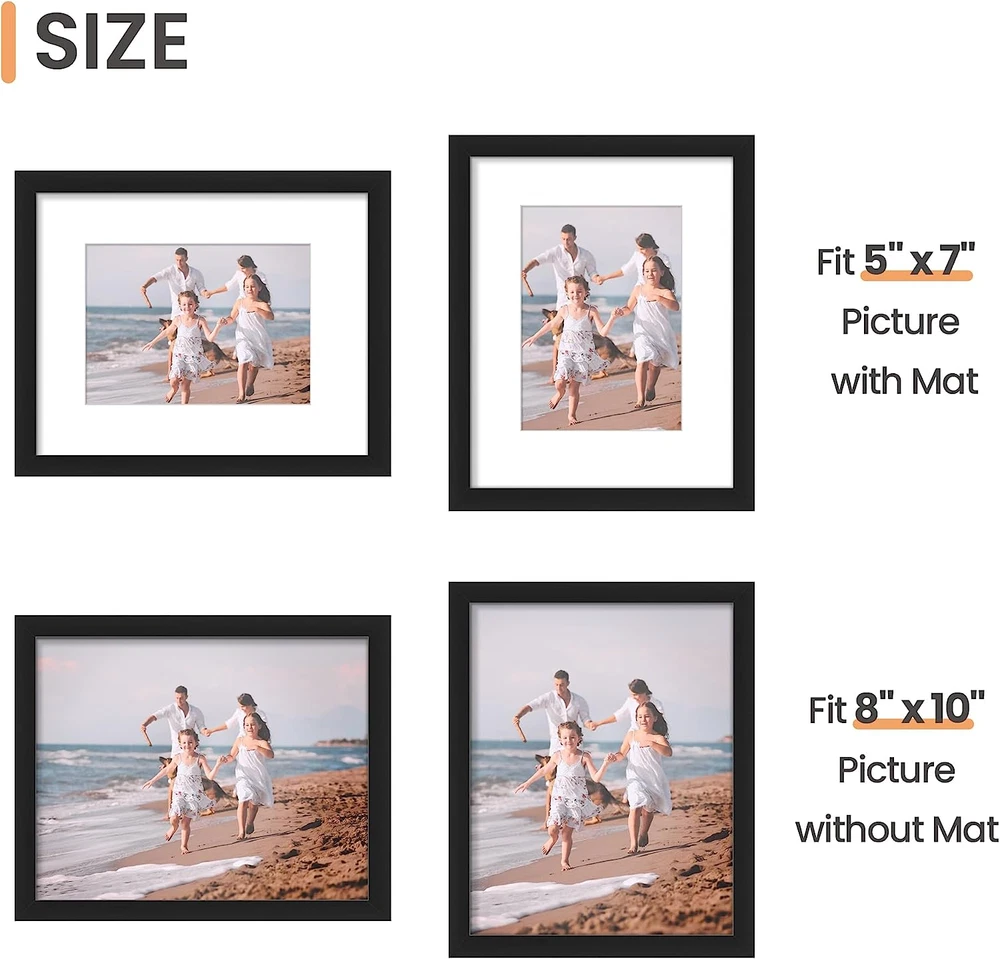 CLASSIC & DURABLE: With sturdy frame, high definition cover, safe packing, upsimples picture frame will protect your photo and give a clear view. DOUBLE SIZE DESIGN: Black 8x10 inch picture frame perfects for Pictures 5x7 with Mat or 8x10 Without Mat. EASY MOUNTING: Spring type action to remove the backing, can be hung horizontally or vertically. DISPLAY SIZE: For better aesthetics, the display will be 0.5 inches smaller than the photo With Mat or 0.4 inches smaller than the photo Without Mat. INTACT PARTS AND PACKING: Protective Packaging let you don't have to worry about receiving damaged products Product Description At upsimples, you can find a range of gallery wall frames to fit modern, transitional, traditional and vintage-inspired spaces. About 8x10 Size Explanations Create an impactful display with art and photos from your favorite moments. Put On Beautiful Photos And Preserve Unforgettable Memories. Gallery Wall Frames from upsimples Add to Cart Add to Cart Add to Cart Add to Cart Add to Cart Add to Cart Add to Cart Customer Reviews 4.6 out of 5 stars 18,318 4.6 out of 5 stars 15,344 4.6 out of 5 stars 19,364 4.5 out of 5 stars 64,100 4.6 out of 5 stars 22,814 4.2 out of 5 stars 2,254 4.6 out of 5 stars 1,315 Price $6.29 $ 6 . 29 $12.99 $ 12 . 99 $12.99 $ 12 . 99 $17.49 $ 17 . 49 $19.99 $ 19 . 99 $14.99 $ 14 . 99 $9.99 $ 9 . 99 Quantity 1 Pack 2 Pack 3 Pack 5 Pack 10 Pack 3 Pack 3 Pack More Size Meet Choice 4x6 ~ 20x24 8x10 ~ 18x24 4x6 ~ 16x16 8x10 ~ 18x24 4x6 ~ 12x16 11x14 ~ 27x40 4x6 ~ 11x14 Frame Material Plastic Plastic Plastic Plastic Plastic Plastic Plastic Cover Material Plastic Plastic HD Glass Plastic HD Glass Plastic HD Glass Style Classic, Simple Classic, Simple Modern, Classic Classic, Simple Modern, Classic Stylish Stylish