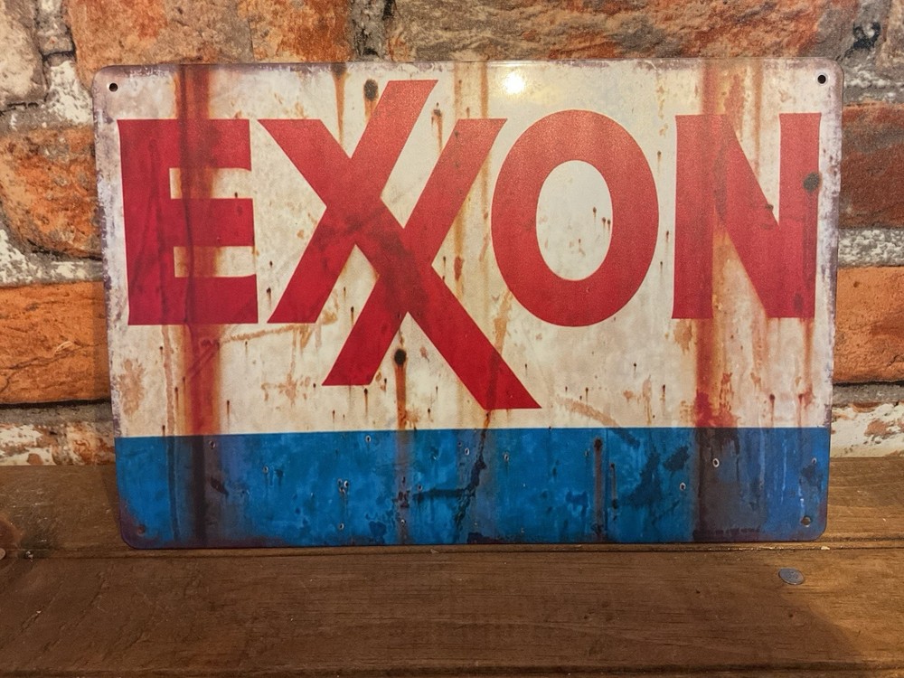 Welcome to hammering hanks garage where everything makes sense... Discover the perfect addition to your man cave or garage with this vintage-style 8"X12" Exxon sign, boasting a unique "Bleeding Rust" patina finish that exudes a rustic charm. The sign's material and design reflect a penchant for nostalgia and durability, making it an ideal decorative piece for those who appreciate the allure of vintage aesthetics. Crafted with an eye for authenticity, the sign's intricate details capture the essence of a bygone era. Its robust construction ensures it stands the test of time as a statement piece in your space. Whether it's for a collector or a casual fan of humor, this sign is sure to be a conversation starter. We offer free same day shipping. Grab yours today!