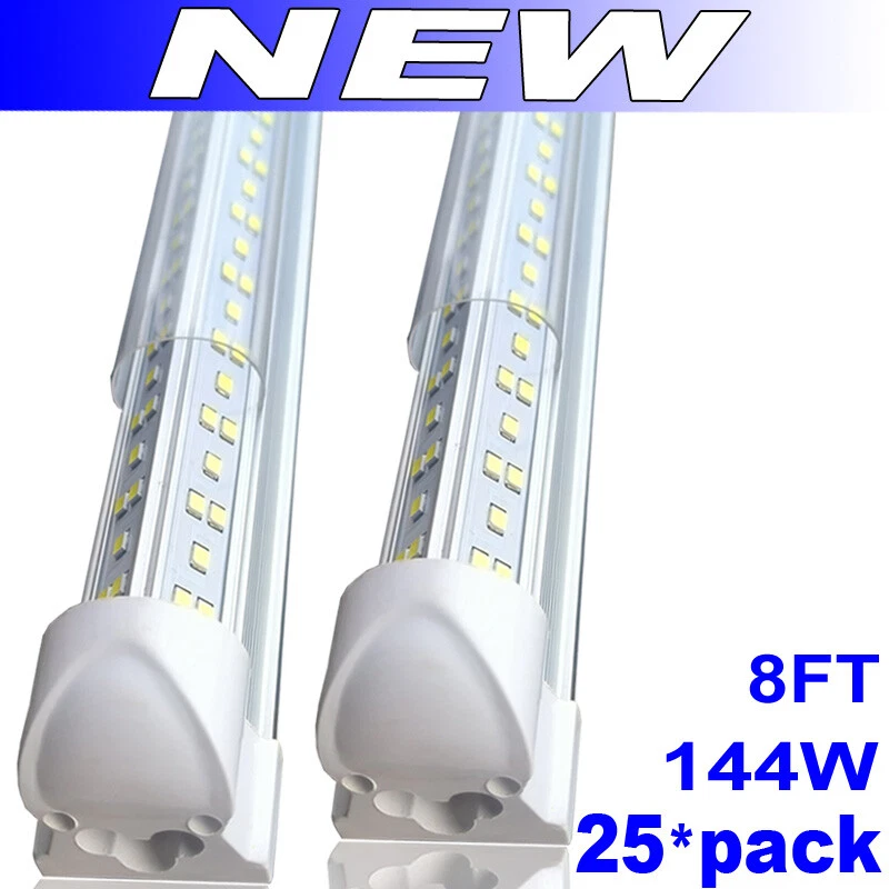 FAST DELIVERY - Ship from New Jersey or Los Angeles Warehouse via FedEx , 3-7 Days Delivered Your Door . SCIENTIFIC DESIGN - 8Ft LED Shop Lights Fixture is Made of 6500K Cold White SMD2835 LED Chip ,Plastic Clear Cover , Aluminum Bracket Housing ,and AC85-277V Constant Current Driver . It can work in -68F to 120F Temperature Conditions EASY INSTALLATION - The Integrated Tube Fixture Can be Install on Wall or Ceiling ,Easily Replace Traditional Fluorescent Tube Bulb . Plug and Play , Free Accessories (Power Cords, Connector , Extension Cords , Clip and Screw ) Come with Tube Lights Together WIDE APPLICATION - Linkable 8Ft Bulbs Widely Used in Garage Ceiling , Barbershop , Schools, Hospitals Basement , Factory Warehouses , Supermarkets Cooler Door , Offices, Shops,Hotels, etc 8ft LED Shop Light 144W 4 Row 96 Inch Cooler Door Freezer LED Tube Fixture 25PC FAST DELIVERY - Ship from New Jersey or Los Angeles Warehouse via FedEx , 3-7 Days Delivered Your Door . SCIENTIFIC DESIGN - 8Ft LED Shop Lights Fixture is Made of 6500K Cold White SMD2835 LED Chip ,Plastic Clear Cover , Aluminum Bracket Housing ,and AC85-277V Constant Current Driver . It can work in -68F to 120F Temperature Conditions EASY INSTALLATION - The Integrated Tube Fixture Can be Install on Wall or Ceiling ,Easily Replace Traditional Fluorescent Tube Bulb . Plug and Play , Free Accessories (Power Cords, Connector , Extension Cords , Clip and Screw ) Come with Tube Lights Together WIDE APPLICATION - Linkable 8Ft Bulbs Widely Used in Garage Ceiling , Barbershop , Schools, Hospitals Basement , Factory Warehouses , Supermarkets Cooler Door , Offices, Shops,Hotels, etc