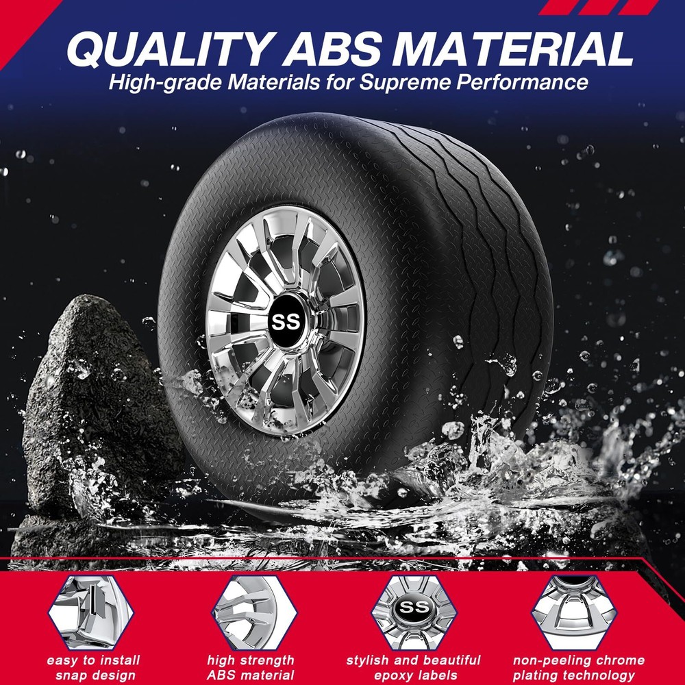 Golf Cart SS Wheel Covers, Golf Cart Hub Caps for Club Car EZGO Yamaha and Most Golf Carts, 6-Spoke Design, 8 Inch Golf Cart Wheel Hubcaps (Set of 4), Snap-on Installation, Not Fit EZGO RXV [Suitable Models]: Golf cart wheel covers hub caps compatible with EZGO Club Car YAMAHA (except EZGO RXV), only fit 8 Inches wheels [Consummate Craft]: Golf cart stylish wheel covers hub caps take chrome technology instead of spray paint treatment, scratch-resistant, 6-spoke design refresh your golf cart’s appearance, show off your personality [Quality Material]: Our golf cart wheel hubcaps are made of high quality and durable ABS material, using curing treatment with scratch-resistant, high gloss and long service life, exquisite workmanship brings ultimate enjoyment [Easy Installation]: Golf cart wheel cover hubcaps is easy to install and remove, all you need to do is click it into the right place, no need to bend the clips [Package Include]: Golf cart wheel covers package include 4×golf cart 8 Inches wheel hubcaps [Post-sale Service]: If you have any questions, our professional customer service team will respond promptly within 24 hours, devoted to provide perfect post-sale service Shipping We offer FREE shipping on all orders! We ship within Three business days of payment, usually sooner. We use a selection of shipping services such as UPS, FedEx, USPS etc. We only ship to the lower 48 states, no APO/FPO addresses or PO Boxes allowed. Local pickups and combined shipping options are not provided at this time. Return You can return a product for up to 30 days from the date you purchased it. Any product you return must be in the same condition you received it and in the original packaging. Please keep the receipt. Payment We accept payment by any of the following methods: PayPal Please pay as soon as possible after winning an auction, as that will allow us to post your item to you sooner! Feedback Customer satisfaction is very important to us. If you have any problem with your order, please contact us and we will do our best to make you satisfied. Contact Us If you have any queries, please contact us via ebay. We usually respond within 24 hours on weekdays. Please visit our eBay store to check out other items for sale! Thank you for shopping at our store.