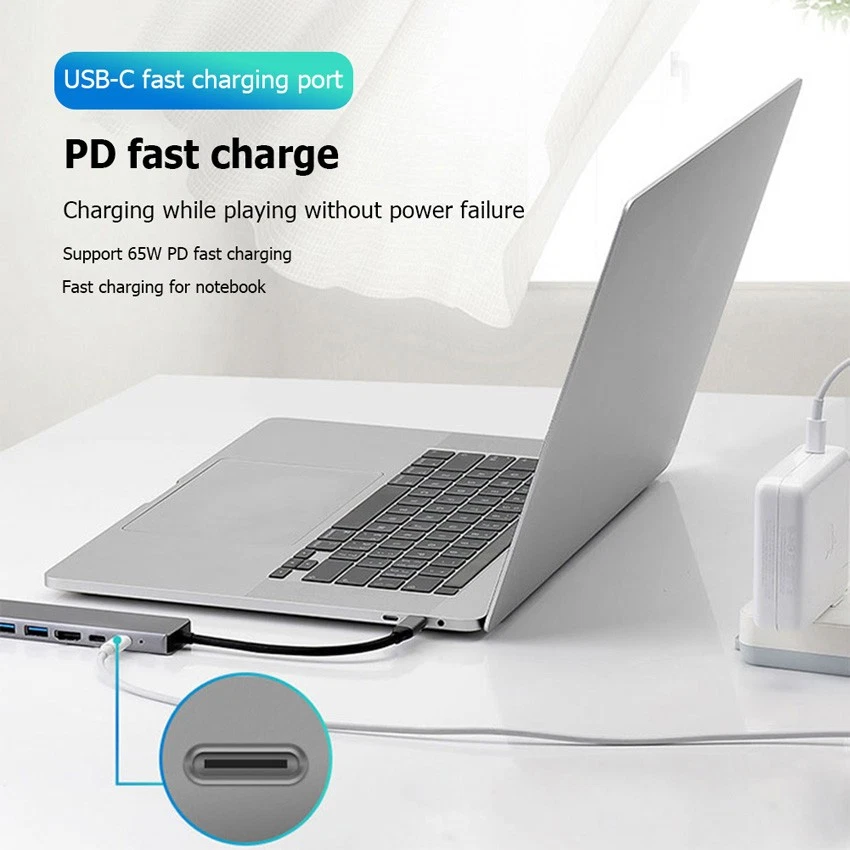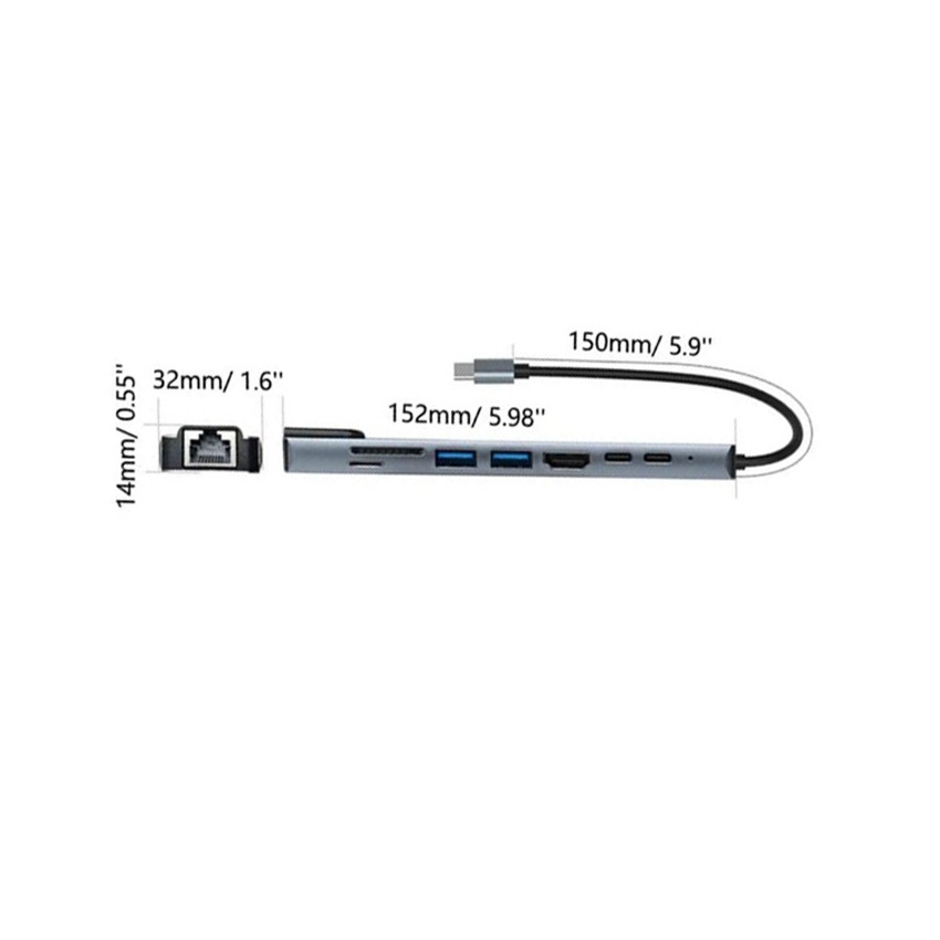 Note: Only one HUB, other items are not included Feature: 1.8 in 1 USB C Hub:USB C Multiport Adapter meets all your functions. Features SuperSpeed USB 2.0, USB3.0 ports,card adapter and 65W USB C PD fast charging 2.Fast Charge Ultra Data Transfer:USB C adapter, 65W PD fast charge, fully charge your Type C laptop while using all other functions of the hub. HD fast transmission. 3.Portable:The docking station hub has a delicate and compact design, while having the power and functions of a full-size docking station. 4.Modern Design and Strong Compatibility:Aluminum alloy material avoids impact damage, accelerates heat dissipation, and provides greater protection for laptop docking stations and other devices. The Type-C multi-port hub saves you the hassle of repeatedly plugging and unplugging, and expands your laptop's capabilities on the go. Small and lightweight, it is very convenient for work, travel or business trips. Elegant colors and nice looks are suitable for your laptop. 5.What You Will Get:We are very confident in the long-lasting performance of our products, and PretiHom is committed to providing high-quality products, services and support. We strive to exceed customer expectations and guarantee a response within 24 hours, please feel free to contact us with any questions. Detail : Line length: about 15cm/5.91inch Product material: aluminum alloy HDMI-Compatible: 4K 30HZ backward compatible with 1080P, 720P, etc. USB2.0*1 USB3.0*1 USB interface can ensure that you can connect USB devices such as hard disk, printer, U disk, mouse and keyboard. USB supports up to 480M PD charging: supports up to 65W fast charging, you can safely charge the notebook through it, allowing you to enjoy the video without worrying about the power supply. type C female: 5V 500mA~900mA SD/TF: usb 2.0 RJ45 network port: Fast Ethernet port