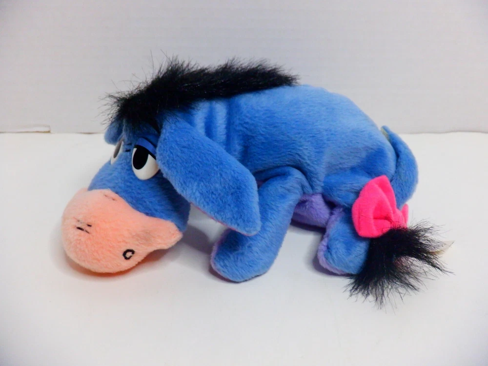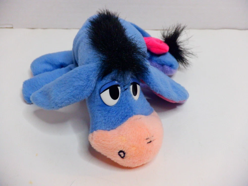 You are bidding on a 8" and 11" plush Eeyore by Mattel Arcotoys. The smaller Beanie Eeyore has a detachable tail. Both items are in very good condition.