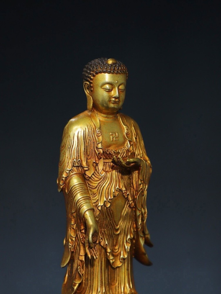 Size: Height: 20cm Wide: 8cm weight:0.88kg Material: bronze gilt NOTE: Withno wood stand!!!! Condition: Good condition Origin: China