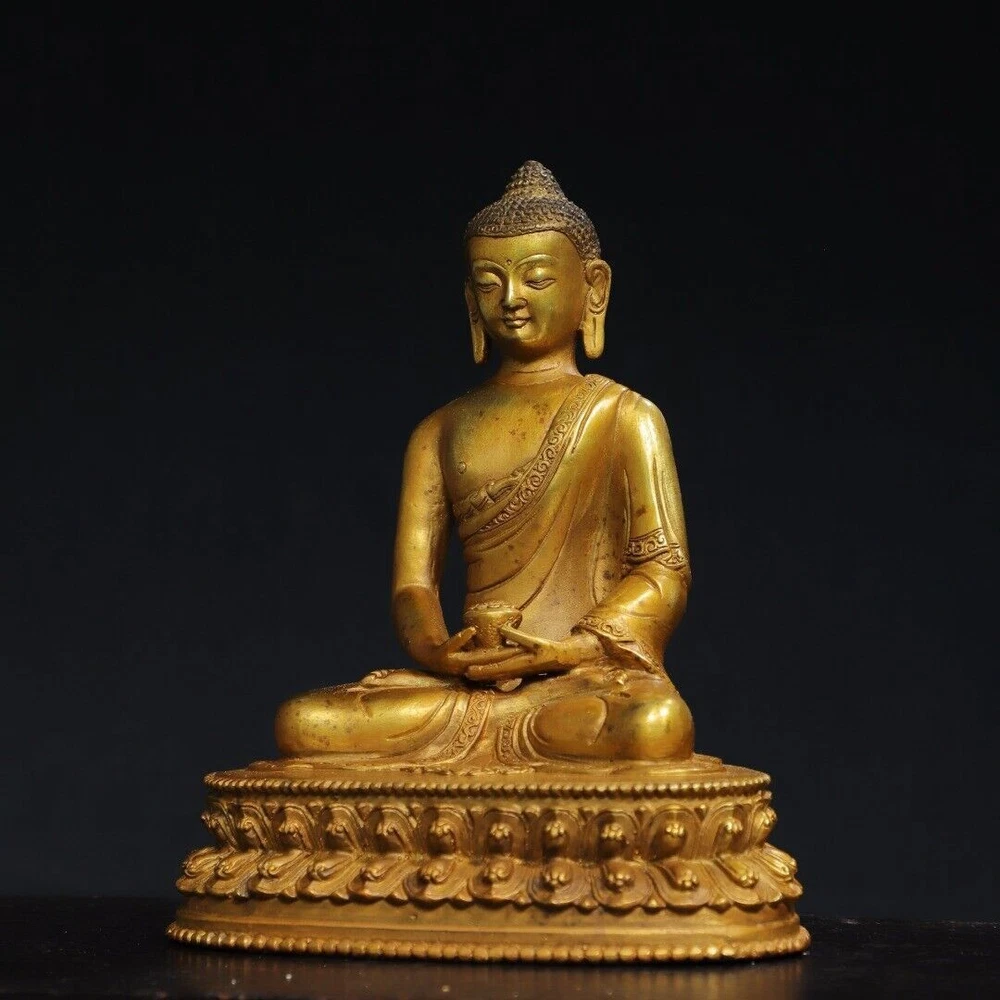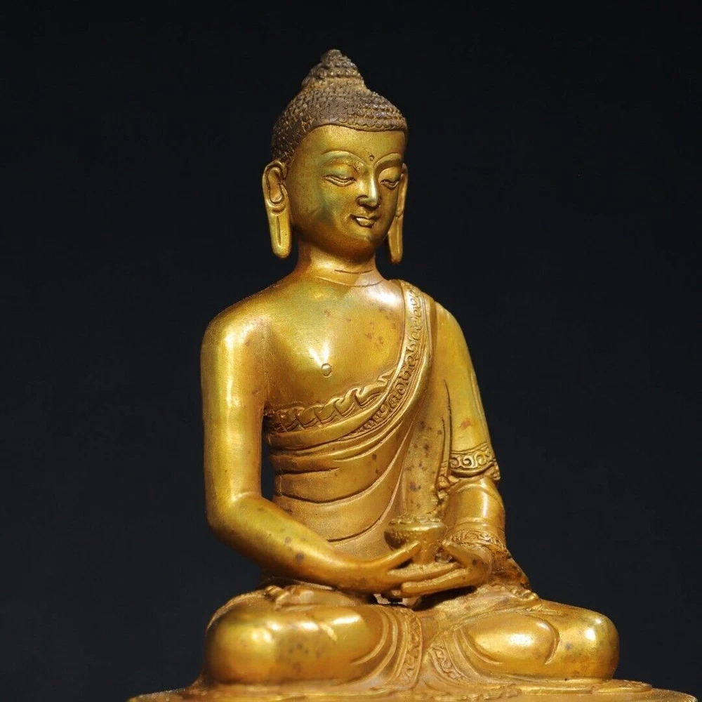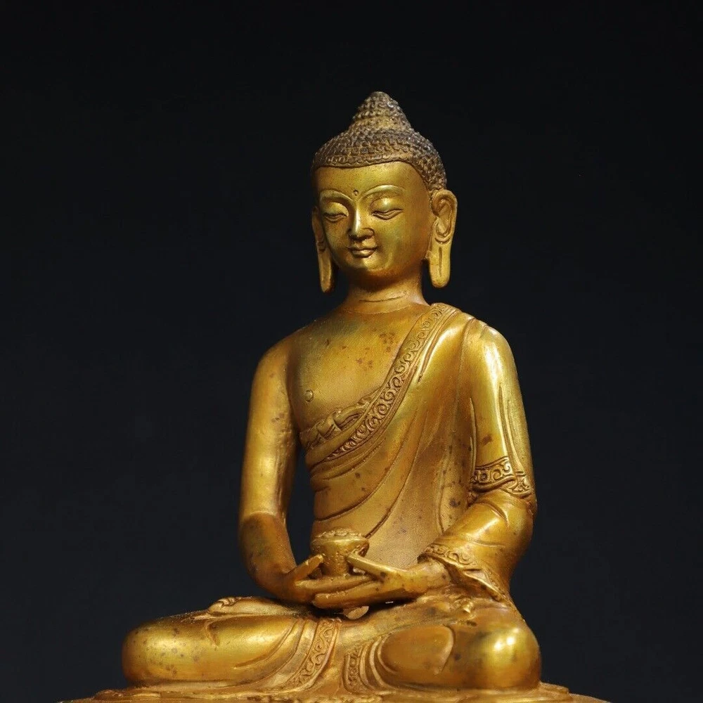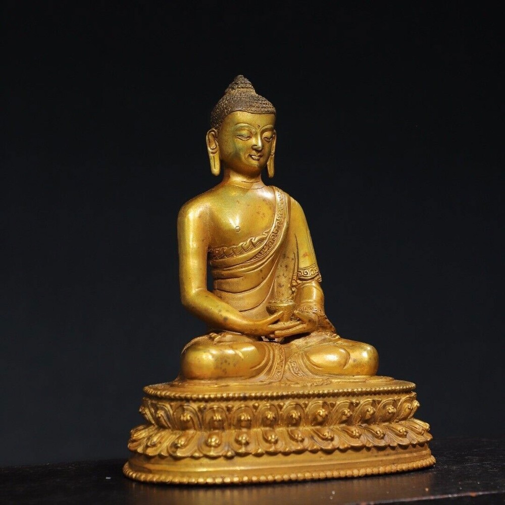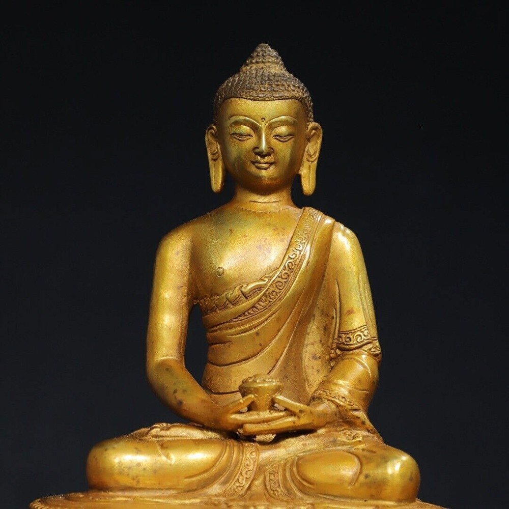$ 102.016.3 Antique Tibetan Bronze Gilt Shakyamuni Buddha Temple Statue