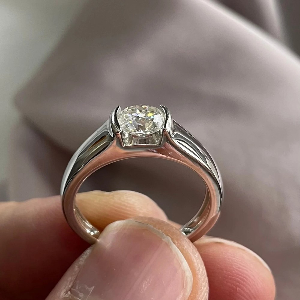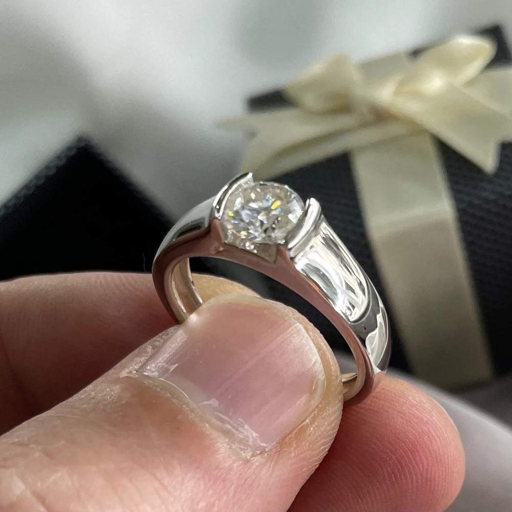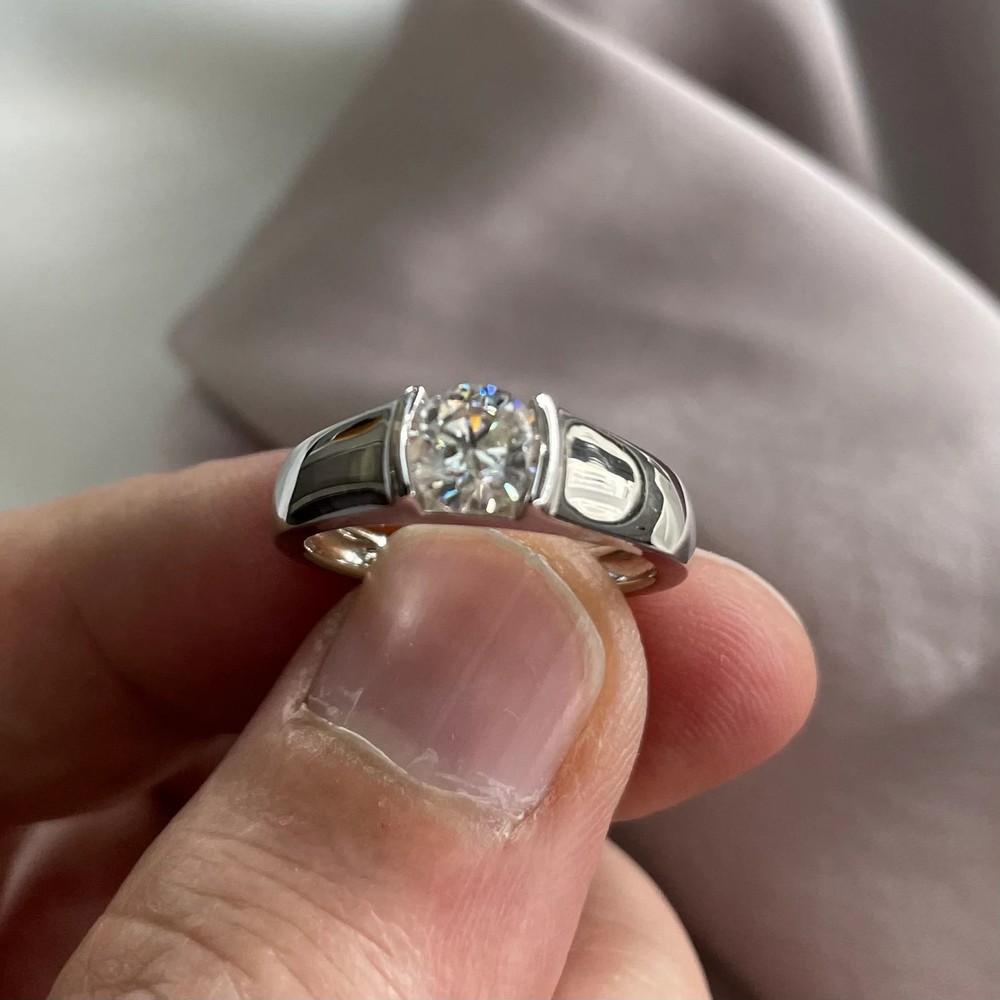 $ 67.322.04Ct VVS1 Round Brown Moissanite Silver Men's Dome Bezel Ring