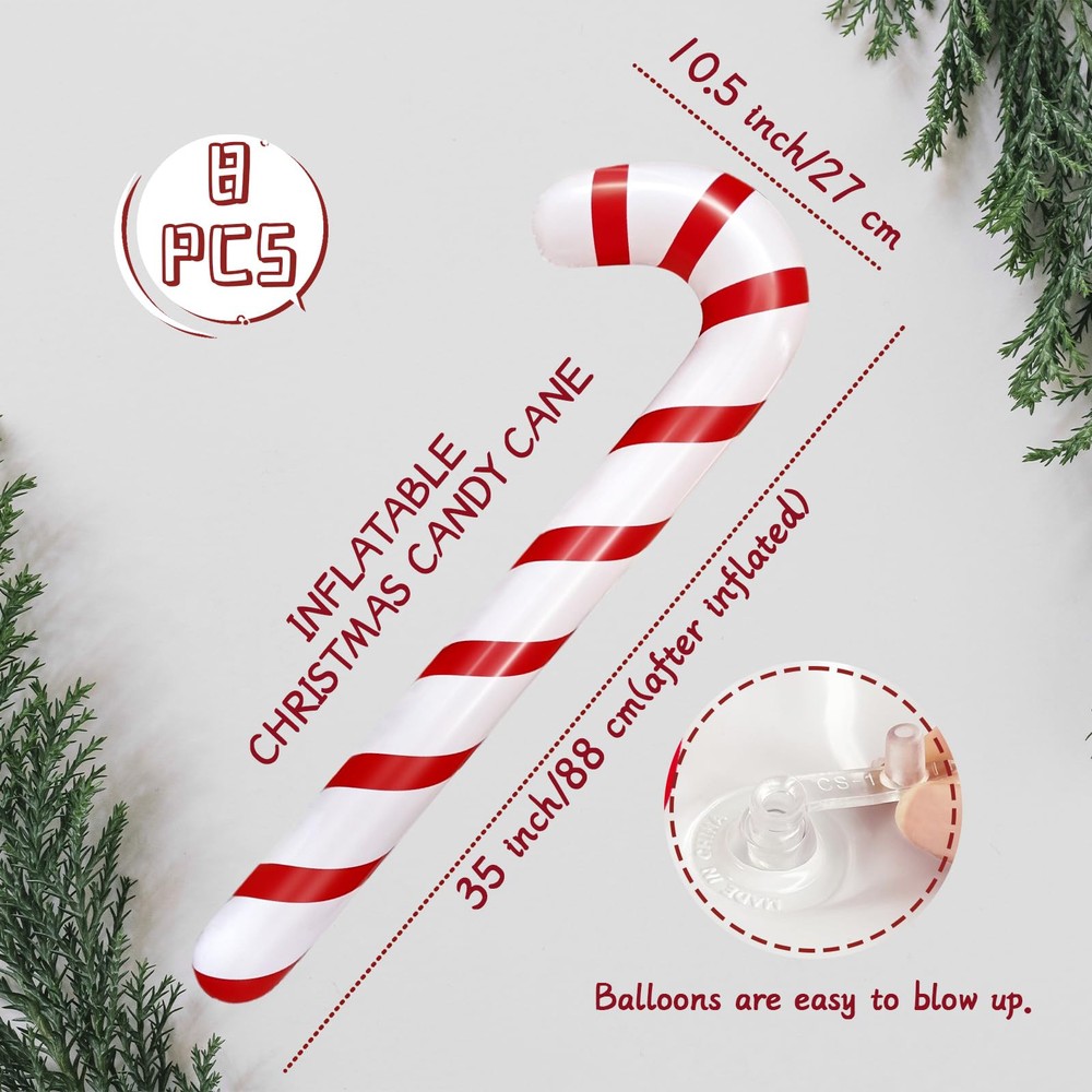 These inflatable candy canes are a fantastic addition to holiday decor! At 35 inches tall, they make a bold statement both indoors and outdoors. The thick PVC material feels durable and holds air well, staying inflated for days. I love the classic red-and-white design—it instantly brightens up any space. Setting them up was quick, and they’re lightweight enough to move around easily. Perfect for creating festive cheer without the hassle of heavy decorations. Great value for 8 pieces—highly recommend!
