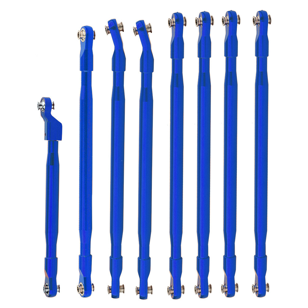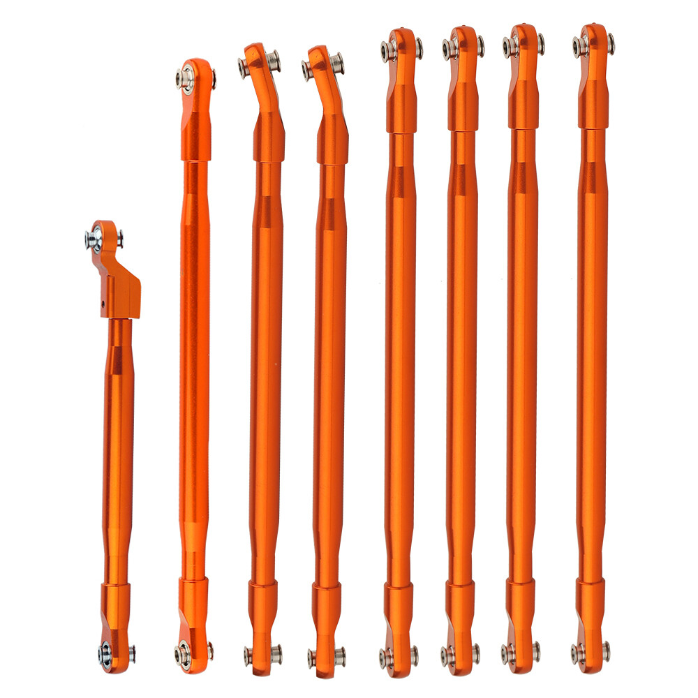 Features: The front suspension has been optimized to reduce bump steer, while the rear four-link reduces torque twist. Aluminum alloy suspension links set. Compatible with Axial SCX6 JLU Wrangler. Provide stronger support and tension. Novel appearance and exquisite workmanship. Specifications: Compatibility: Axial SCX6 Link material: Aluminum alloy Color: Black/Blue/Orange/Red/Silver Quantity: 8pcs/set Weight: about 350g Package Included: 1 Set * SCX6 Links Set