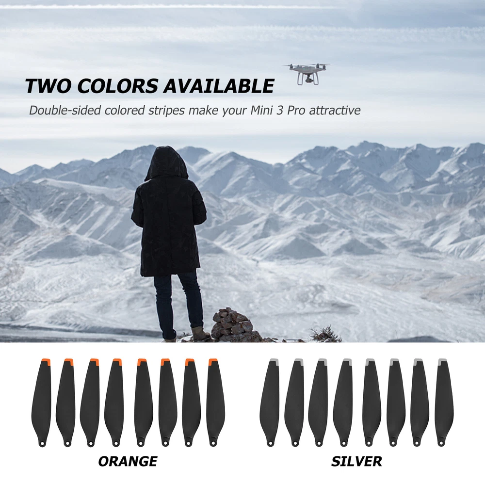 Store Home Promotion Hot Item Add to Fav Contact us Feedback New arrival travelstylespot^-^ Merry Christmas Home & Garden Crafts Clothing, Shoes, Accessories Baby Sporting Goods Jewellery & Watches Computers/Tablets & Networking Vehicle Parts & Accessories Health & Beauty Phones & Accessories Pet Supplies Industrial Toys, Hobbies Cameras Electronics Musical Instruments Video Games & Consoles Home Entertainment Home Appliances Business Collectables Dolls, Bears Prodcution Description : For DJI Mini 3 Pro 8pcs Propellers Drone Replacement Low-Noise Quick-Release Blades Props for Mini 3 Pro Drone Accessories Feature: Double-sided colorful stripes for Mini 3 Pro Small size, flexible and strong, easy to fly Easy to install and easy to use Specification: Material: PC Applicable models: Suitable for DJI Mini 3 Pro Color: Orange Edge/Silver Edge Size: 6.0*3.0 inches (diameter x pitch 15.2*7.6cm) Note: Drones not included. Due to the different monitor and light effect, the actual color of the item might be slightly different from the color showed on the pictures. Thank you! Please allow 1-2cm measuring deviation due to manual measurement. Included 8 X Drone Blades (4 Pairs) 12 X Screws 1 X Screwdriver Pictures PAYMENT DELIVERY WARRANTY PAYMENT We accept PayPal only. All major credit cards are accepted through secure payment processor PayPal. Payment must be received within 7 business days of auction closing. If you have bought multiple items from me, you can send me one payment for all the items instead of paying for them individually. When you click the Pay Now button, eBay will automatically determine if there are other items you have won or purchased from me and will combine them for your review. NOTE: Import duties, taxes and chargers are not included in the item price or shipping charges. These charges are the buyer's responsibility. Please check with your country's customs office to determine what these additional costs will be prior to bidding buying. DELIVERY 1. We Ship to Worldwide. 2. Items will be shipped within 2 business day on payment received. 3. Item are shipped from shenzhen using Airmail, reach most of the countries within 10 to 20. 4. Delivery time depends on destination and other factors, it may takes up to 20 business days. WARRANTY 12 months Warranty. Buy with confidence! If you are not satisfied when you receive your item, please return it within 14 days for a replacement or money back. Please contact me before you return it. If item is defective in 3 months, We will send you a replacement without extra charger, or offer refund after we receive the defective item. If item is defective after 3 months, you can still send it back to us. We will send you a new one after receiving the defective item. But you have to pay the extra shipping fee.