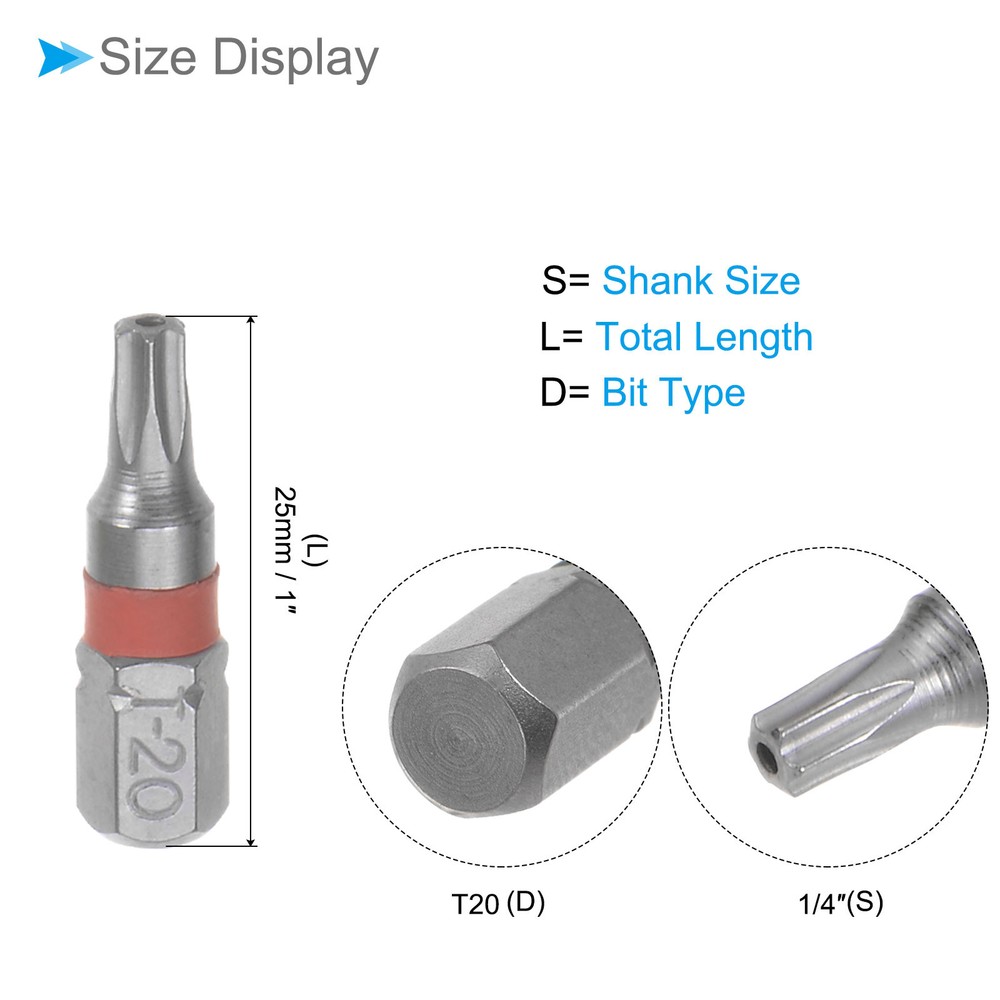 8pcs T20 Torx Screwdriver Bits 1/4 Hex Shank 25mm S2 Steel