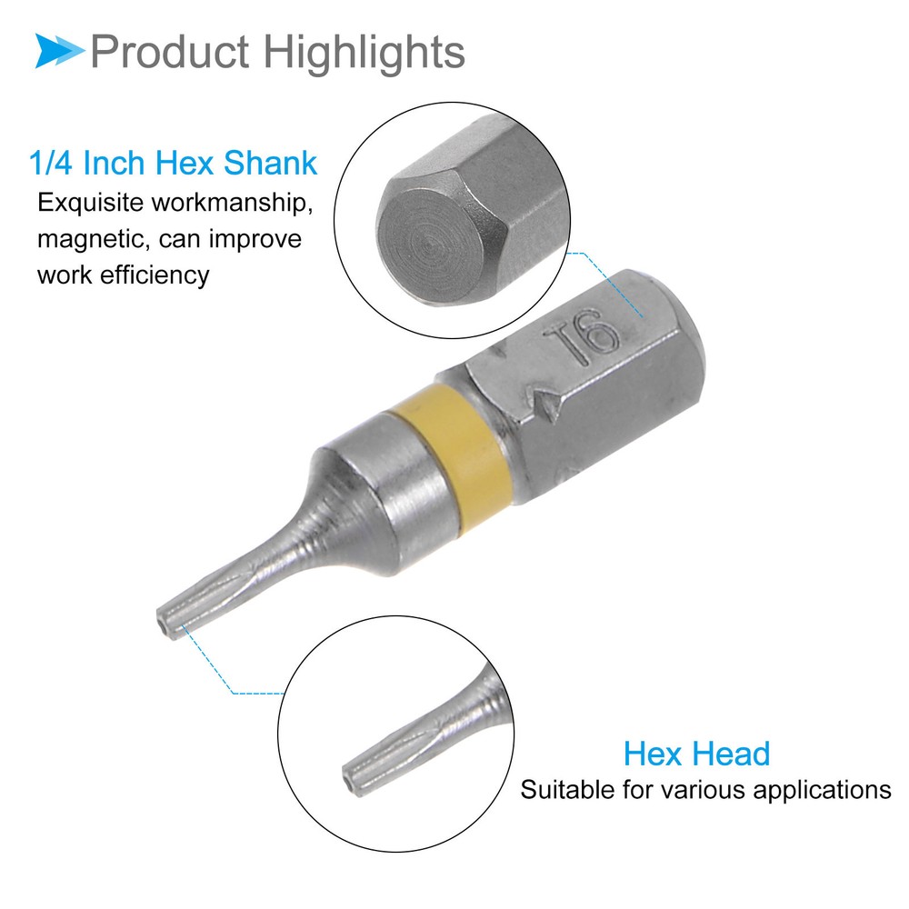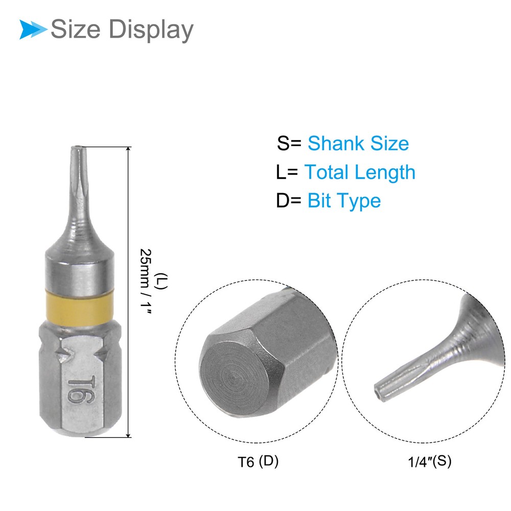 Document Features:Shank Size: 1/4inch;Total Length: 25mm / 0.98inch;Bit Type: H5;Finish: Electroplate;Material: S2Package Content: 4 x Hex Screwdriver Bit Description: These Screwdriver Bits are with magnetic design.Easy to install on the screwdriver handle of the bit shank.Great replacement for missing, bent or broken hex screwdriver bits.Superior Quality: Those Screwdriver Bits are made of S2 alloy steel, which is a commonly used material in hardware with high hardness. Magnetic Screwdriver - Those bits fit for electric screwdrivers, hand screwdrivers, electric drills, air drills and so forthSuitable for charging electric drill, air batches and 1/4 (6.35mm) screwdriver sets.Surface bright chrome treatment, strong rust resistance, S2 alloy steel manufacturing. 8pcs Torx Screwdriver Bits 25mm Length 1/4" Hex Shank T6 S2 Steel Star Head Features: Shank Size: 1/4inch; Total Length: 25mm / 0.98inch; Bit Type: H5; Finish: Electroplate; Material: S2 Package Content: 4 x Hex Screwdriver Bit Description: These Screwdriver Bits are with magnetic design. Easy to install on the screwdriver handle of the bit shank. Great replacement for missing, bent or broken hex screwdriver bits. Superior Quality: Those Screwdriver Bits are made of S2 alloy steel, which is a commonly used material in hardware with high hardness. Magnetic Screwdriver - Those bits fit for electric screwdrivers, hand screwdrivers, electric drills, air drills and so forth Suitable for charging electric drill, air batches and 1/4 (6.35mm) screwdriver sets. Surface bright chrome treatment, strong rust resistance, S2 alloy steel manufacturing. Hot Item Payment 1.We accept eBay payment . 2.Payment must be received within 7 business days of auction closing. Shipping 1.We ship to your eBay or Paypal address. Please make sure your eBay and Paypal address is correct before you pay. 2.Items will be shipped within 1-3 business day when we received payment. 3.Delivery time depends on destination and other factors. Description Policy 8pcs Torx Screwdriver Bits 25mm Length 1/4" Hex Shank T6 S2 Steel Star Head Features: Shank Size: 1/4inch; Total Length: 25mm / 0.98inch; Bit Type: H5; Finish: Electroplate; Material: S2 Package Content: 4 x Hex Screwdriver Bit Description: These Screwdriver Bits are with magnetic design. Easy to install on the screwdriver handle of the bit shank. Great replacement for missing, bent or broken hex screwdriver bits. Superior Quality: Those Screwdriver Bits are made of S2 alloy steel, which is a commonly used material in hardware with high hardness. Magnetic Screwdriver - Those bits fit for electric screwdrivers, hand screwdrivers, electric drills, air drills and so forth Suitable for charging electric drill, air batches and 1/4 (6.35mm) screwdriver sets. Surface bright chrome treatment, strong rust resistance, S2 alloy steel manufacturing. Hot Item Payment 1.We accept eBay payment . 2.Payment must be received within 7 business days of auction closing. Shipping 1.We ship to your eBay or Paypal address. Please make sure your eBay and Paypal address is correct before you pay. 2.Items will be shipped within 1-3 business day when we received payment. 3.Delivery time depends on destination and other factors.