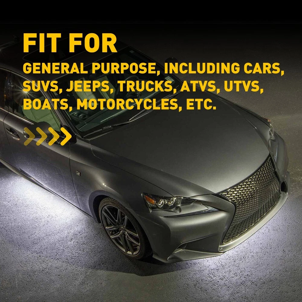 Specification: LED Quantity: 24 LED Color: White Waterproof grade: IP68 Service life: 50000h+ Connection: Red connects to positive Black connects to negative Features: *IP68: IP68 waterproof, dust-proof & rust-proof construction, making you can drive it through any heavy rain or harsh snowy weather. We put the rock lights under the water for 3 hours consecutively to test its waterproofness.Please note that the controller without waterproof function do not expose it to outside. *Premium material: 8x LED Car Underbody White Light Chassis Atmosphere Lamp Light Interior Exterior Specification: LED Quantity: 24 LED Color: White Waterproof grade: IP68 Service life: 50000h+ Connection: Red connects to positive Black connects to negative Features: *IP68: IP68 waterproof, dust-proof & rust-proof construction, making you can drive it through any heavy rain or harsh snowy weather. We put the rock lights under the water for 3 hours consecutively to test its waterproofness.Please note that the controller without waterproof function do not expose it to outside. *Premium material: The strip can be bent, fold and fixed in place easily, perfect for under wheel arches, around the front grille, under foot wells, in the trunk, along the dash, etc. *Safety The high brightness of the light can disperse animals and avoid collisions ,enhance the visibility at night, foggy days,rainy days and fuzzy roads, providing a safe distance for pedestrains and other jeeps. It looks cool and attractive, which is easier for the owner to find their vehicle during the night. Packaging included: 8x LED light strip Installation Kit Item Specifics Brand AUXITO Type LED Rock Light Features Durable, Easy Installation, High Brightness, Waterproof Manufacturer Part Number YZ12040 Voltage 12V Light Color White Applicable regions For all truck, pickup, car, offroad, ATV, UTV, SUV, motorcycle Features 2 IP68 Waterproof To Fit Underglow Lights Number of LED 24 LED/pod Fitment Type Direct Replacement Remote Control No Lighting Technology LED Universal Fitment Yes Placement on Vehicle Underbody, Wheel Manufacturer Warranty 2 Years Number of Bulbs 8 FAQ ♥ If you have a decoding problem or any other problems, please contact us first, we will help you with it. We will reply you within 24 hours in working days. I'm a new seller, thanks a lot for your trust and convince! I will serve you with all my heart. ♥ Q1: Will this bulb fit my vehicle? A: We can match almost any vehicle to one of our bulb sizes. eBay only lets us include some vehicle fitments per listing, but if your vehicle does not show up on the compatibility table at the top of our listings, welcome you to contact us for free consulation before purchasing a product. Q2: My item has not arrived, what's taking so long? A: Sometimes items take longer than expected, especially if it’s going far or to rural area. Check with your post office to see if your item has been held up. Sometimes Royal Mail will not update a tracking number until it has arrived at its destination. If your item still don't arrive after a few days, let us know so we can double check for you and help solve it asap. Q3: My bulbs won't fit, help! A: Special bulb holder may be required. See if you can take the holder from the stock bulb. If not, let us know. The bulb size may be wrong, double check the item you received with the item you ordered. Do you have an aftermarket lighting housing? These may not be perfectly fitted for aftermarket bulbs and will require some manual modifications. Q4: Neither side lighting up? Both sides flicker, hyper flash, or work inconsistantly. A:Check the light fuses, and then check the ballast plugs to insure correct installation. If this doesn't work, there may be a voltage problem with the vehicle. You probably just need a relay or capacitor. Even though some bulbs are builtin resistors, they may still need a decoder. Payment (1). We gladly accepts payment via PayPal, We will ship your item(s) within 24 hours. (2). Before payment, please keep the consistency of Paypal address and ebay address. (3). Quantity orders are welcome! Returns (1). We offer 60 days free return policy. Please contact us within 60 days from the date you receive your order if you have any issues with the product or want return. Refund will be send after we got your resend package. (2). All returned items should be in the original packaging , return tracking information should be provided . Contact us (1).Negative feedback will not help resolve any problems you have, please contact us via eBay messages before leaving negative feedback , our customer service will make best effort to help you with the issues. (2).We maintain high standards of excellenceand strive for 100% customer satisfaction! Feedback is very important to us. We request that you contact us immediately before you give us neutral or negative feedback, so that we can satisfactorily address your concerns. About us We're professional in car and motorcycle accessories, especially in LED bulbs. We have our own factory and R&D team. Our belief is to sell top quality items that fit your car and serve you with our heart. Anything please feel free to contact us! Our customer service is very responsibility. Come and follow us! DESCRIPTION PAYMENT SHIPPING RETURN POLICY CONTACT US Shop Category Store Home Other Hot Item 2PCS O2 Oxygen Sensor Up+Downstream For 08-14 Chevrolet Equinox/GMC Terrain 2.4L USD 29.99 BLACK ROOF TOP TRIM MOLDINGS FOR 2006 2007 2008 2009 2010 2011 2012 TOYOTA YARIS USD 17.99 AUXITO 9012 HIR2 LED Headlight Kit Bulb High/Low Beam White 80000LM Super Bright USD 44.99 5/16" Marine Outboard Boat Motor Fuel Gas Hose Line Assembly with Primer Bulb US USD 19.94 AUXITO 7440 7443 7444 LED Backup Reverse Back Up Light Bulbs Super Bright White USD 12.59 New List Item For 2006-2009 Toyota 4Runner Clear Lens Chrome Headlights Pair Amber Projector S USD 117.99 For 2014-2015 Chevy Silverado 1500 w/ Projector Headlights Assemblies Left Right USD 22