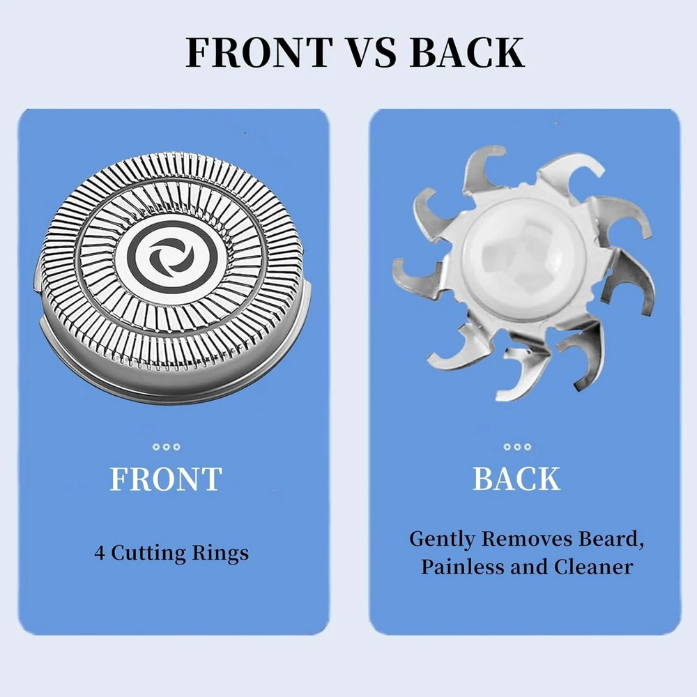 8x Replacement Heads for Skull Shaver Pitbull Gold Silver Platinum Diamond Blade About this item: 【Compatible Models】Compatible with Skull Shaver Pitbull Gold PRO/Skull Shaver Pitbull Silver PRO/Skull Shaver Pitbull Platinum PRO Replacement Blade 4 Head.Also compatible with Diamond PRO shaver,Palm Face and Head shaver. 【ComfortCut Shaving System】"Say goodbye to hairy woes with our 360-degree floating blades! They're gentle, effective, and won't break the bank. Plus, the round head design ensures a scratch-free experience. Get ready for a clean shave that's wallet-friendly!" 【Plug,Play & Wash Away!】Swapping blades on your Skull Shaver Pitbull Electric Razor is a no-brainer! Pop off that ancient edge, slide in the sharp new shaver, and click it home. You'll be back to buttery-smooth in no time, and cleaning? It's as easy as pie – 'cause let's face it, who doesn't love pie? Just a quick rinse and you're ready to roll! 【Replace Every 12 Months】Yo! Keep your face game strong! Remember to switch those shaver heads every 12 months to keep the shave as smooth as your moves. Keep it fresh, folks !