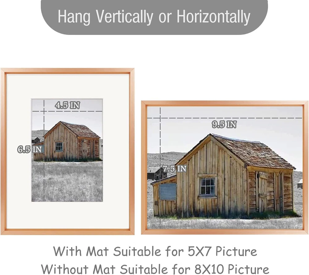 Attractive Style: Color Molding with a Sturdy Glass Front To Give You a Clear View of Your Pictures While Preserving The Lifespan of Your Photos Display: 8x10 (Without Mat) or 5x7 (with Ivory Color Mat); Frame Includes a Single Ivory Color Mat (Opening Size: 4.5x6.5) For 5x7 Pictures Assembled: Includes An Easel Stand For Table-Top Display. The Back Molding can Be Used For Wall Display Sturdy: Made From Highly Durable Aluminum Material, There To Protect Your Pictures From Dust, Dirt, and Scratches Protective Packaging: Developed Packaging That Helps Ensure Safe Delivery of Fragile and Glass Items. Order with Confidence, Click and Add To Cart Today